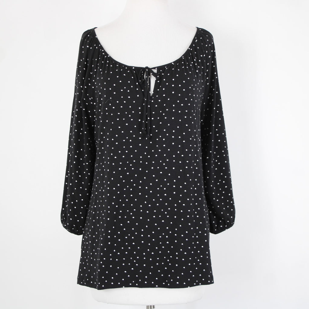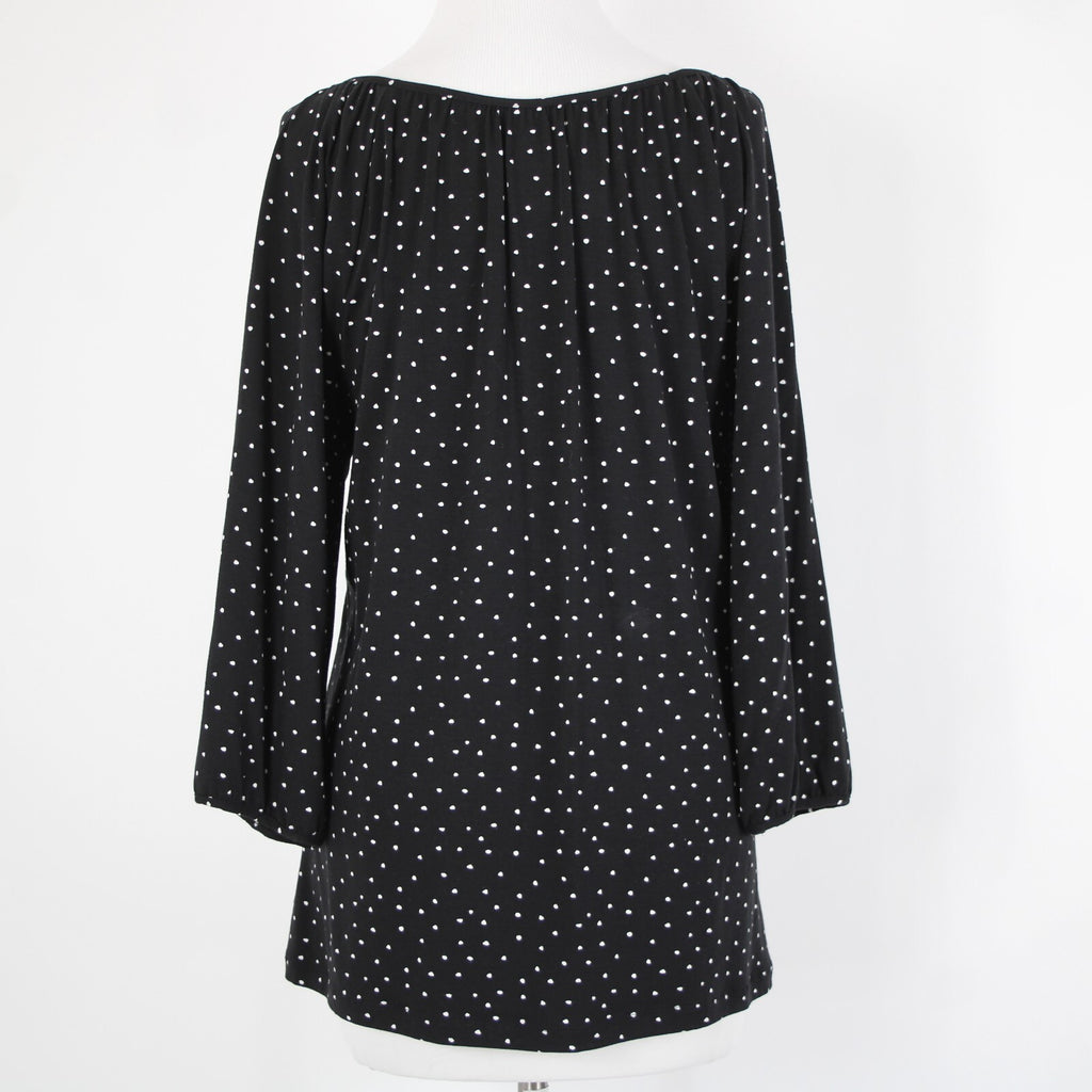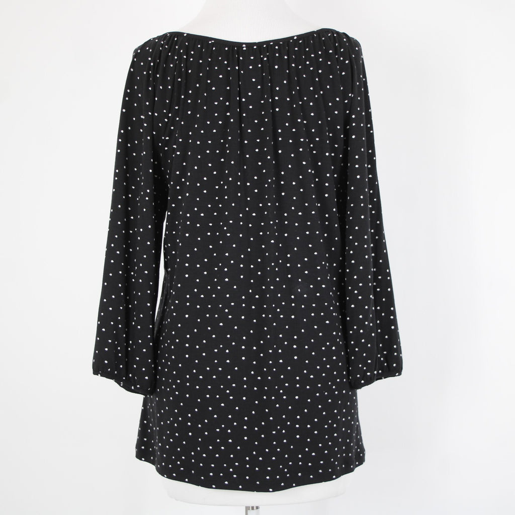 Garnet Hill NEW Sz M Black White Polka Dot Scoop Neck Tencel Lyocell Spandex Top