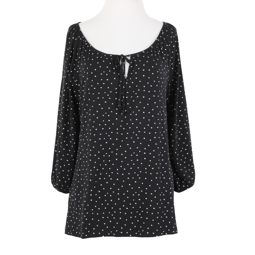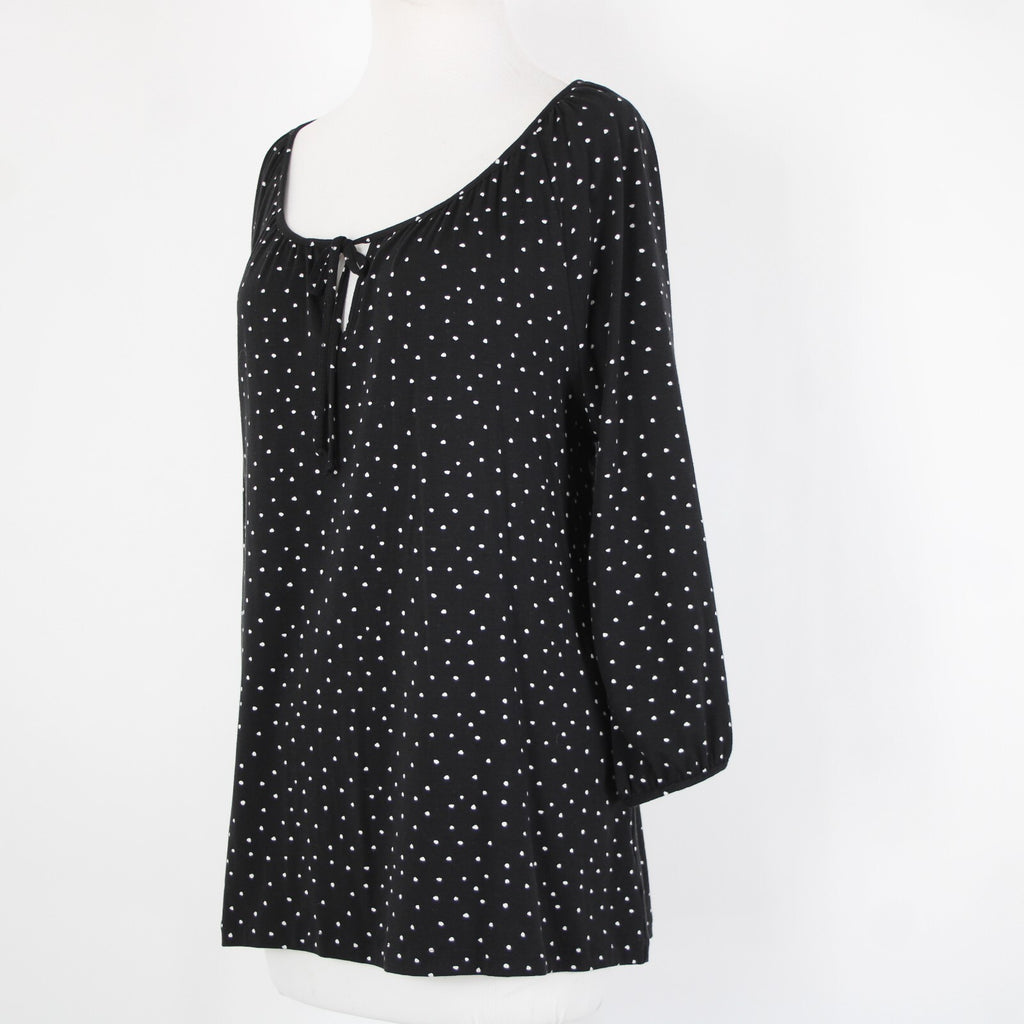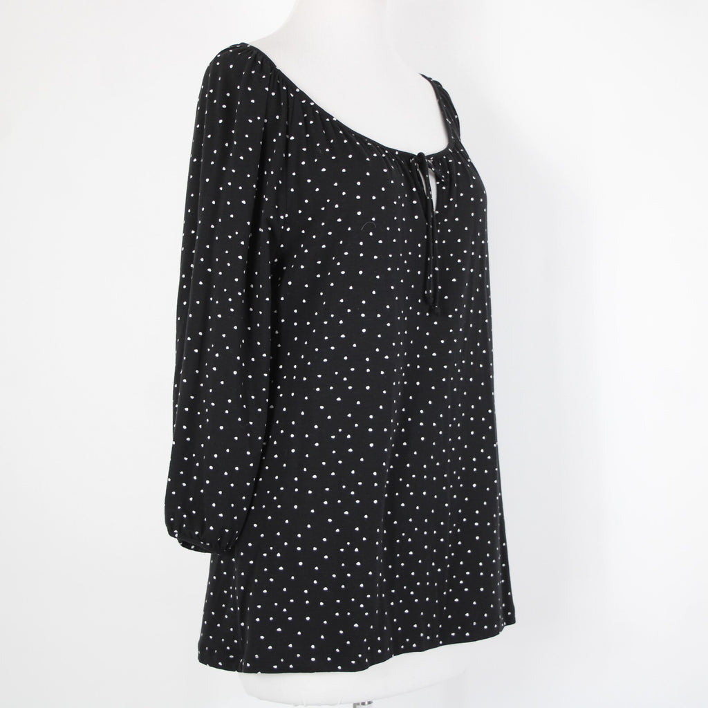 Garnet Hill NEW Sz M Black White Polka Dot Scoop Neck Tencel Lyocell Spandex Top