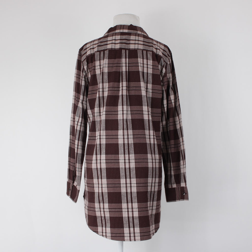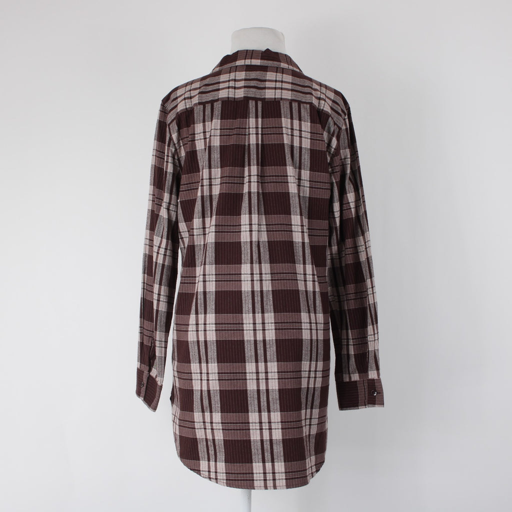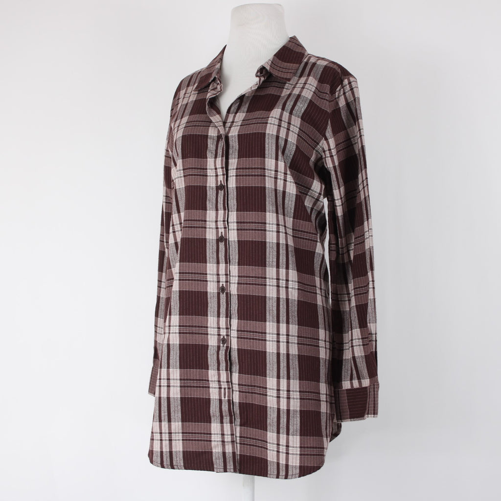 Garnet Hill Sz 10 Burgundy Red White Plaid Fine Organic Cotton Flannel Tunic Top