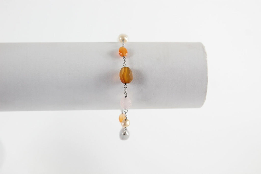 GGC 8" - 9" Sterling Silver Chain White Multi Beads Station Bracelet