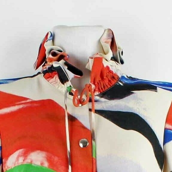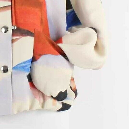 Giorgio Armani NEW $4355 38 Cream Multi 100% Silk Mod GA Don Ruffle Short Jacket