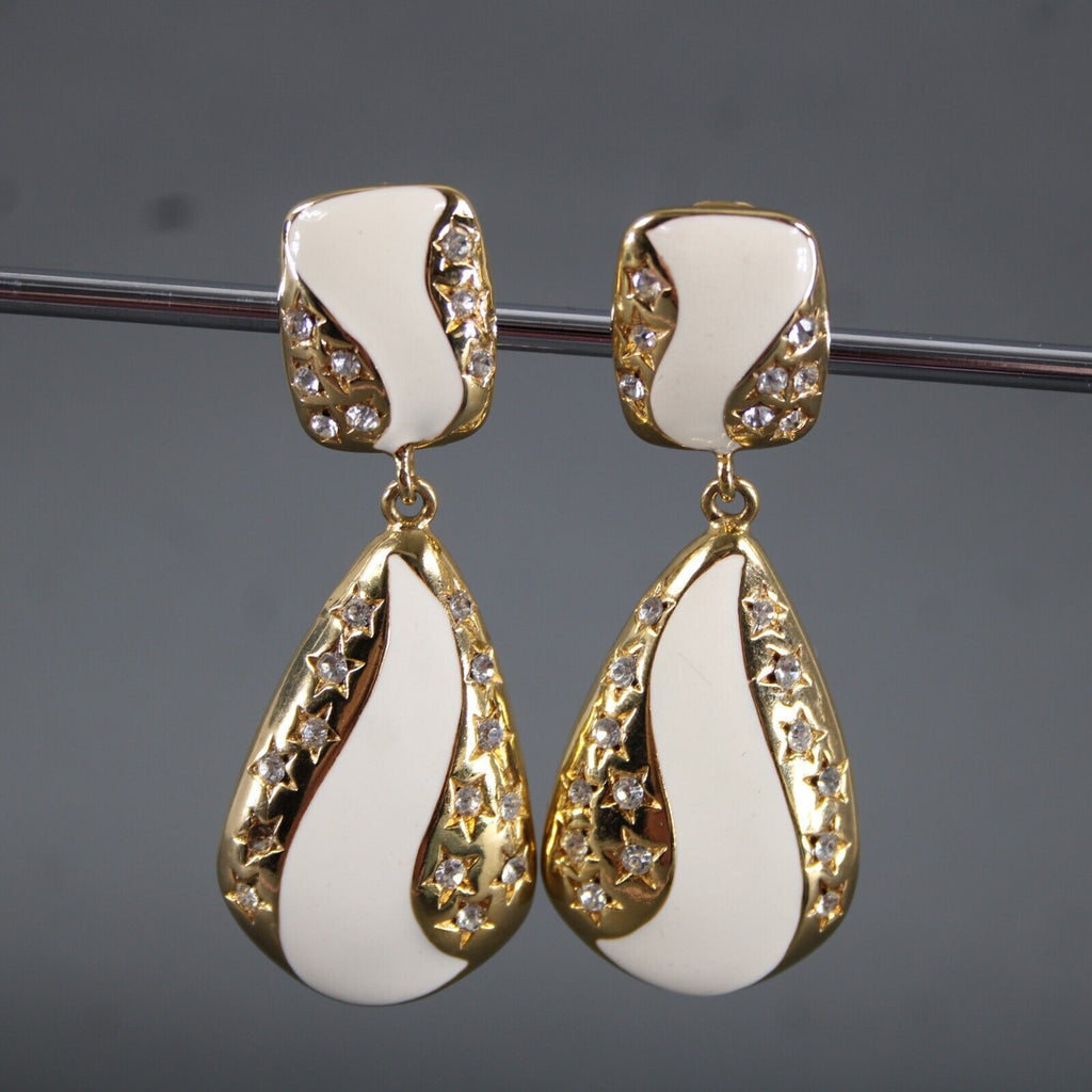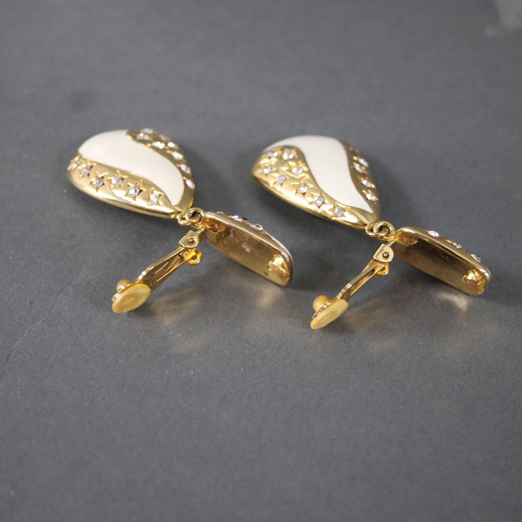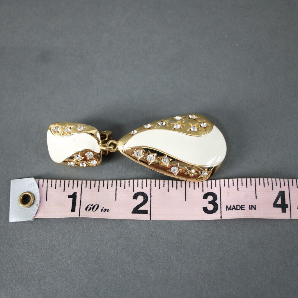 Goldtone Cream Enamel Rhinestones Star 2.5" Clip On AS IS Earrings