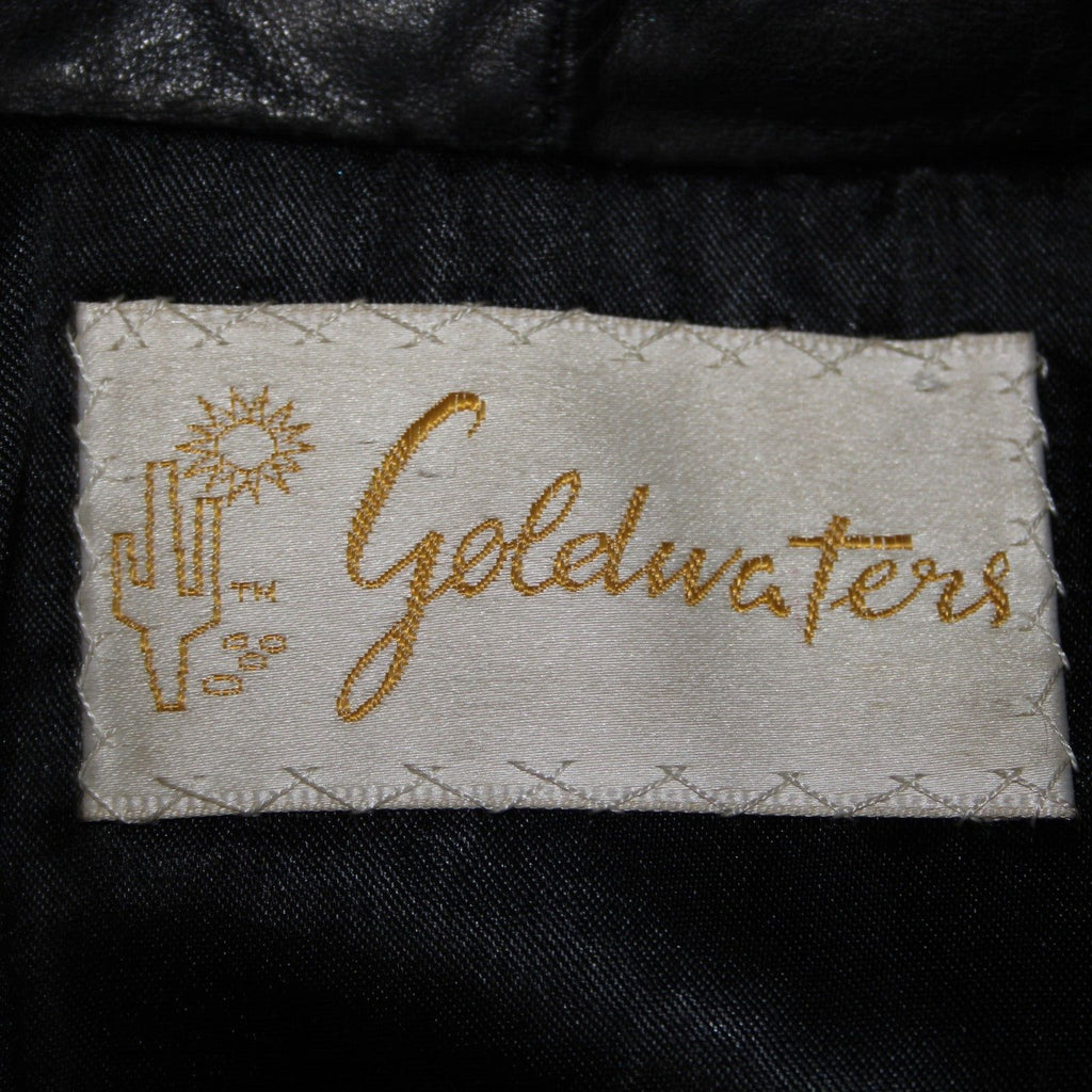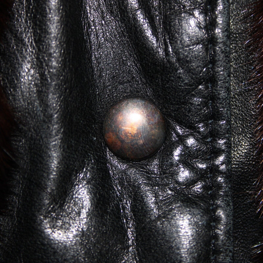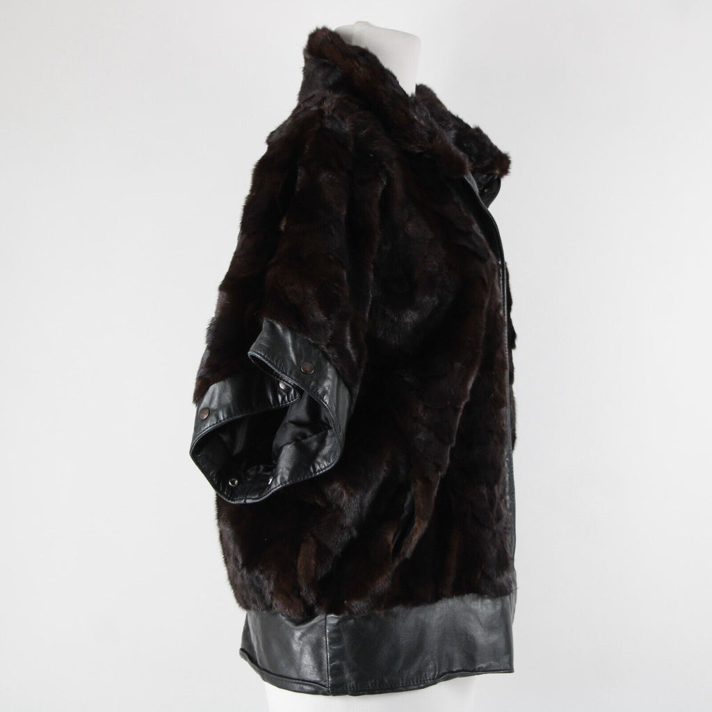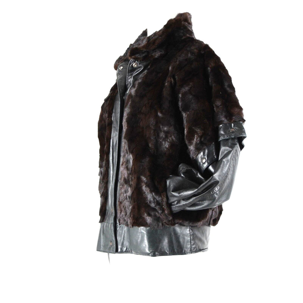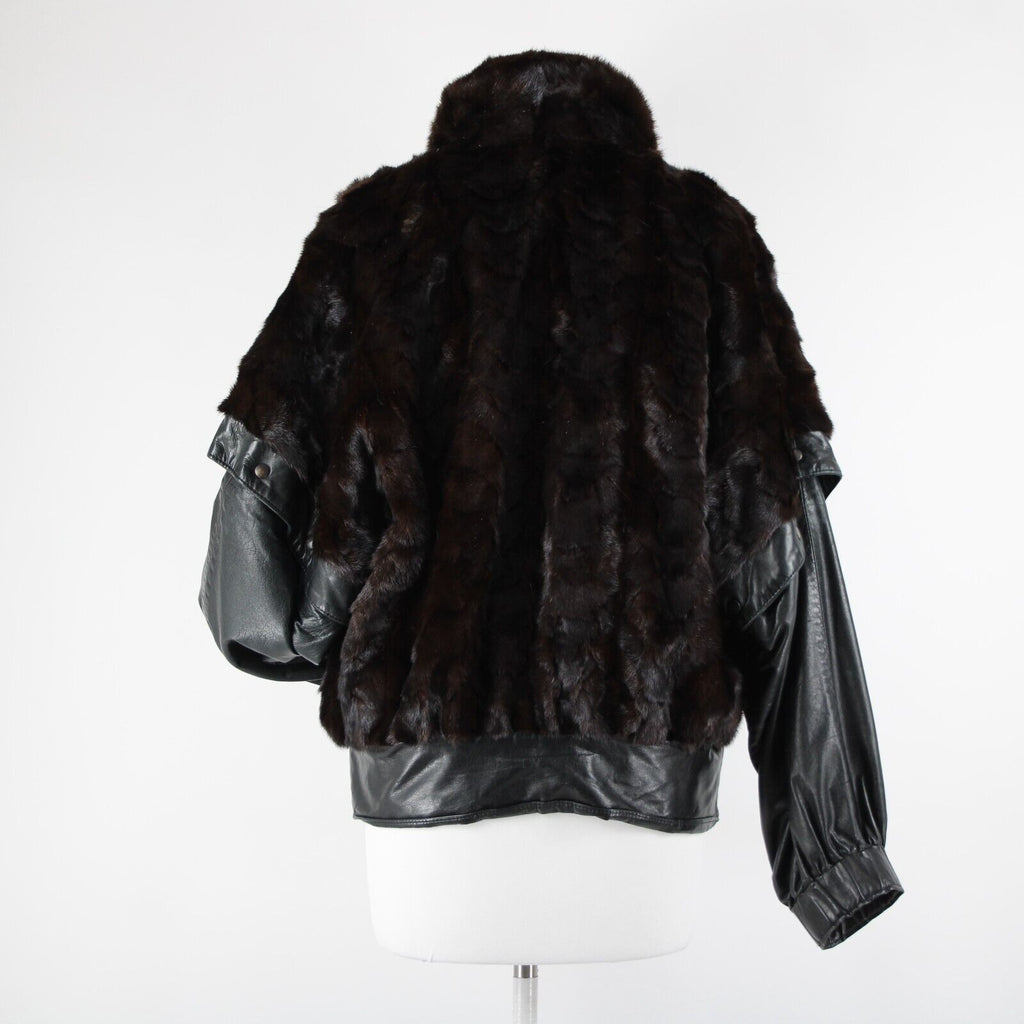 Goldwaters Sz L Black Brown Mink Fur Snap Off Sleeves Button VTG Leather Jacket
