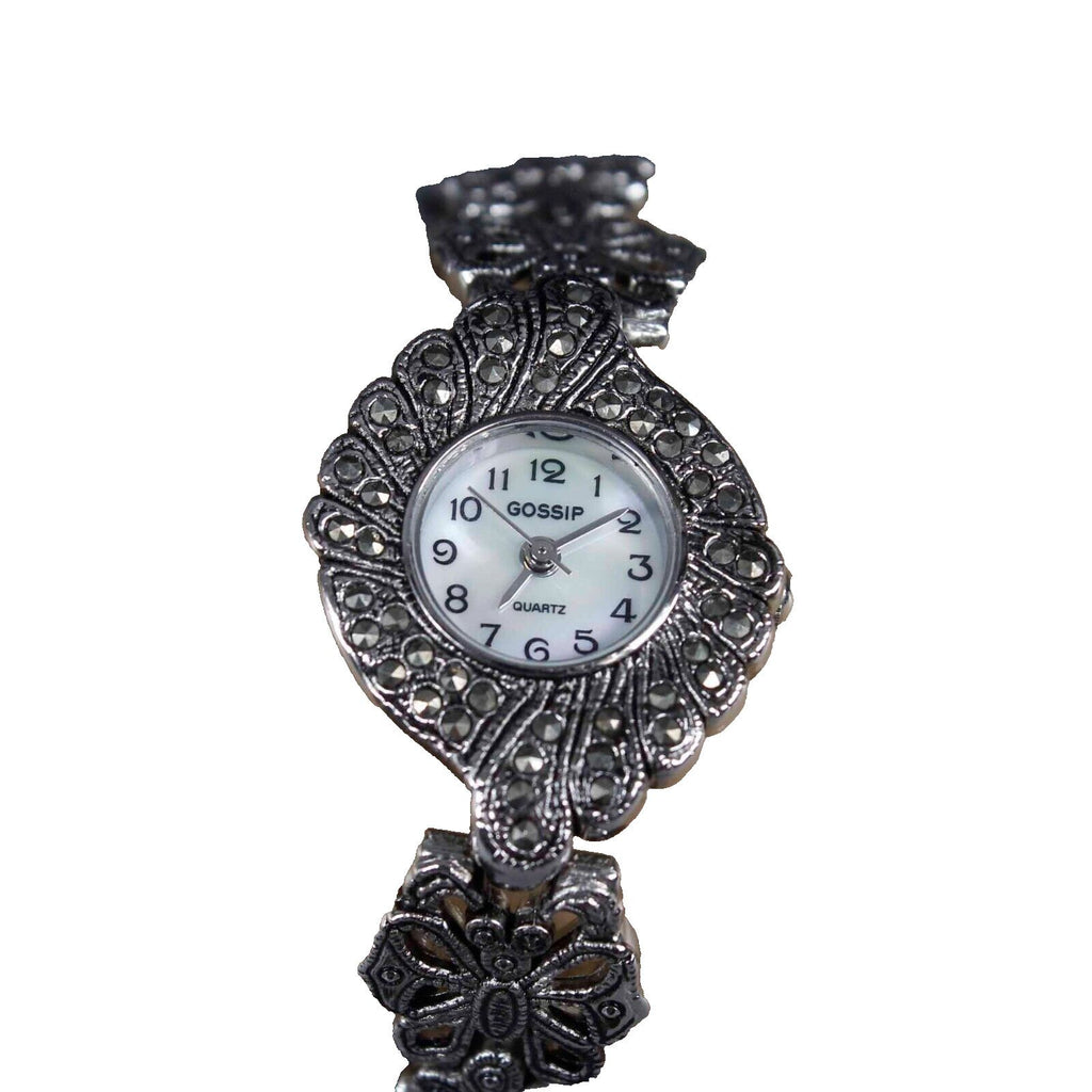 GOSSIP 7in Silvertone Metal Marcasite Accent Bracelet Wrist Watch