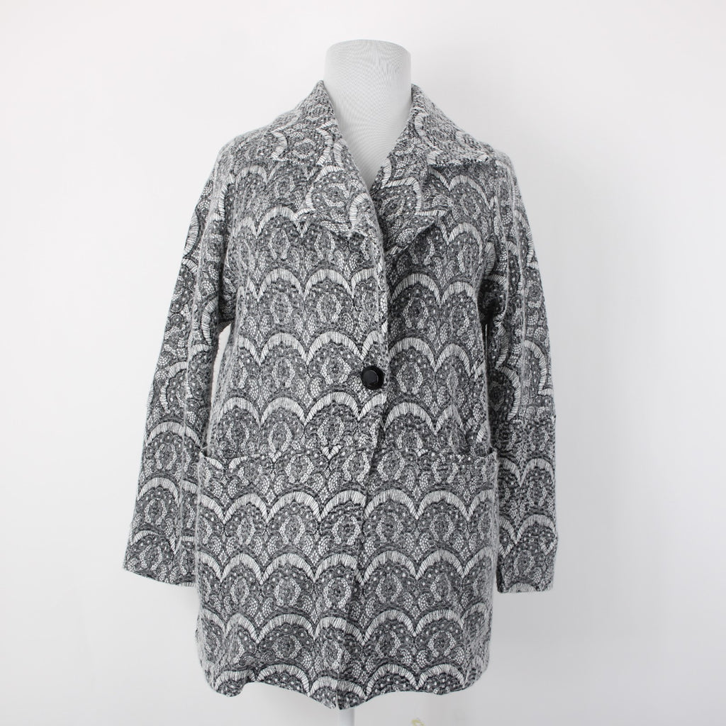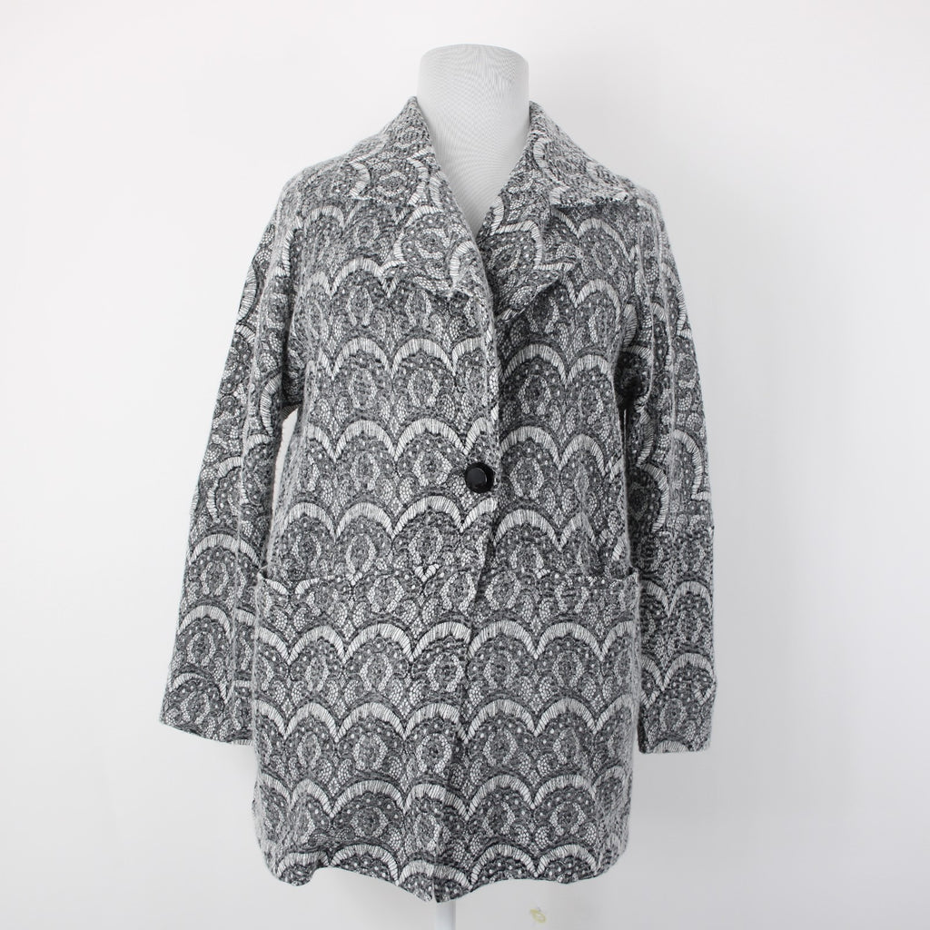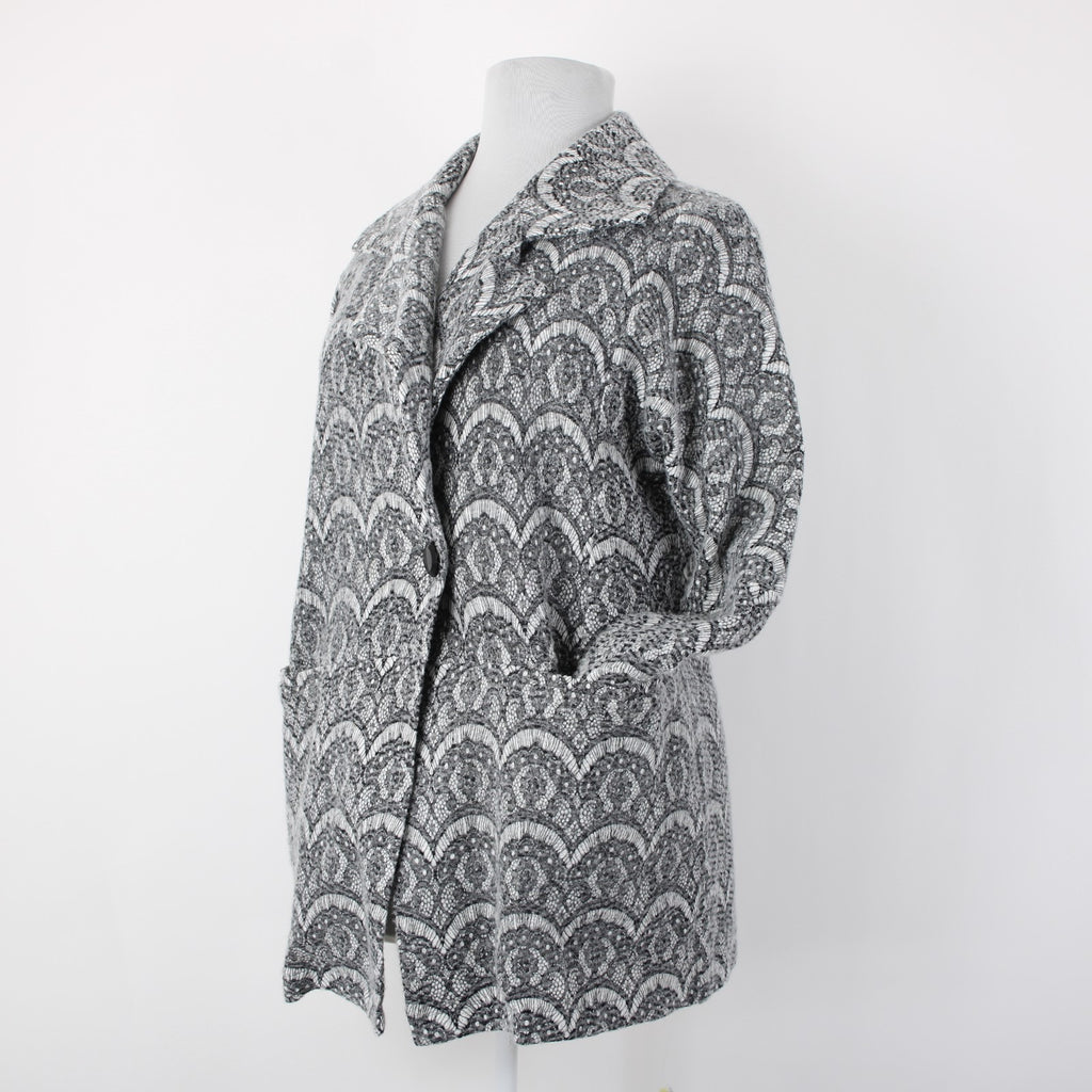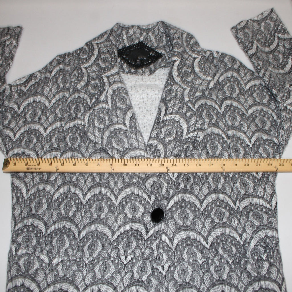 Greylin Sz M L Gray Black Lace Weave Mid Length Oversize Pocketed Poly Jacket