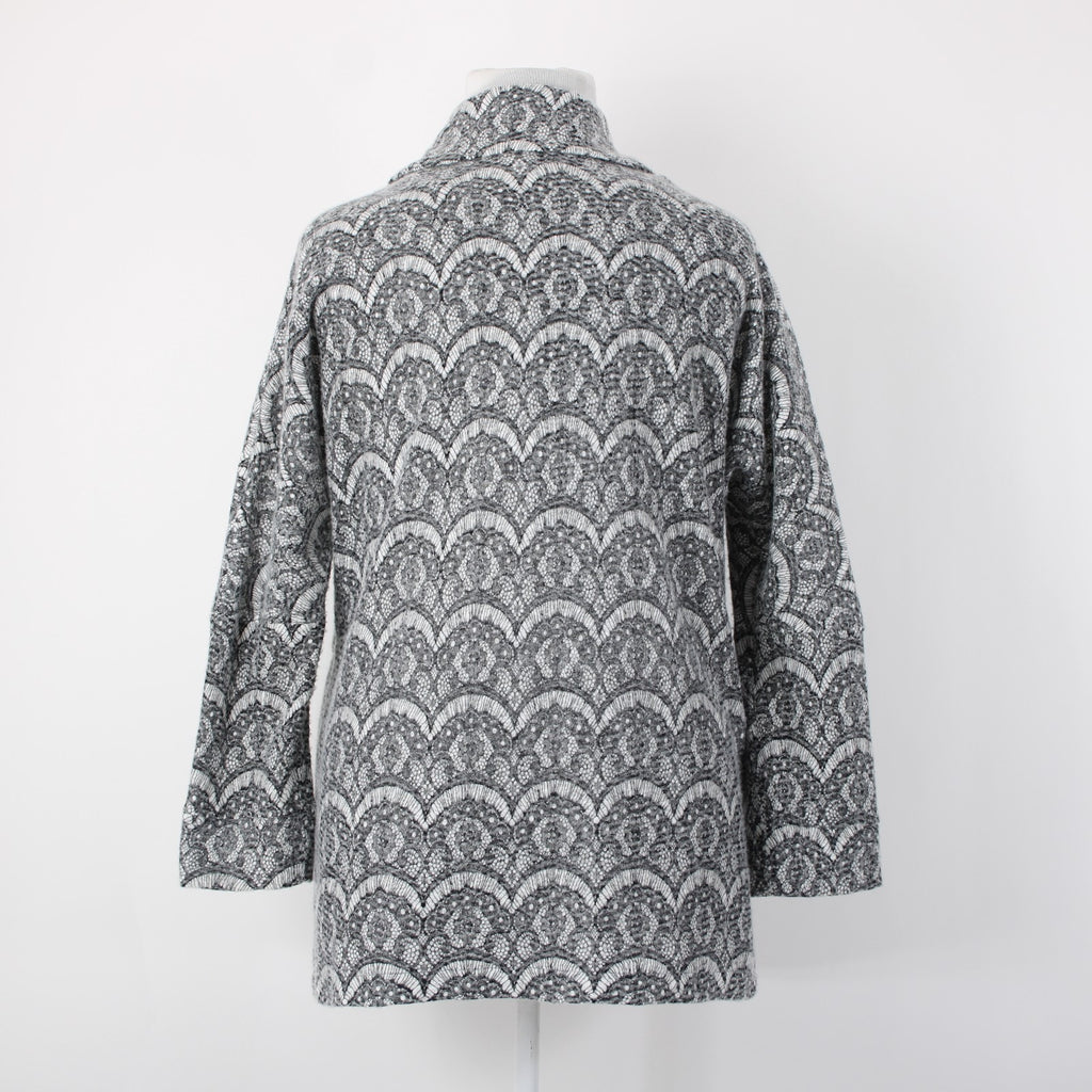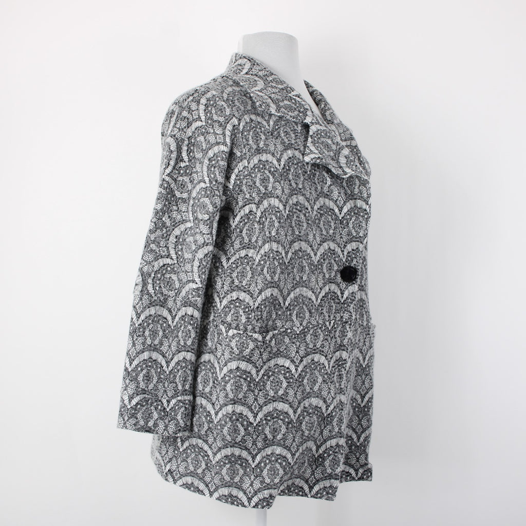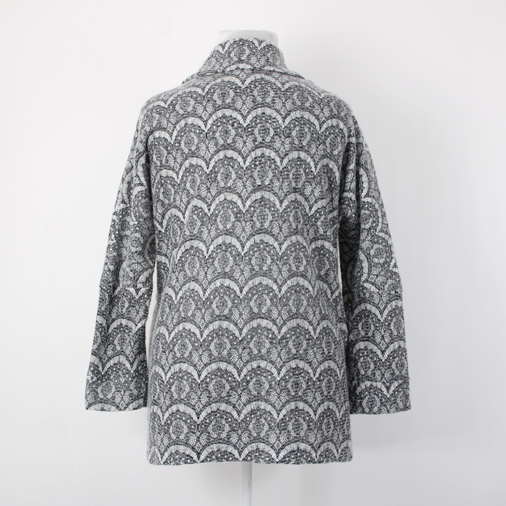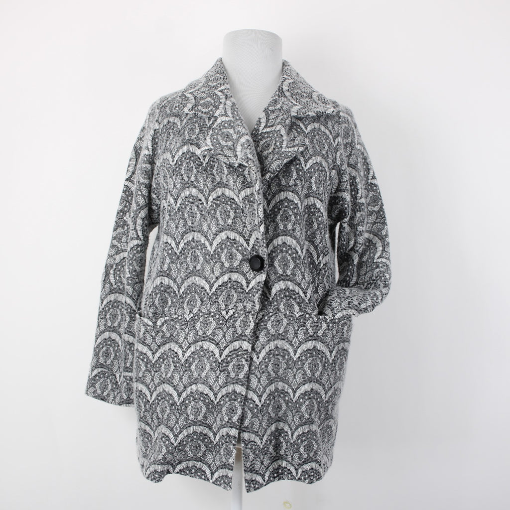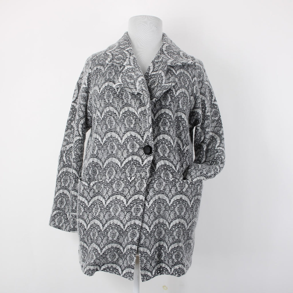Greylin Sz M L Gray Black Lace Weave Mid Length Oversize Pocketed Poly Jacket
