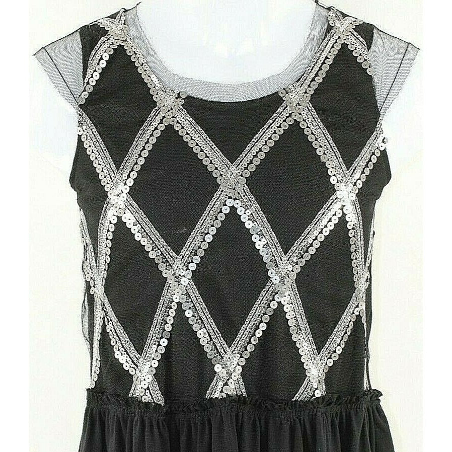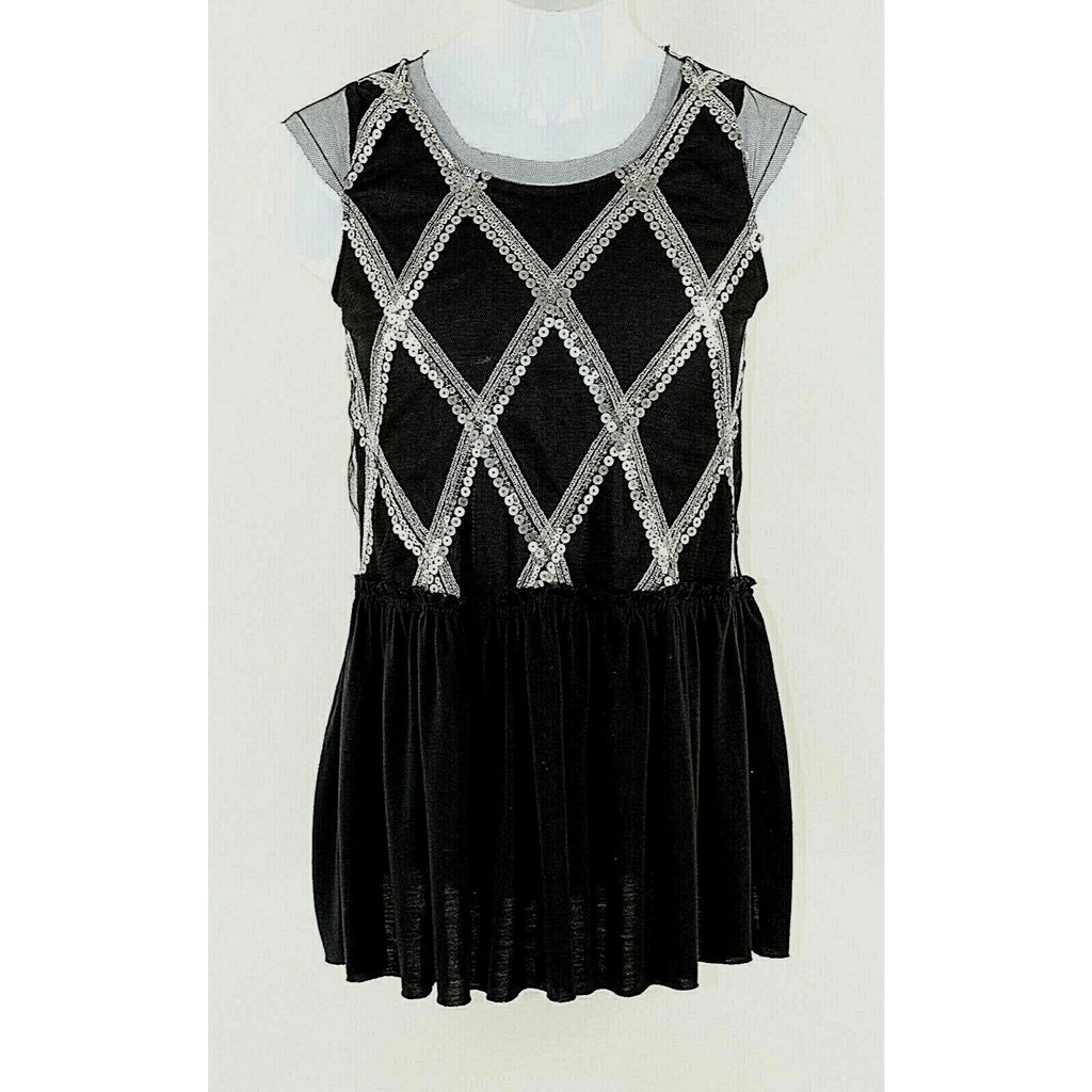 Guess L/14 Black Silver Sequin Embroidered Polyester Rayon Girls Top