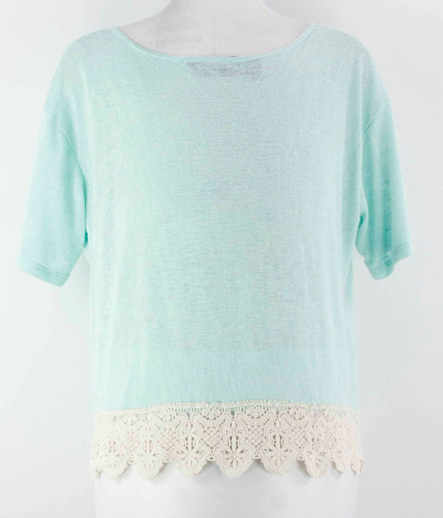 Happening In The Present Sz M Aqua Cream Lace Detail Knit Rayon Blend Boho Top
