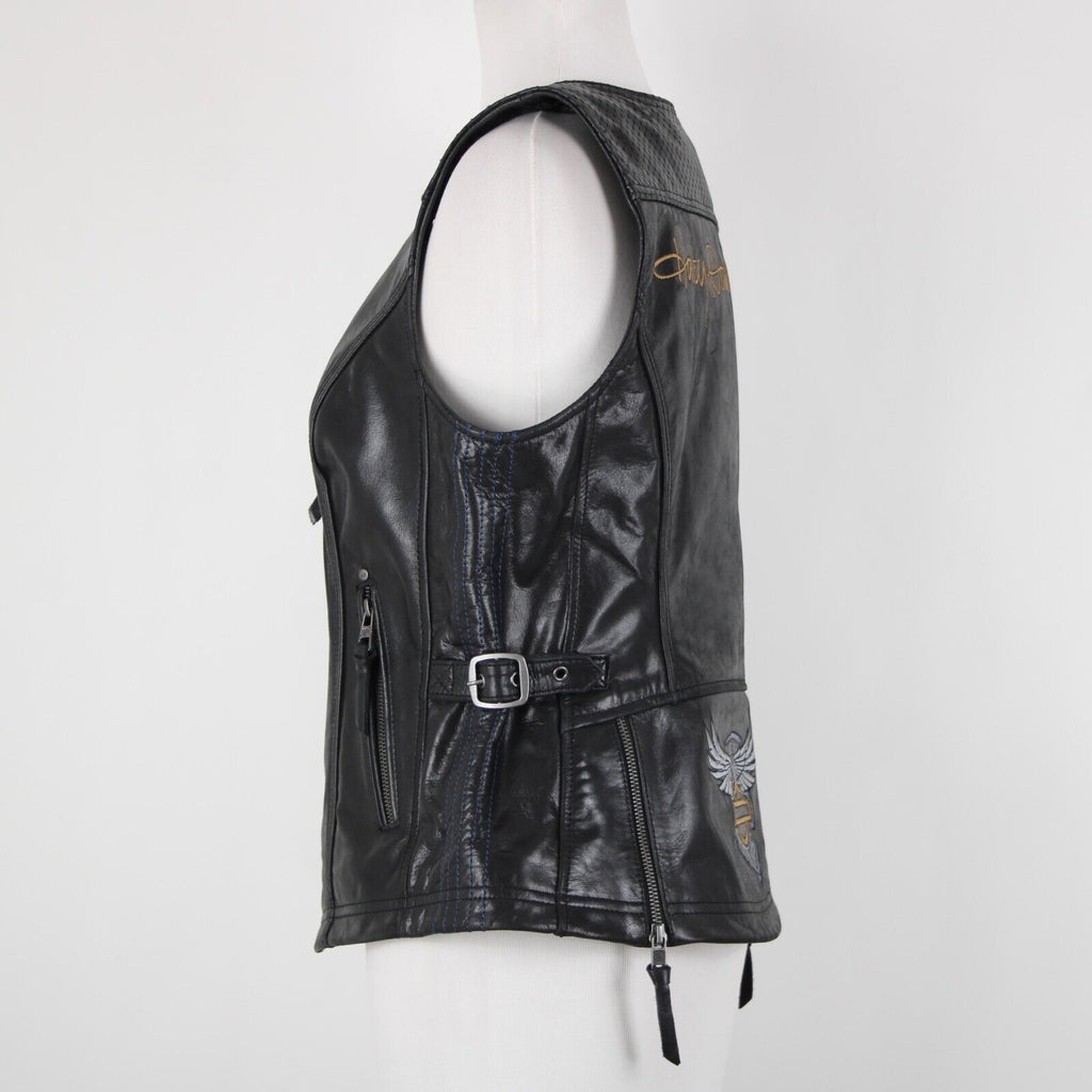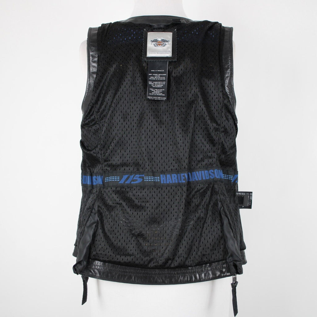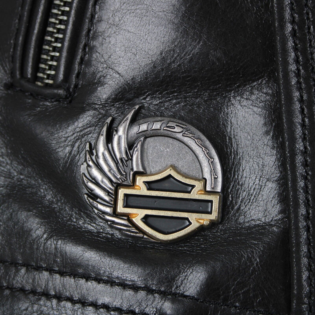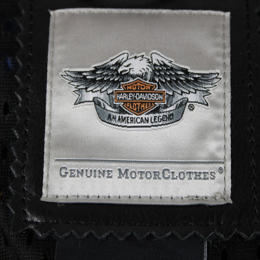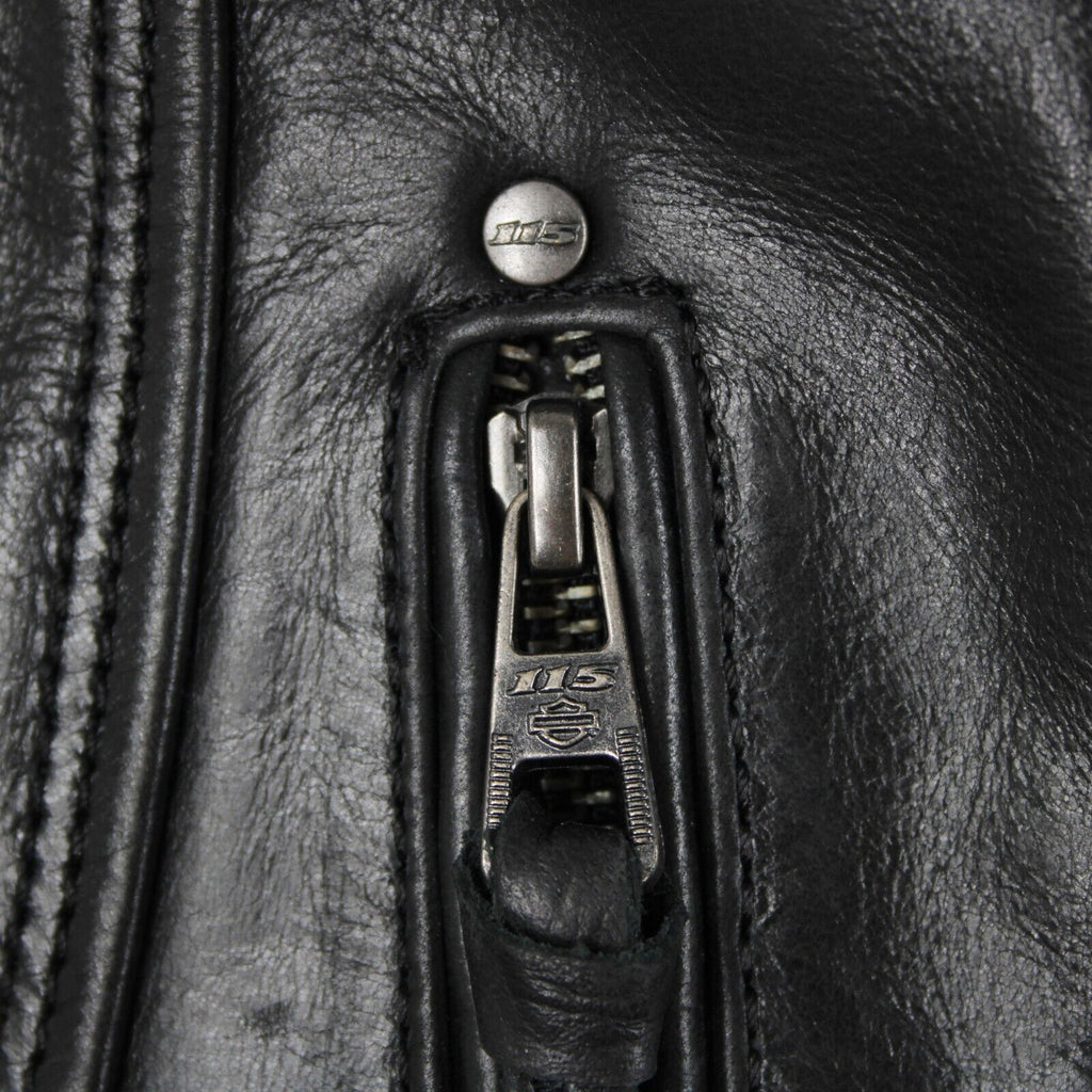 Harley Davidson Sz M Black Lined Zipper Pockets 100% Leather Polyester Vest