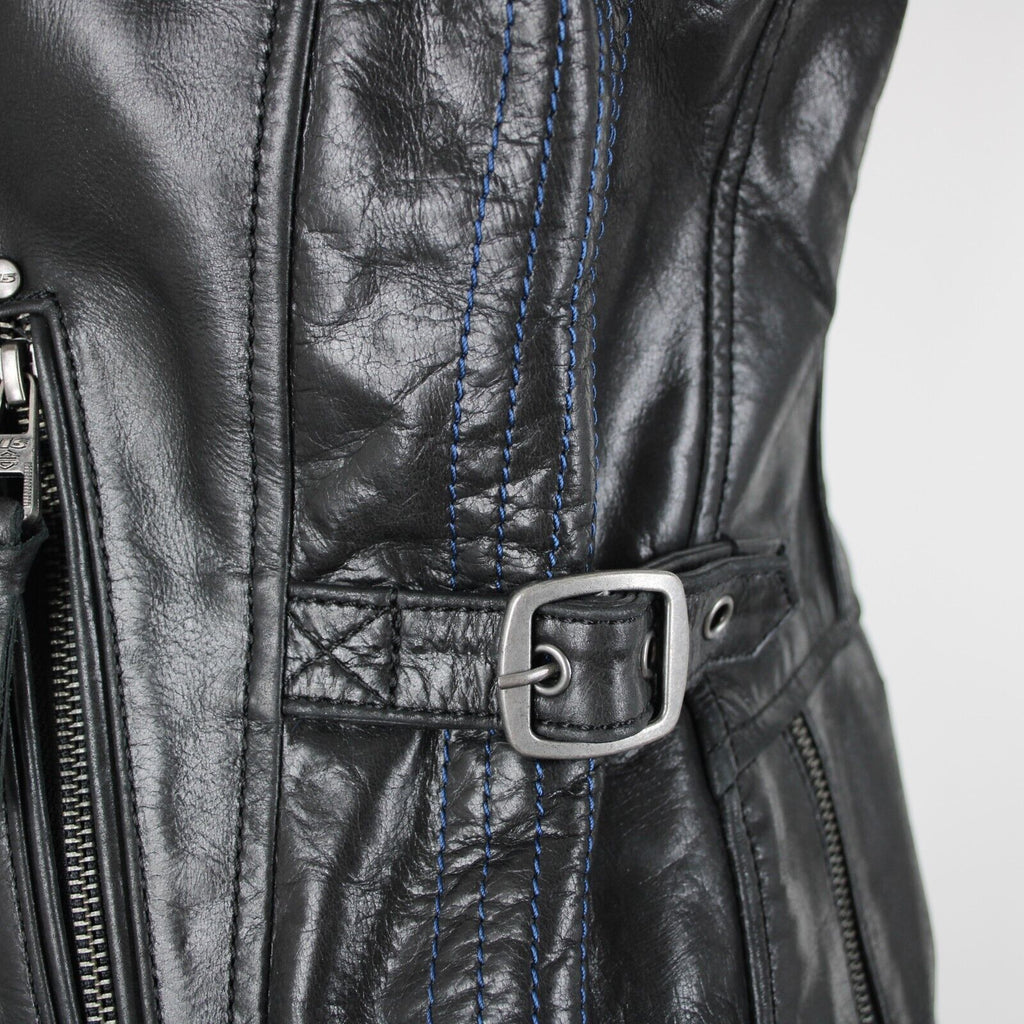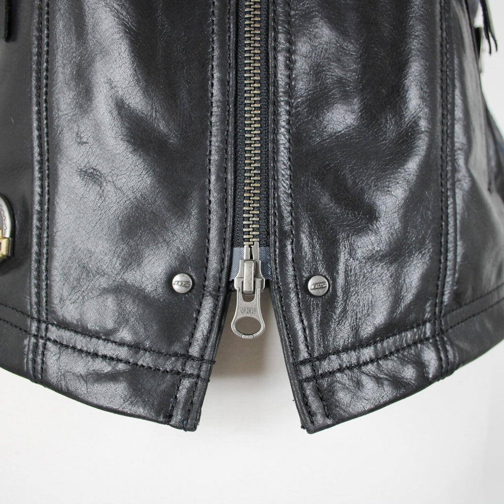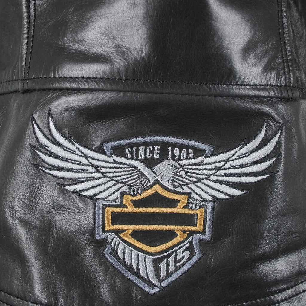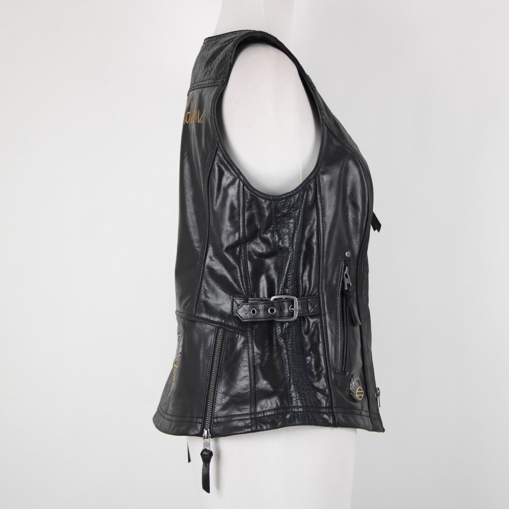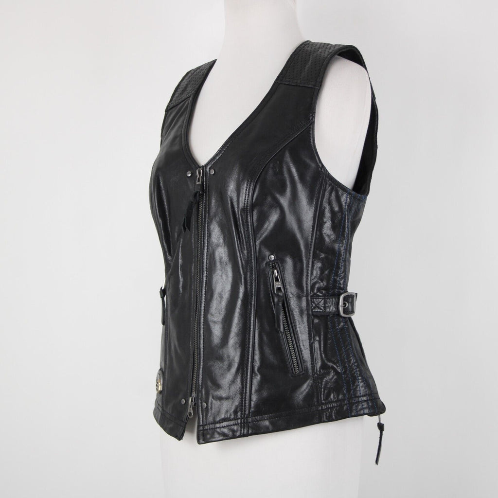Harley Davidson Sz M Black Lined Zipper Pockets 100% Leather Polyester Vest