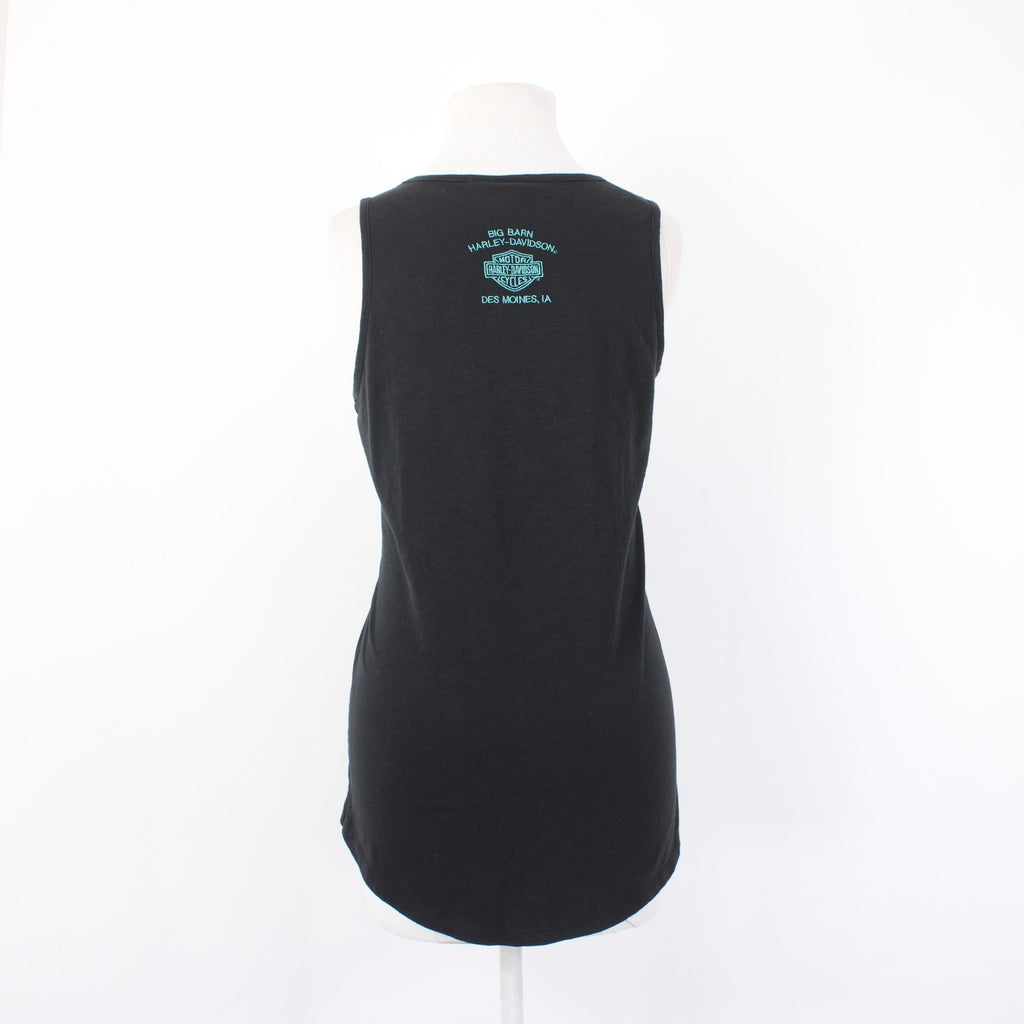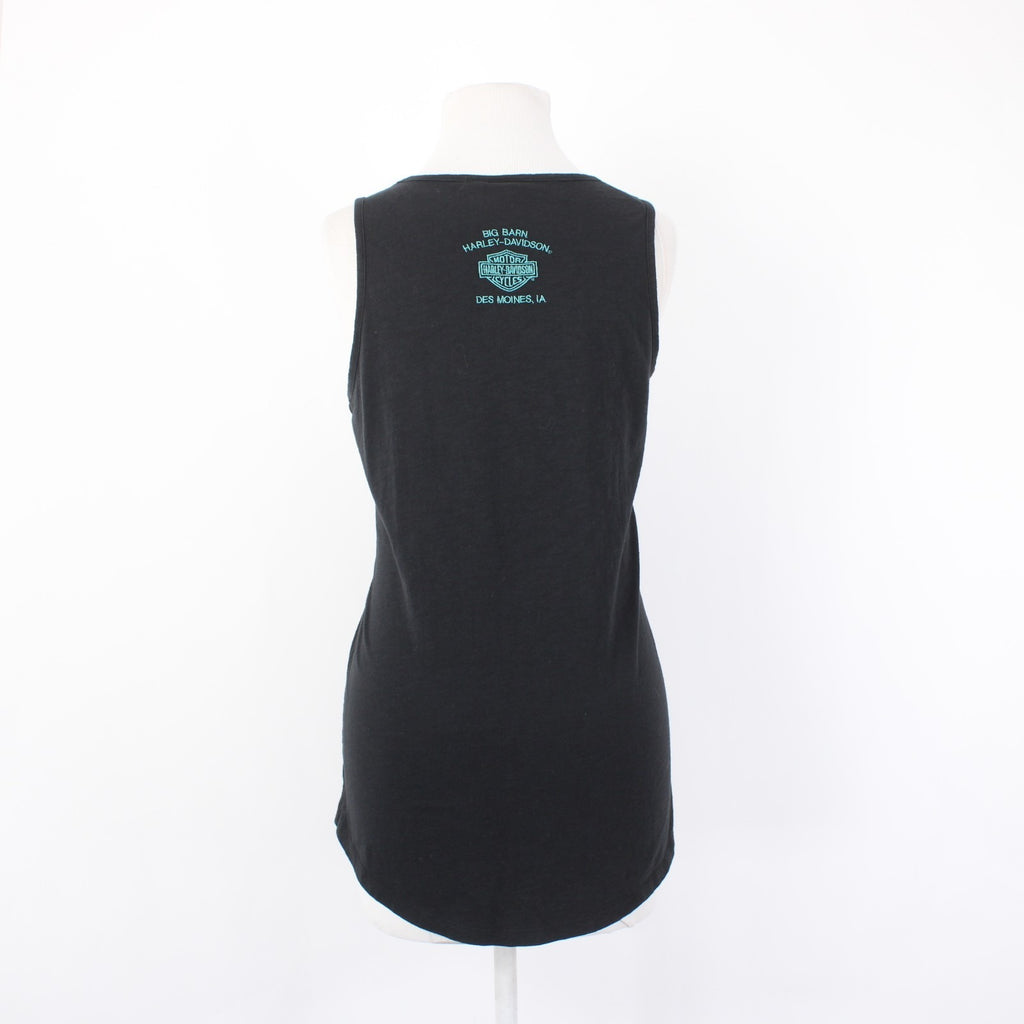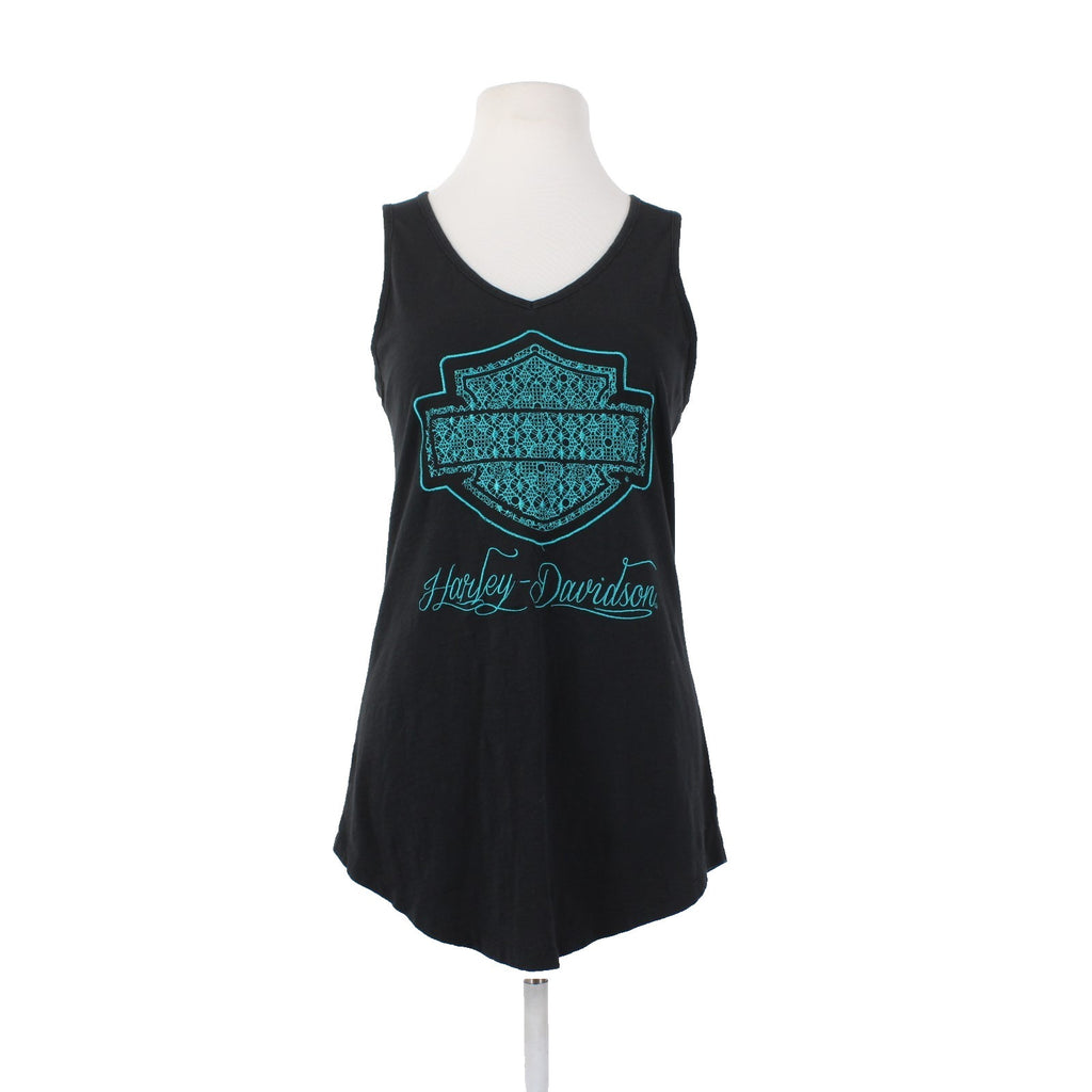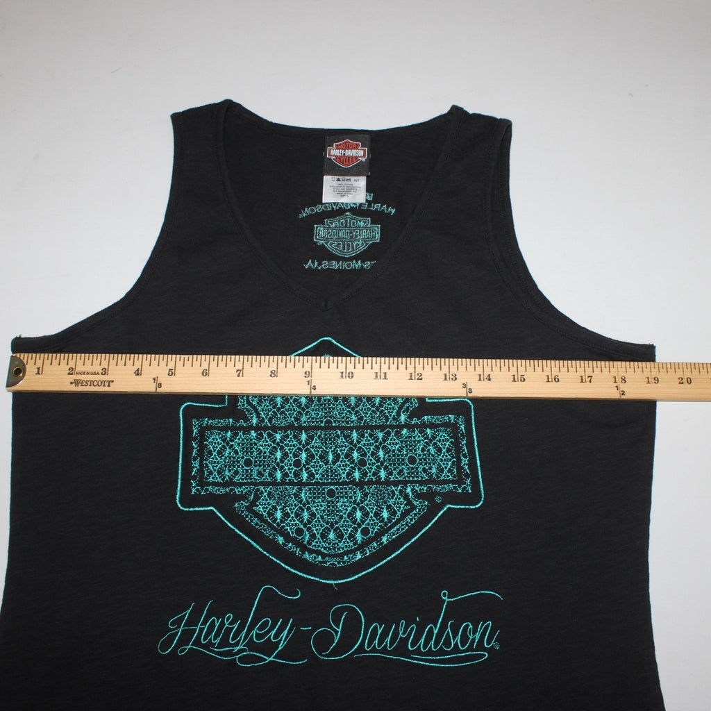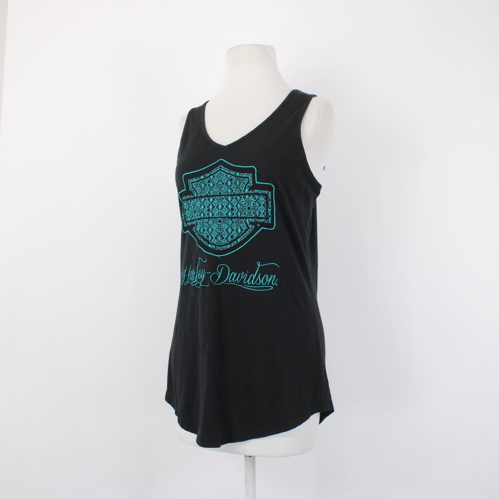 Harley Davidson Top Sz XL Black Teal Logo Sleeveless 100% Cotton Tank Top
