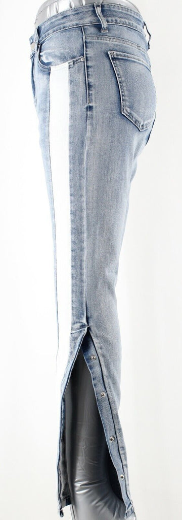 Hayden Sz S X 28 Blue White Denim Button Leg Cotton Blend Jeans