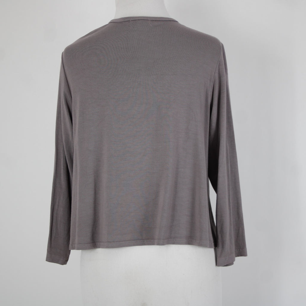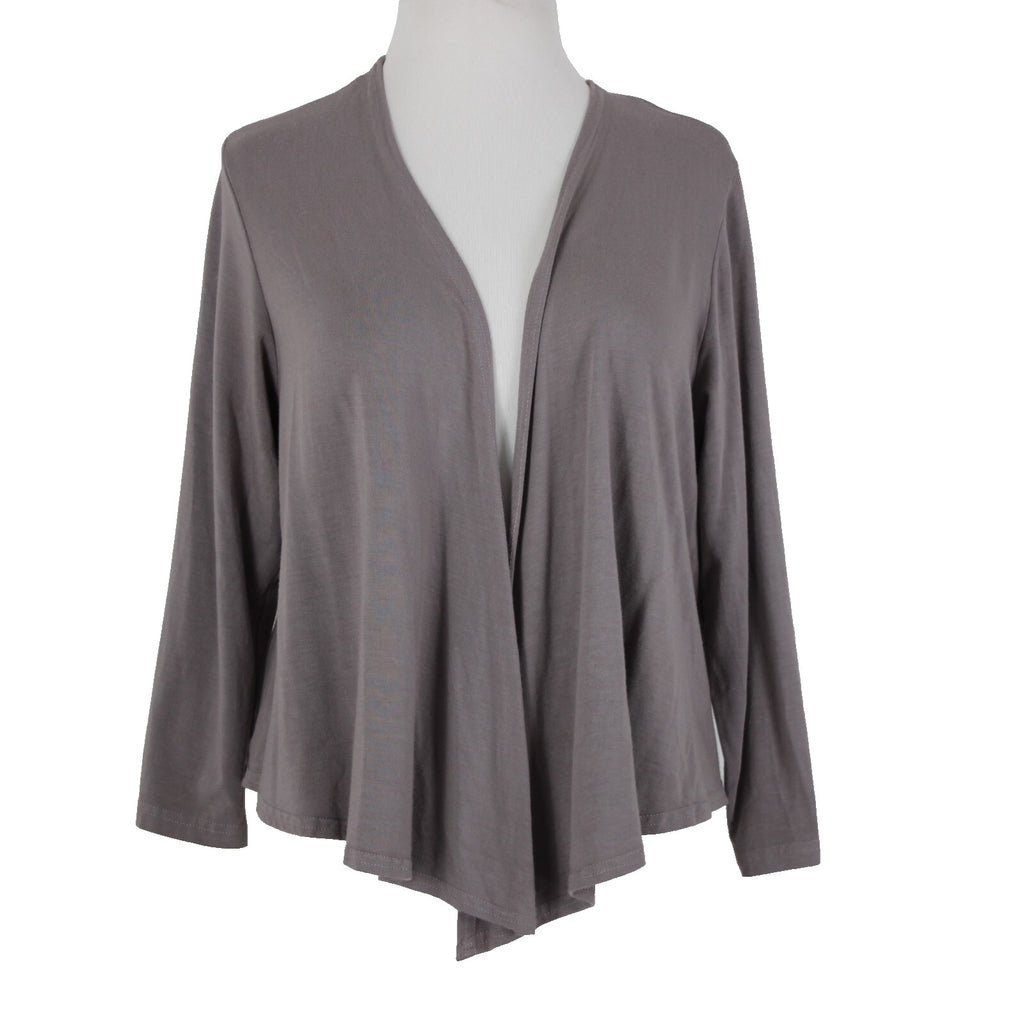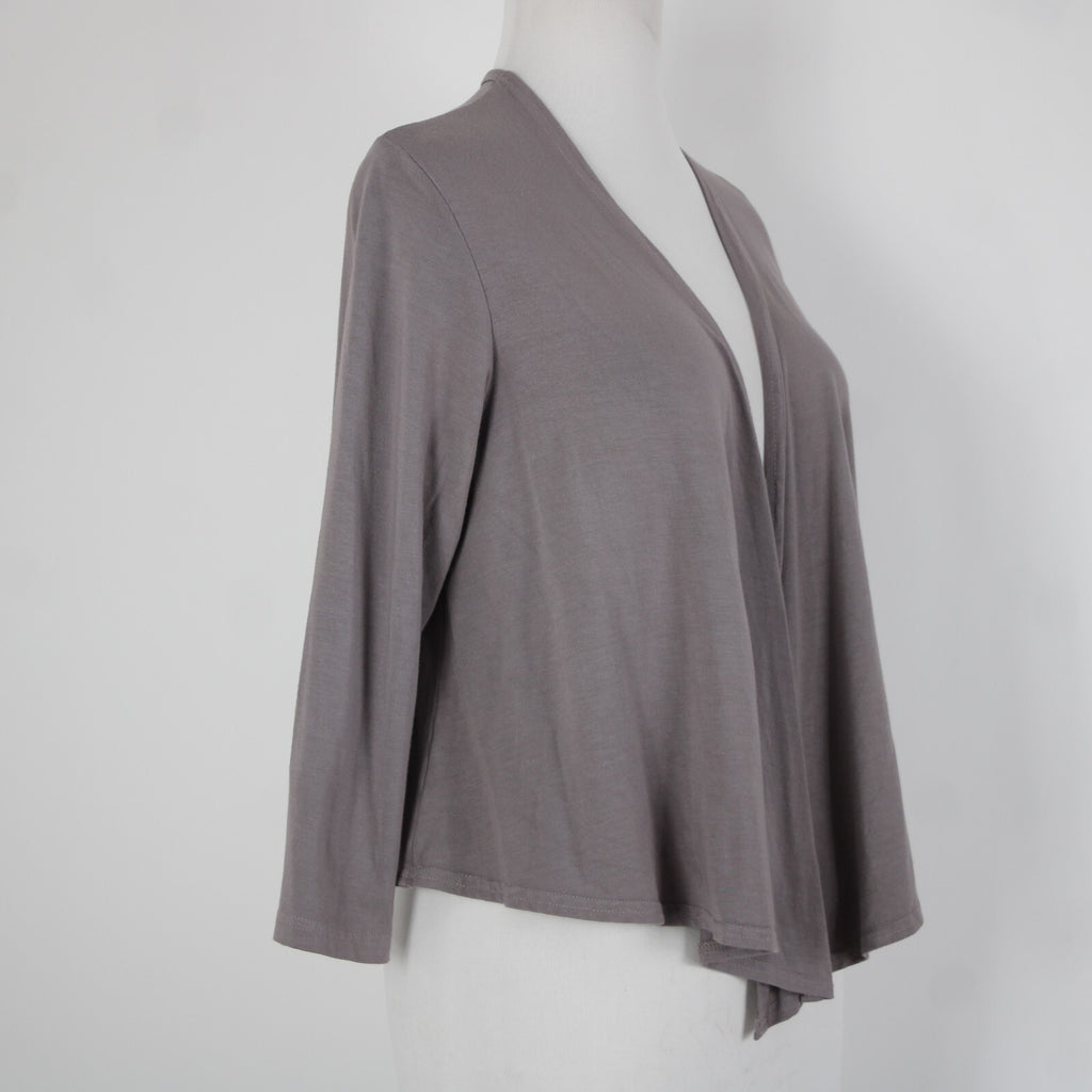 Heartstring Sz M Brown Taupe Draped 3/4 Sleeve Viscose Spandex Wrap Sweater