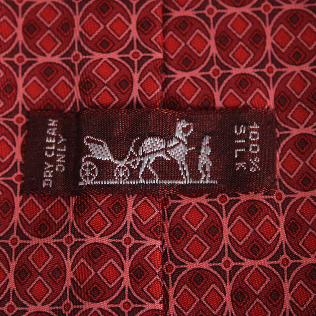 Hermes Red Pink 62" Geometric 100% Silk Tie With Gift Box