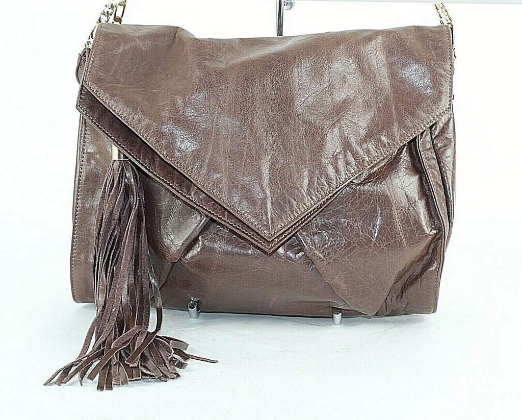 Hype Sz 13 x 10 x 6 Taupe Flap Tassel Goldtone Chain Shoulder Purse 6620Q