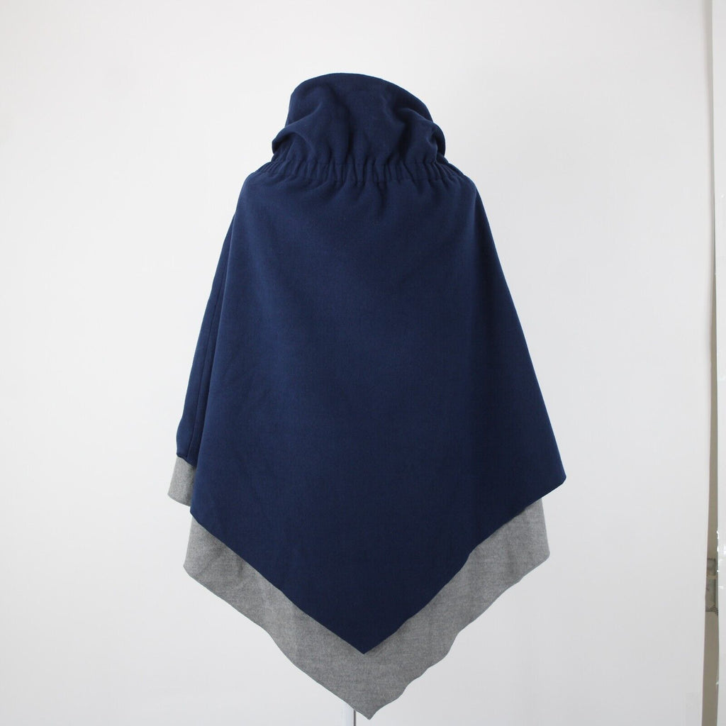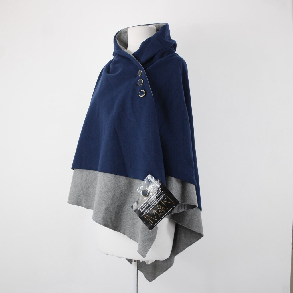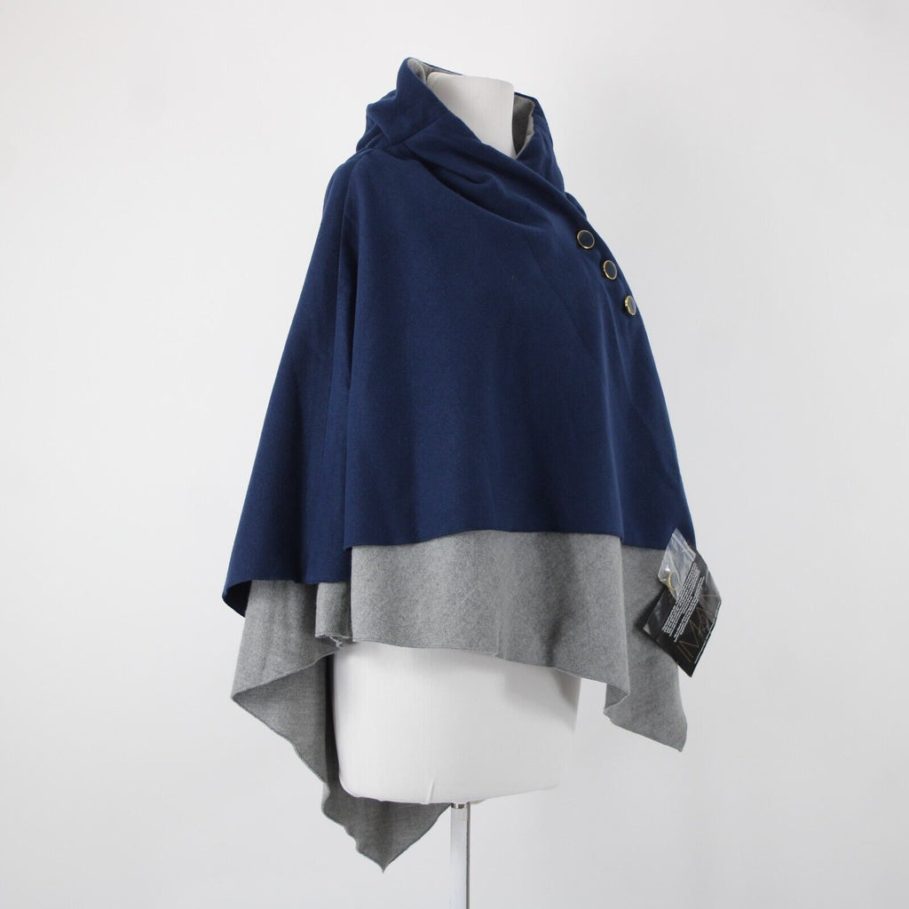 Iman NEW Sz M/L Navy Blue Gray Button Detail Collared Polyester Rayon Wrap