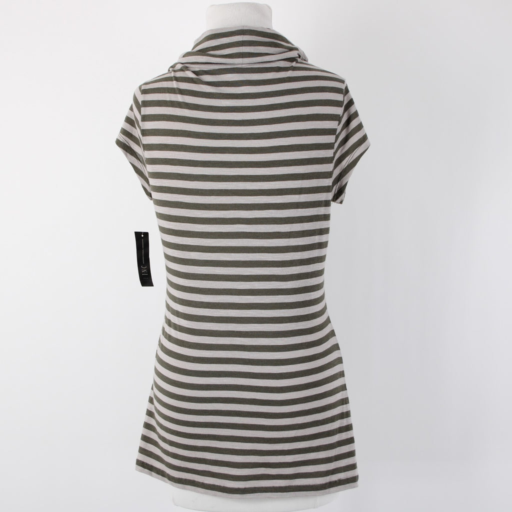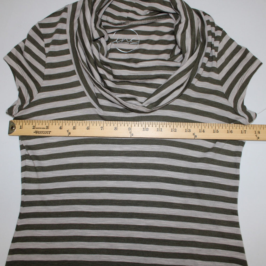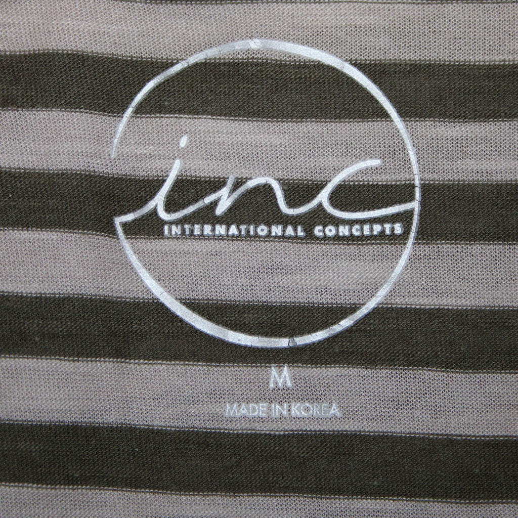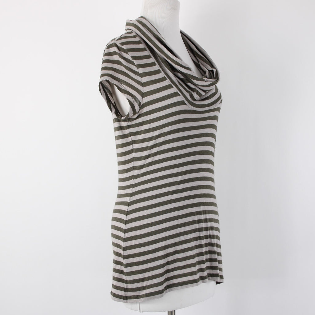INC NEW $49 Utility Chic Sz M Green Tan Striped Cowl Neck Jersey Knit Top