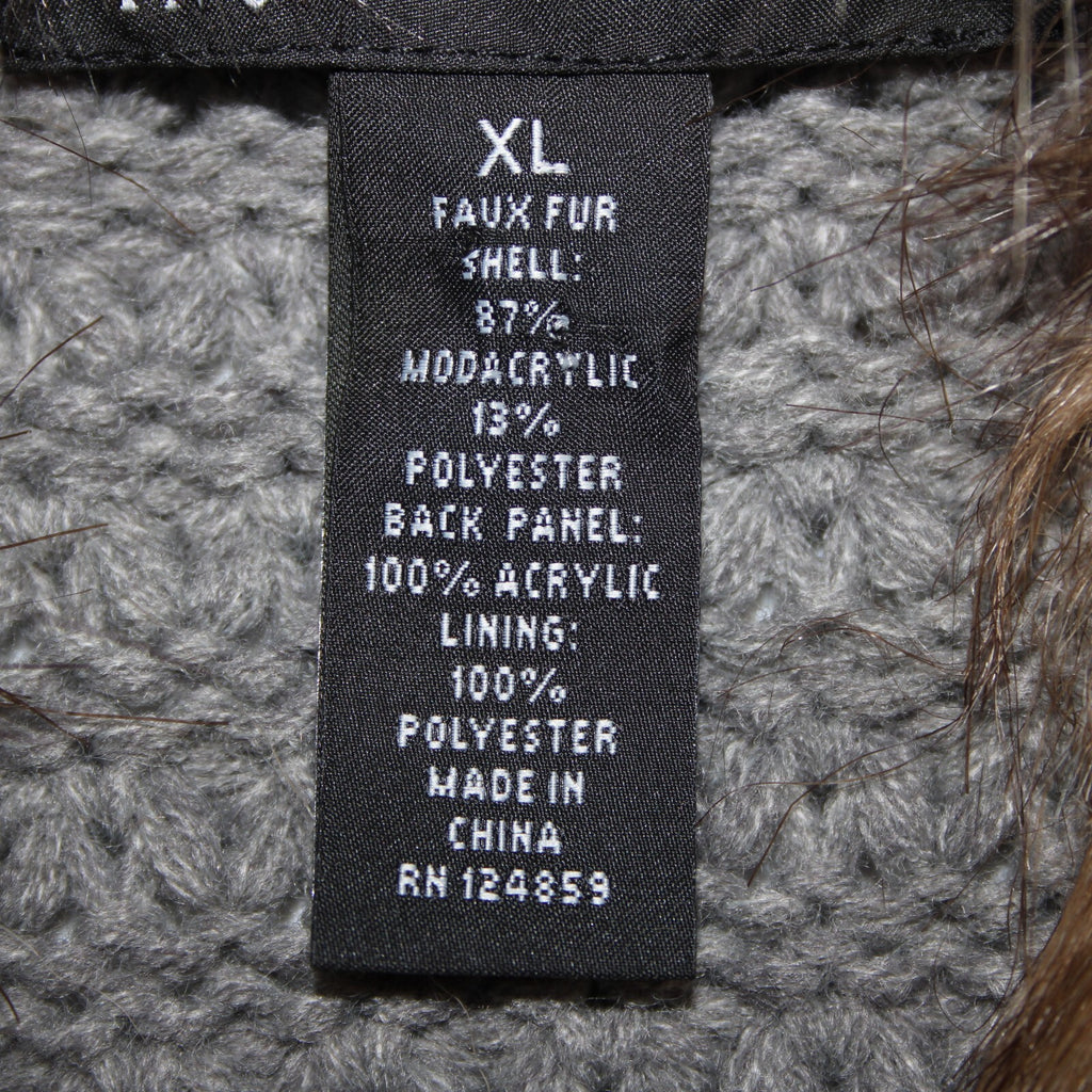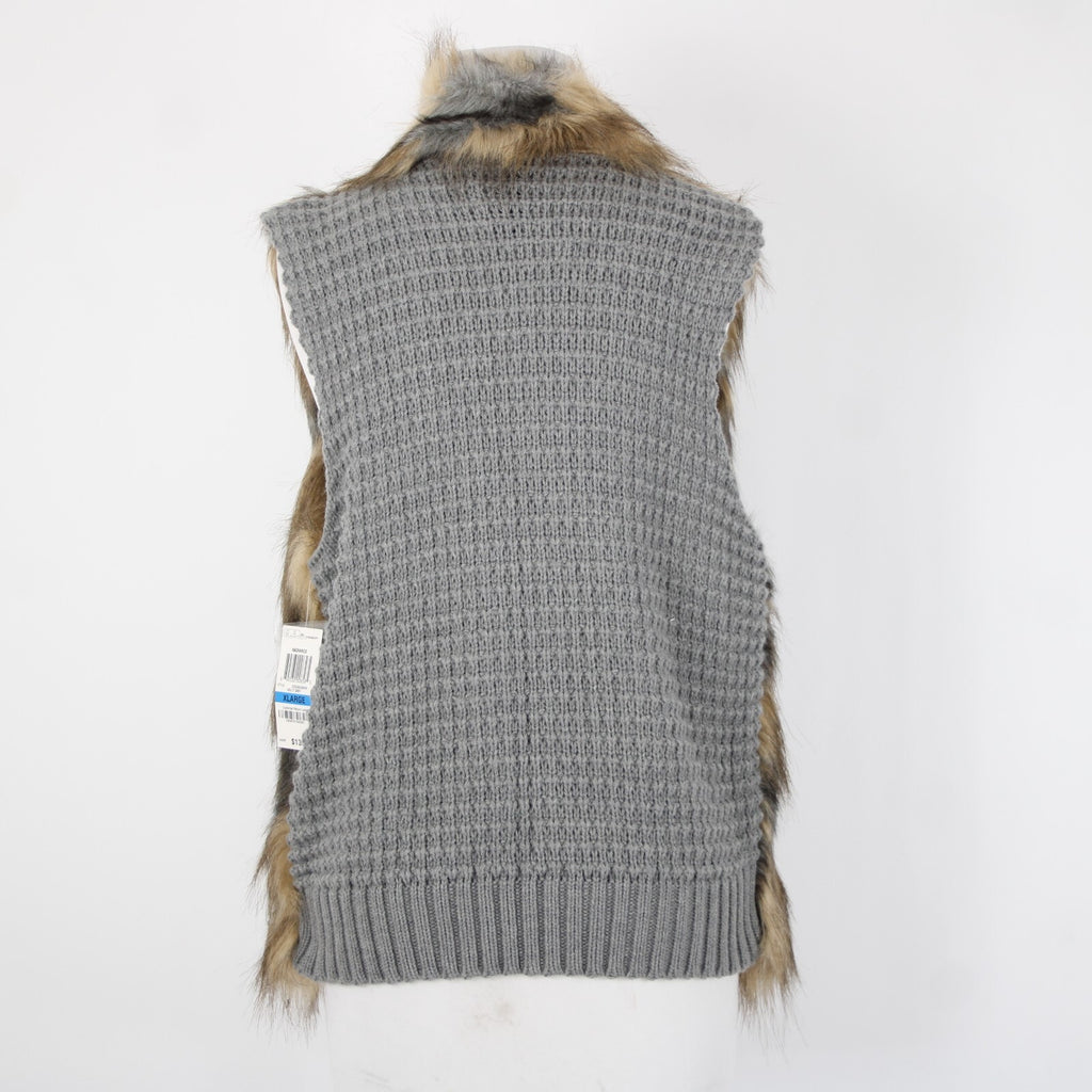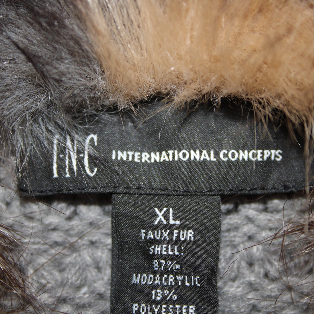 INC Radiance NEW $139 Sz XL Brown Tan Faux Fur Gray Chunky Knit Bohemian Vest