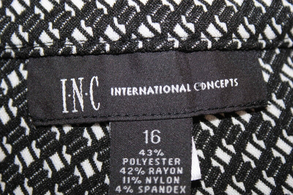 INC Sz 16 x 27 White Black Satin Side Stripe Poly Rayon Nylon Spandex Pant