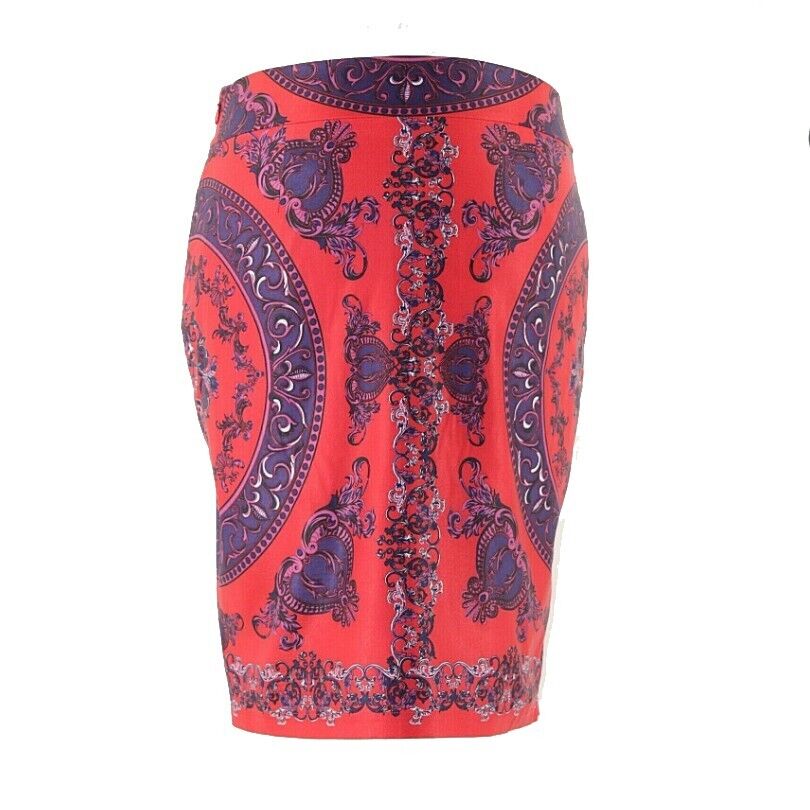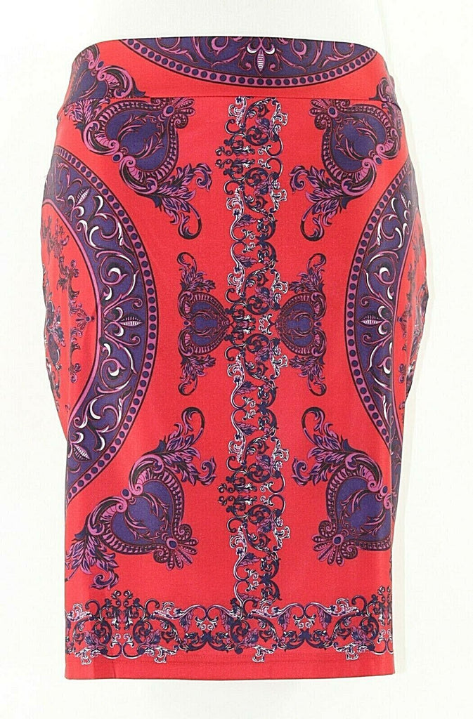INC Sz 8 Red Purple Gray Print Polyester Spandex Pencil Straight Skirt