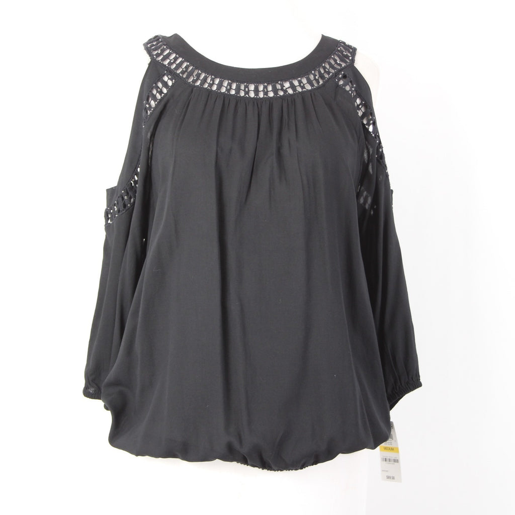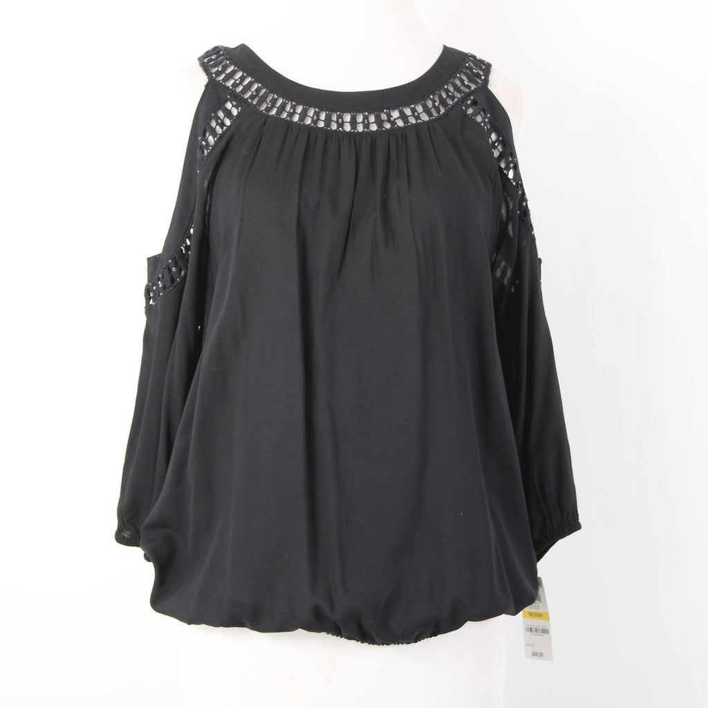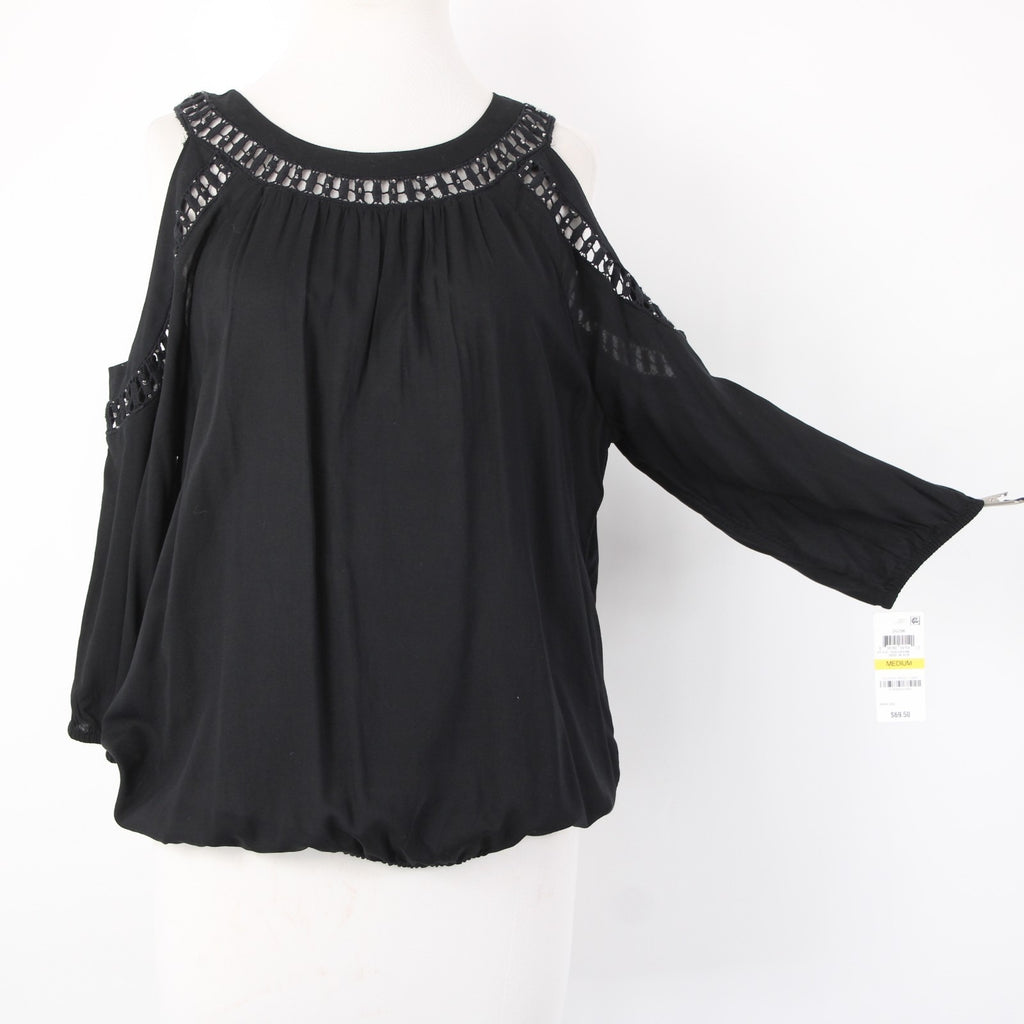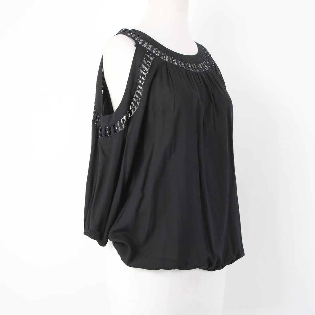 INC Top NEW $70 Sz M Black Cold Shoulder Eyelets 100% Rayon Cotton Top