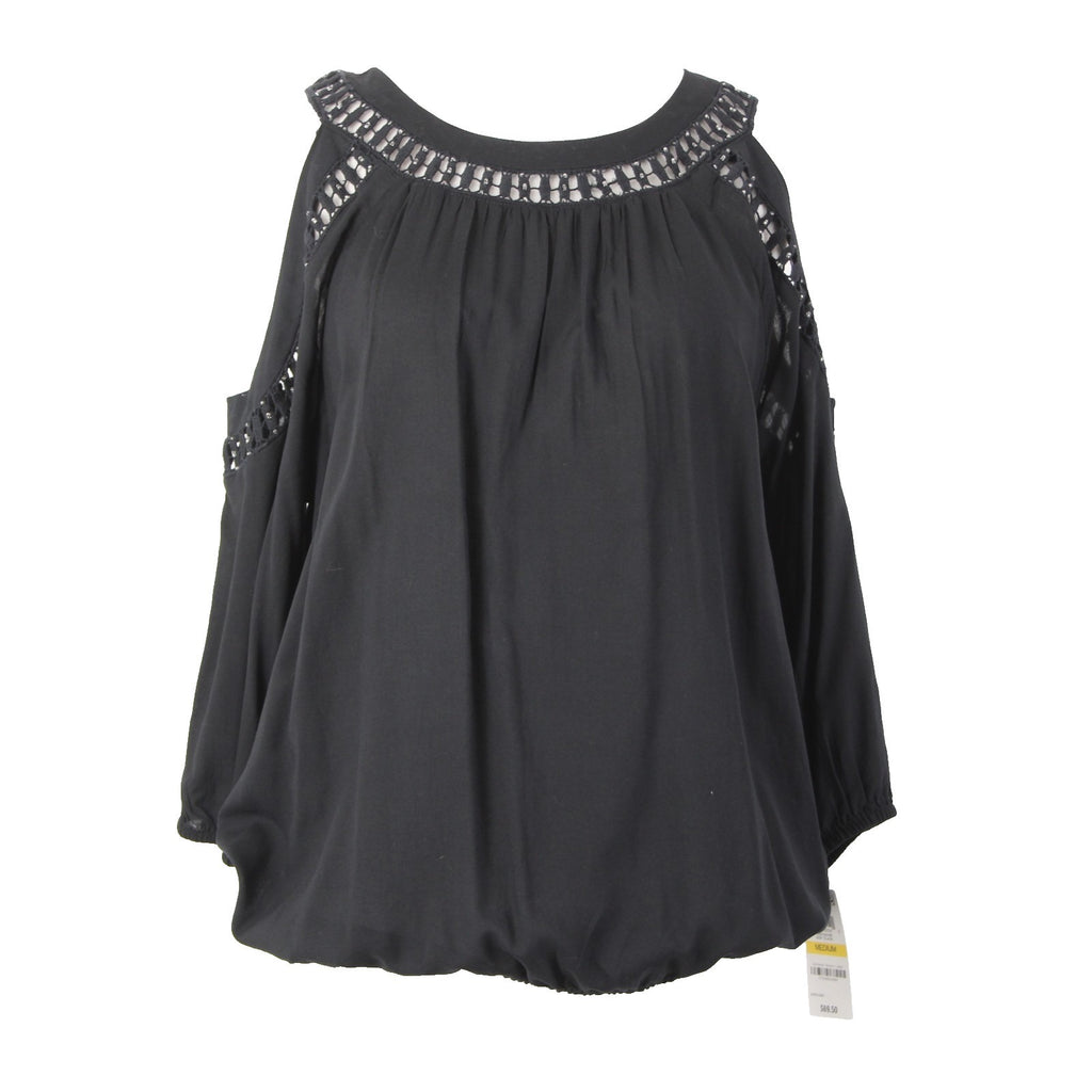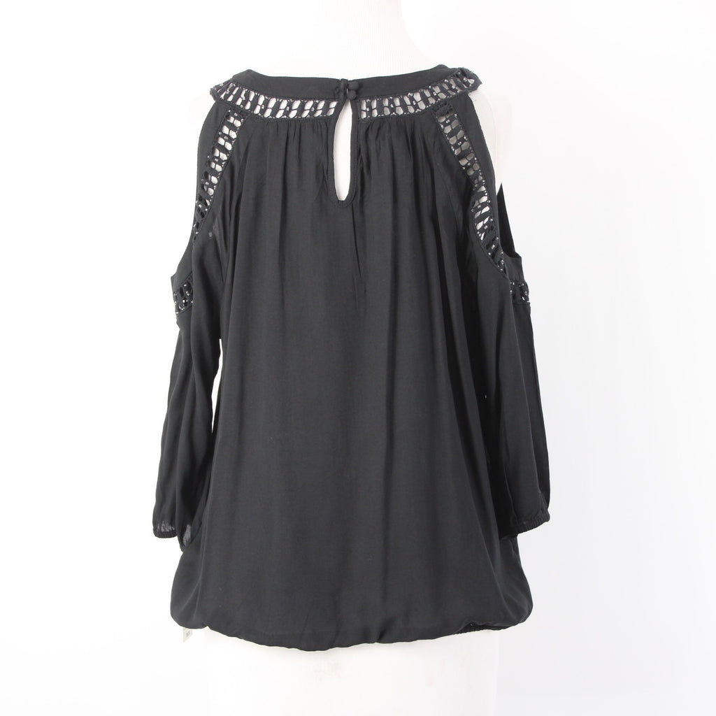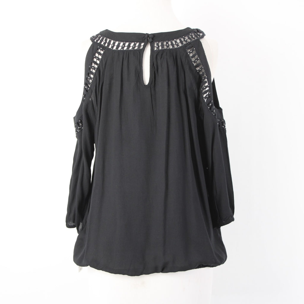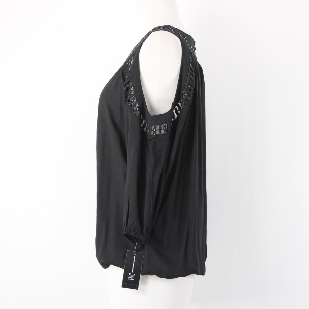 INC Top NEW $70 Sz M Black Cold Shoulder Eyelets 100% Rayon Cotton Top
