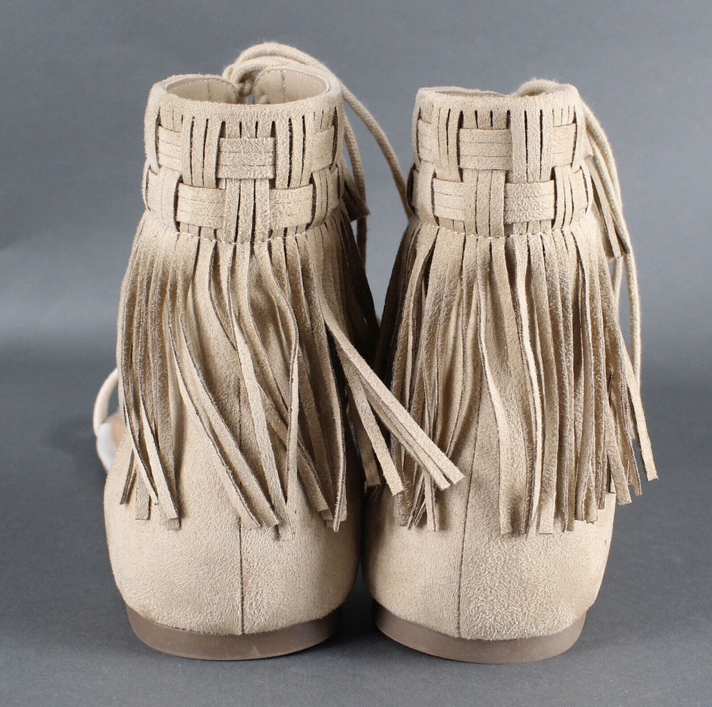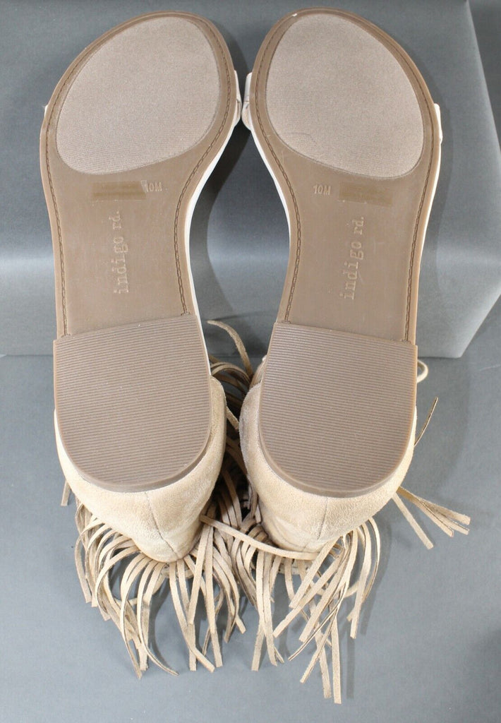 Indigo Rd Sz 10 Cream Tan Fringed Ankle Tie Flat Sandal