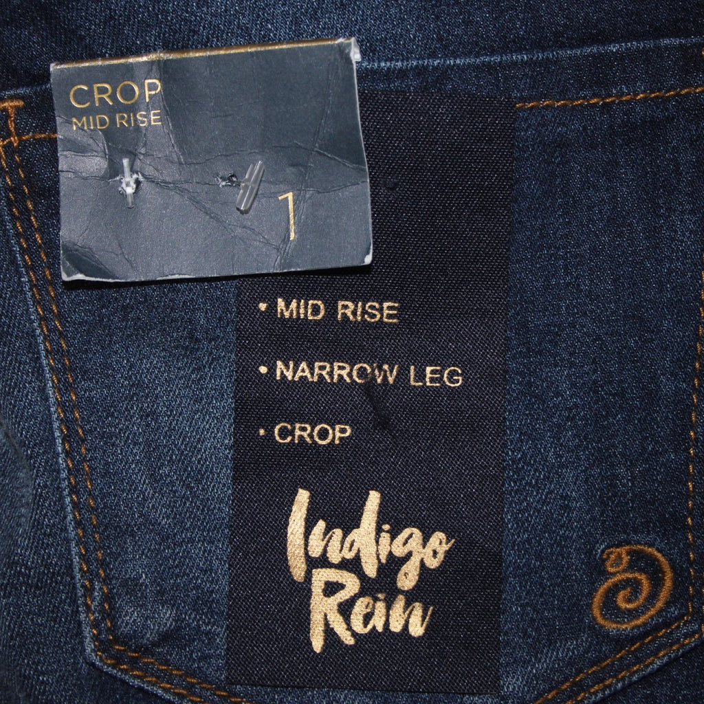 Indio Rein Jeans NEW $44 Sz 25 x 30 Blue Denim Distressed Crop Cotton Poly Jeans
