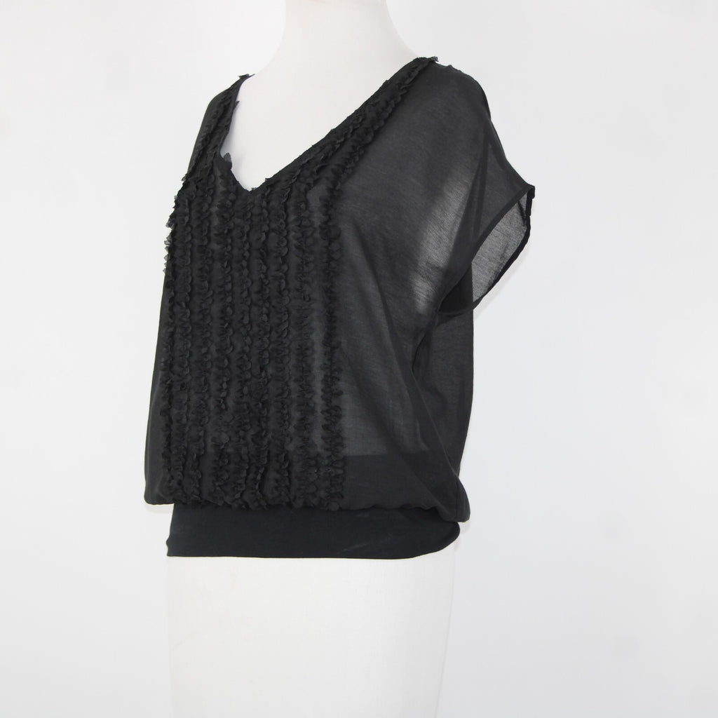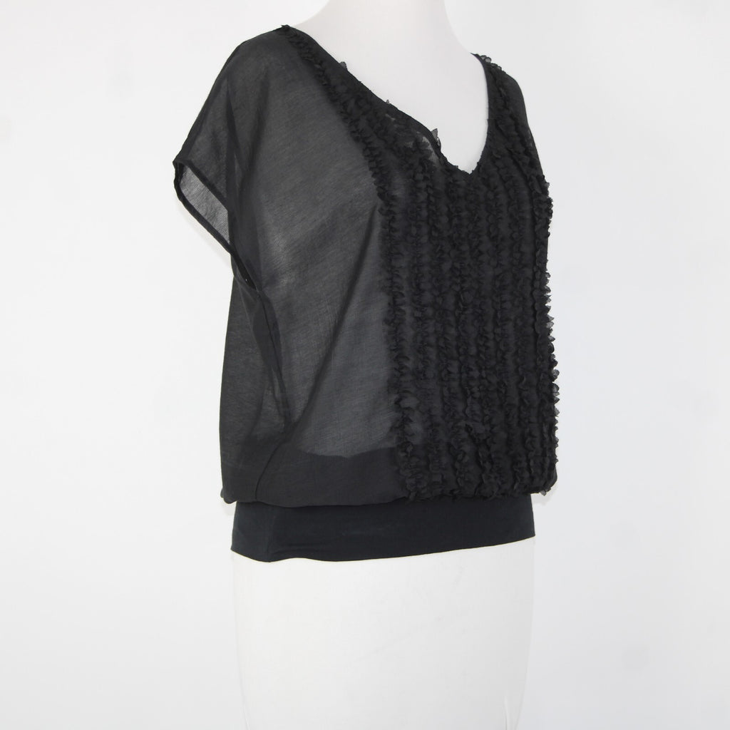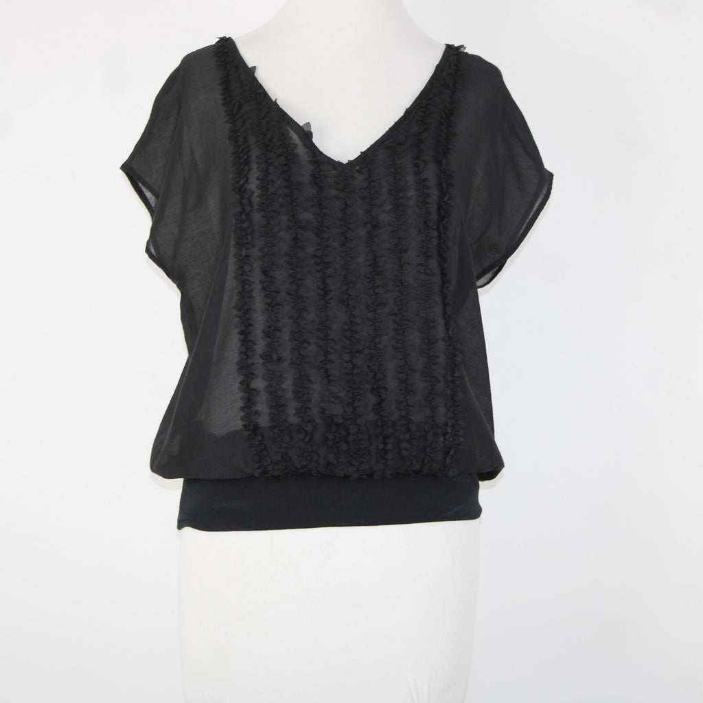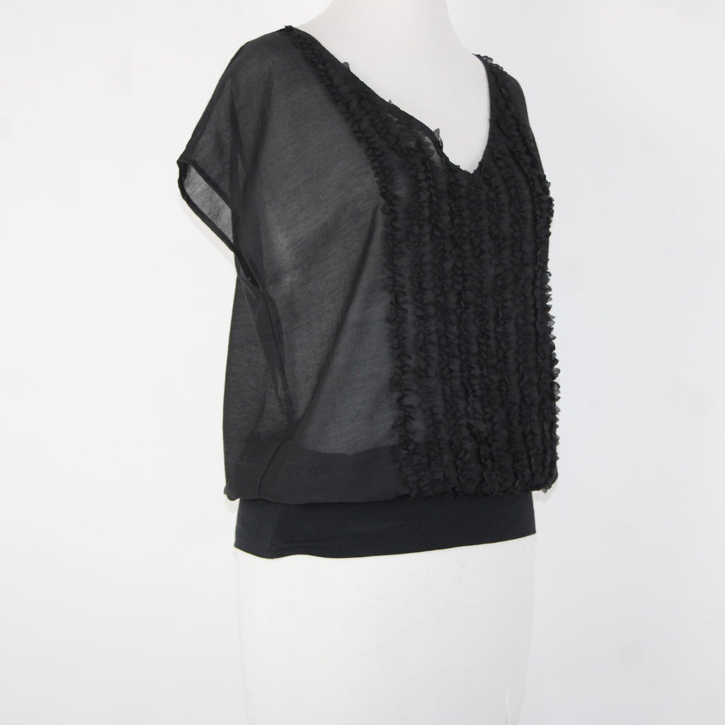 Isda Co NEW $163 Clipped Sz S Black Sheer V Neck Short Sleeve Poly Cotton Top