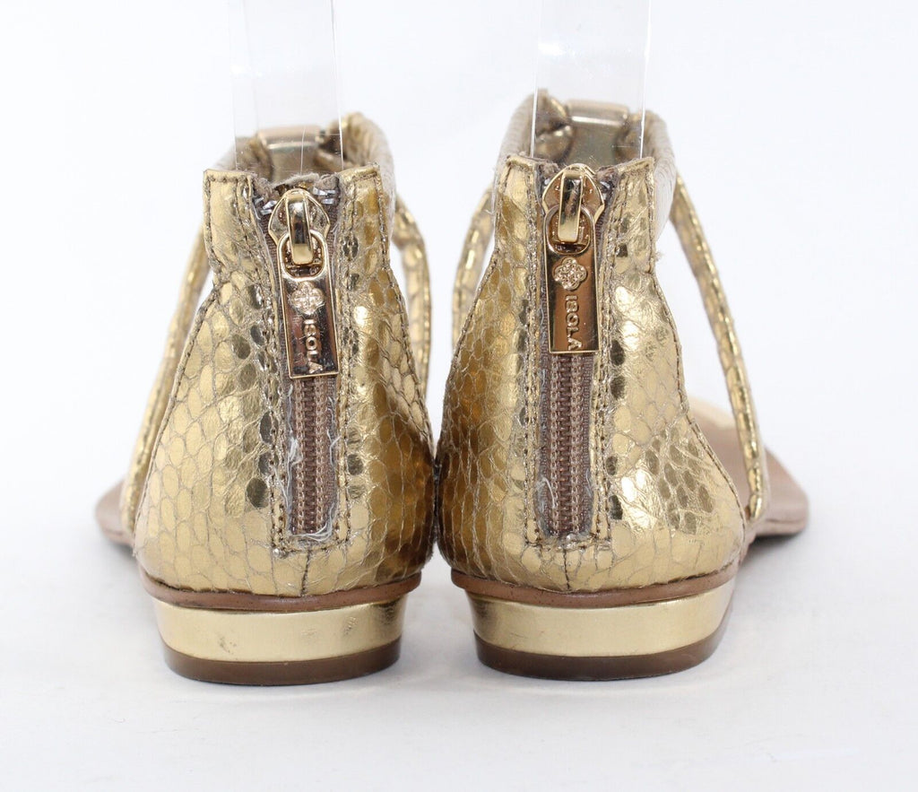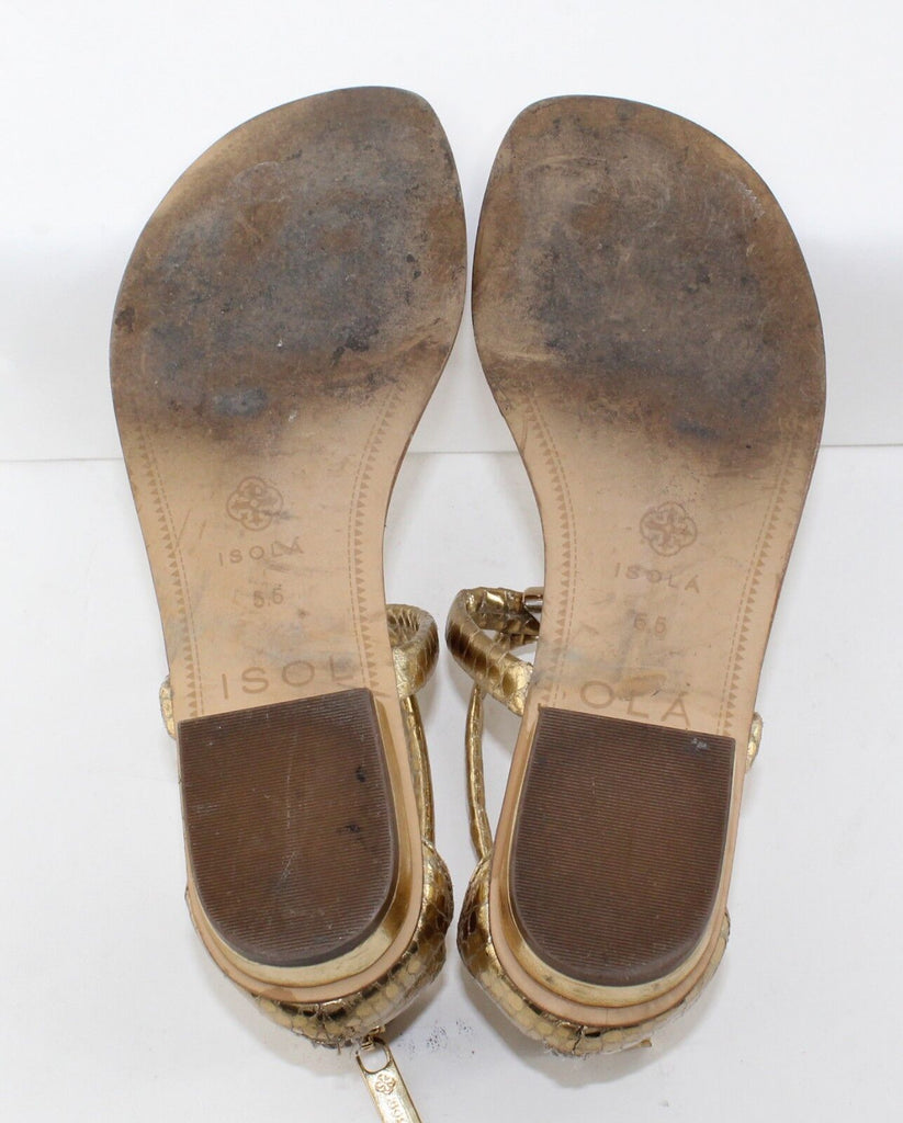 Isola Sz 5.5 Gold Reptile Pattern Faux Leather T Strap Metal Detail Sandals