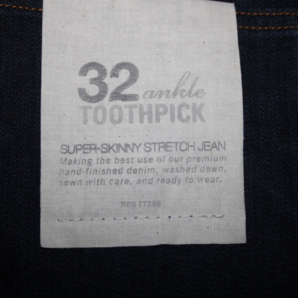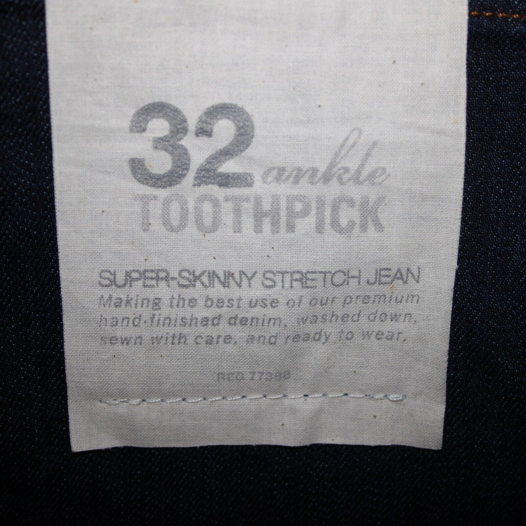 J Crew NEW Toothpick Sz 32 x 28.5 Drk Blue Denim Ankle Cotton Spandex Jeans