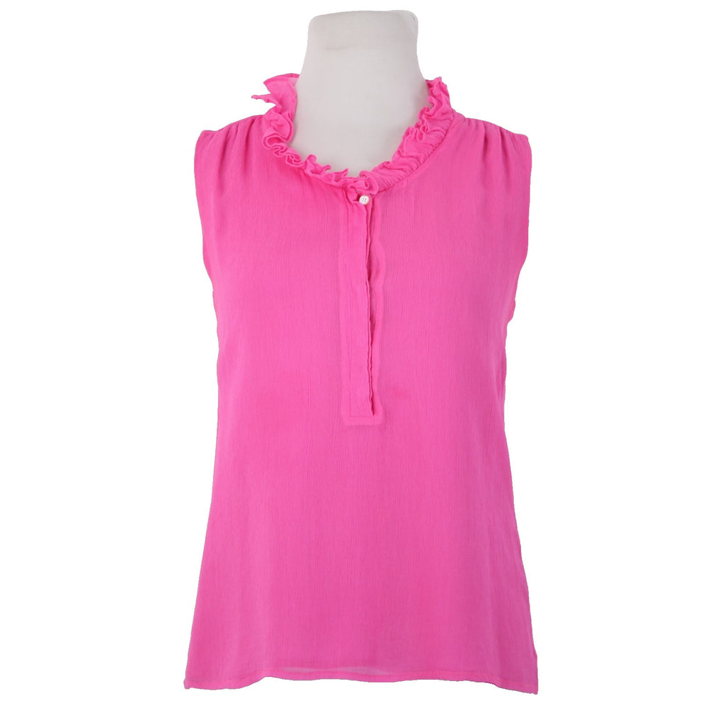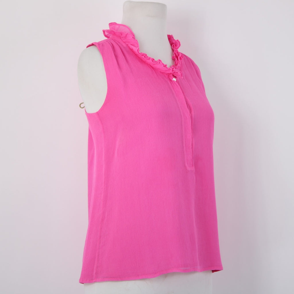 J Crew Top Sz 4 Pink Collared Half Buttons Sleeveless Lined 100% Silk Poly Top