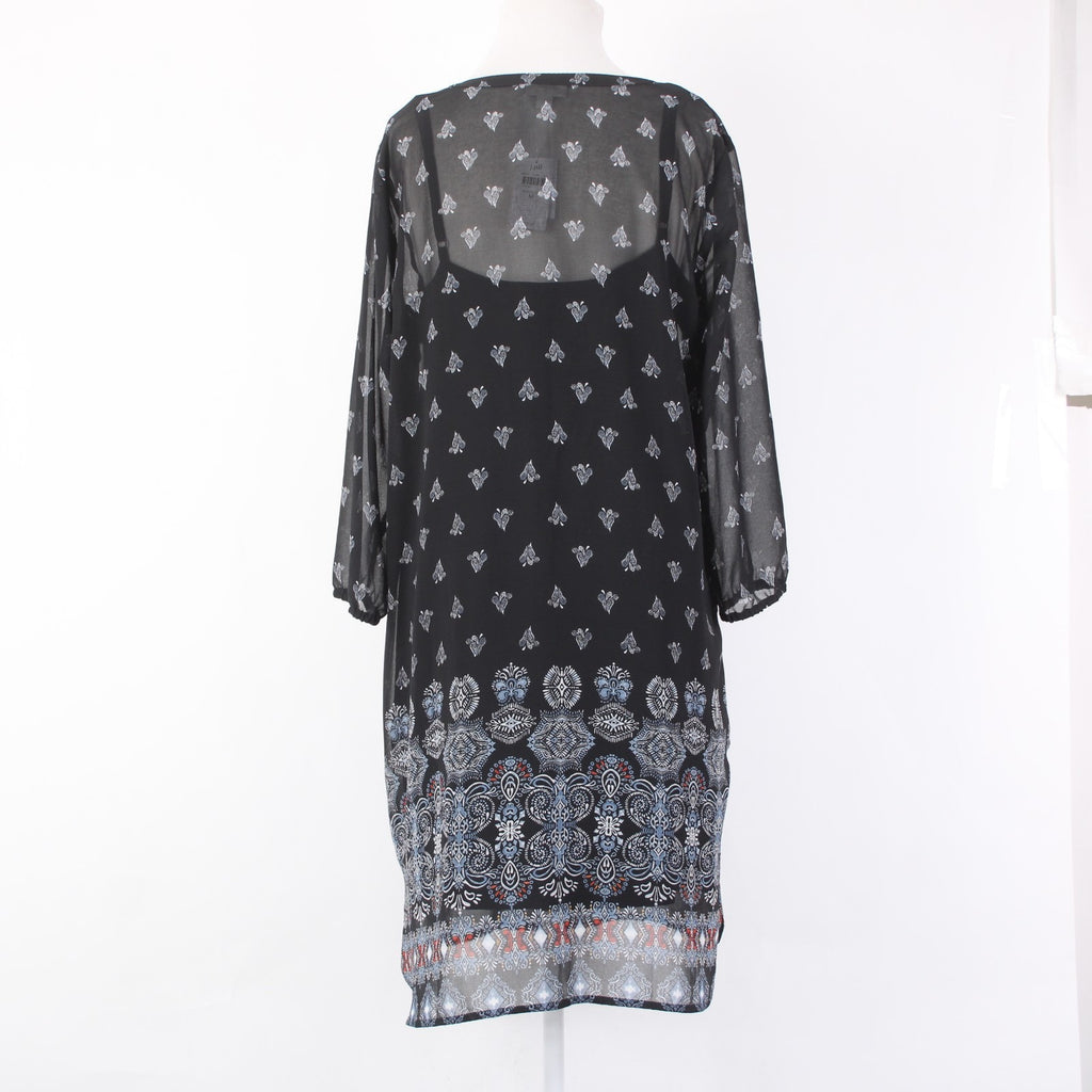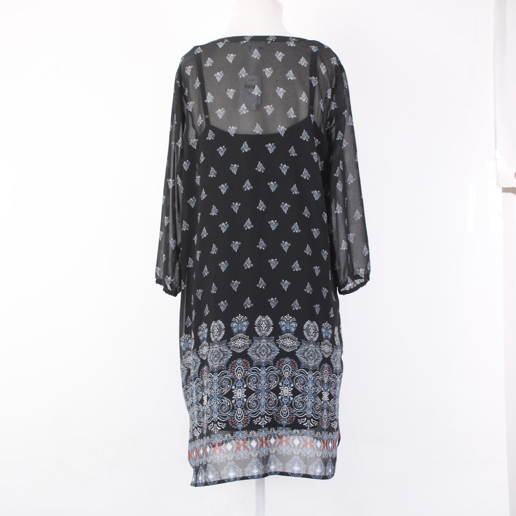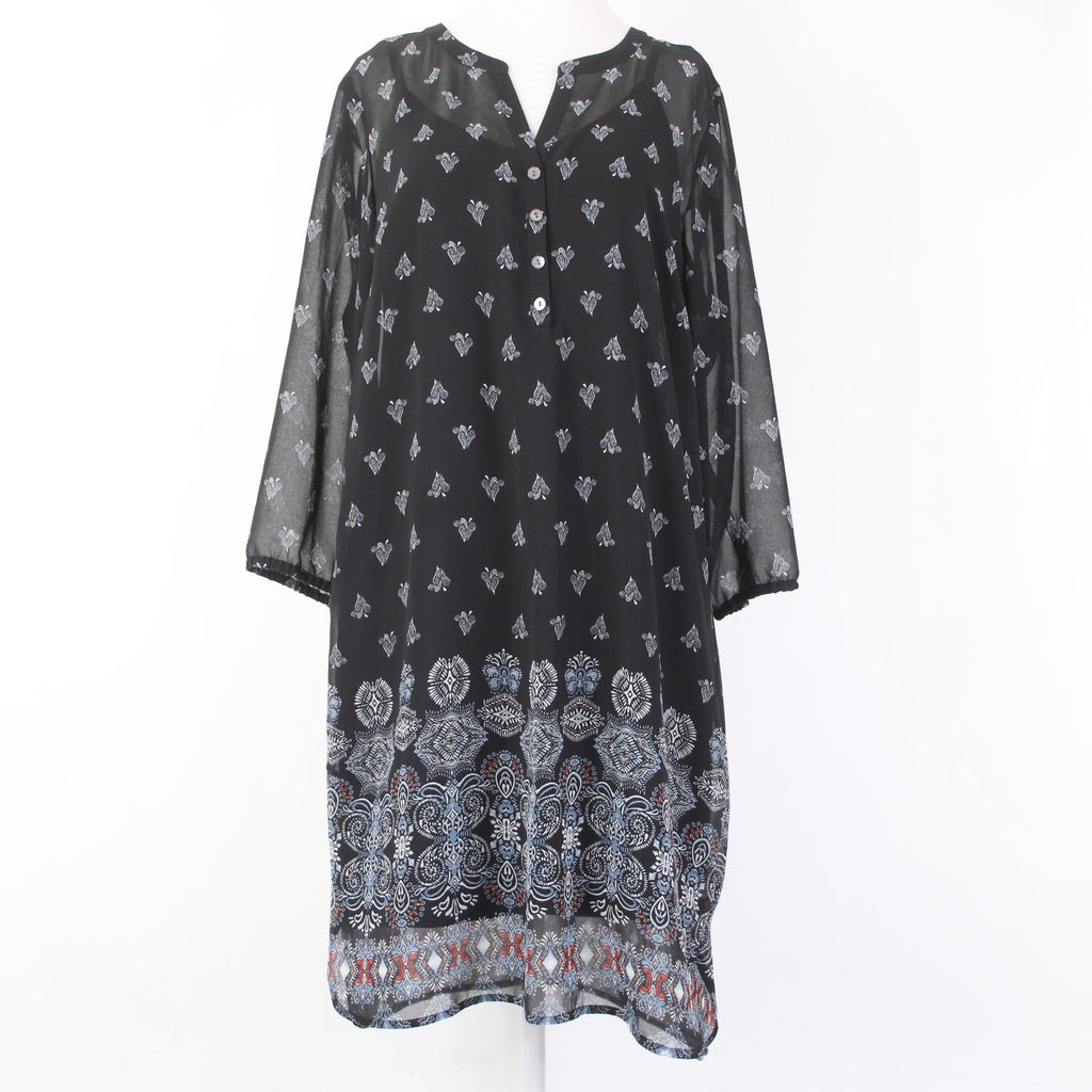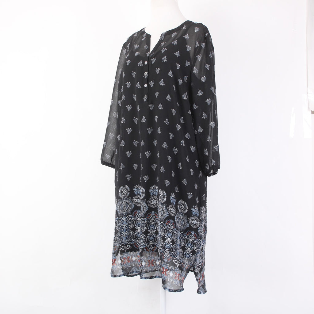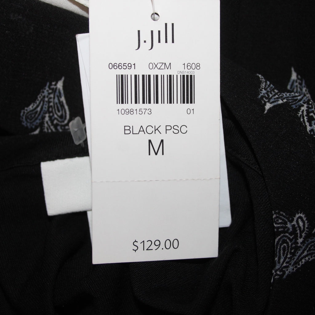 J Jill Dress NEW $129 Sz M Black White Multi Color Lined Cotton Rayon Dress