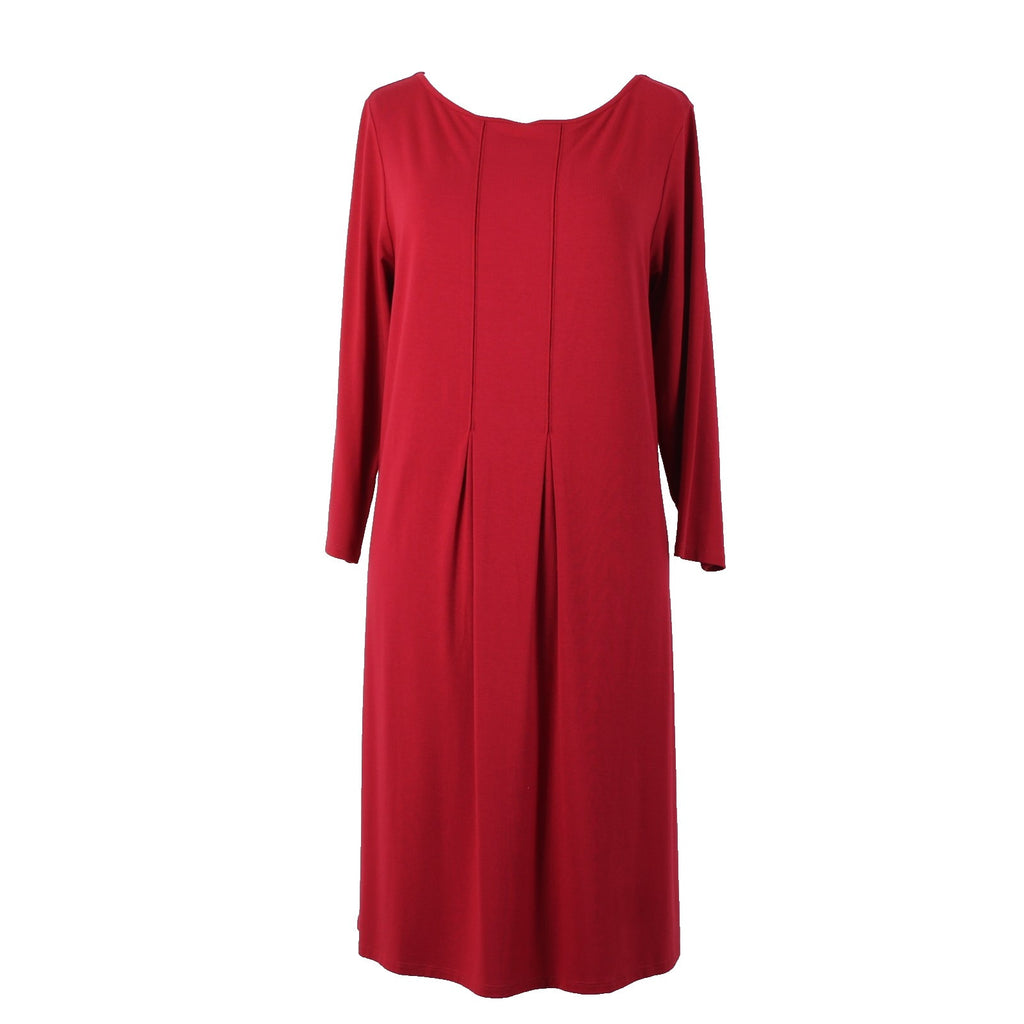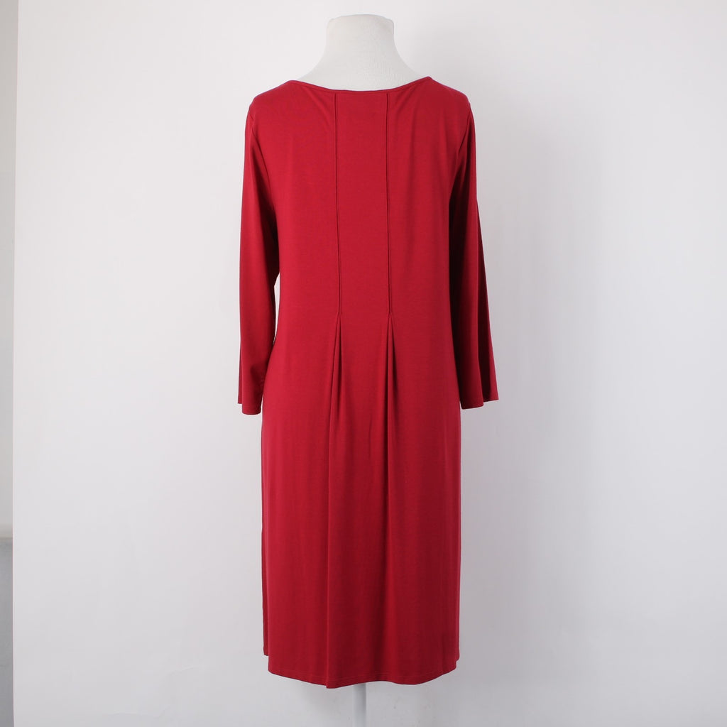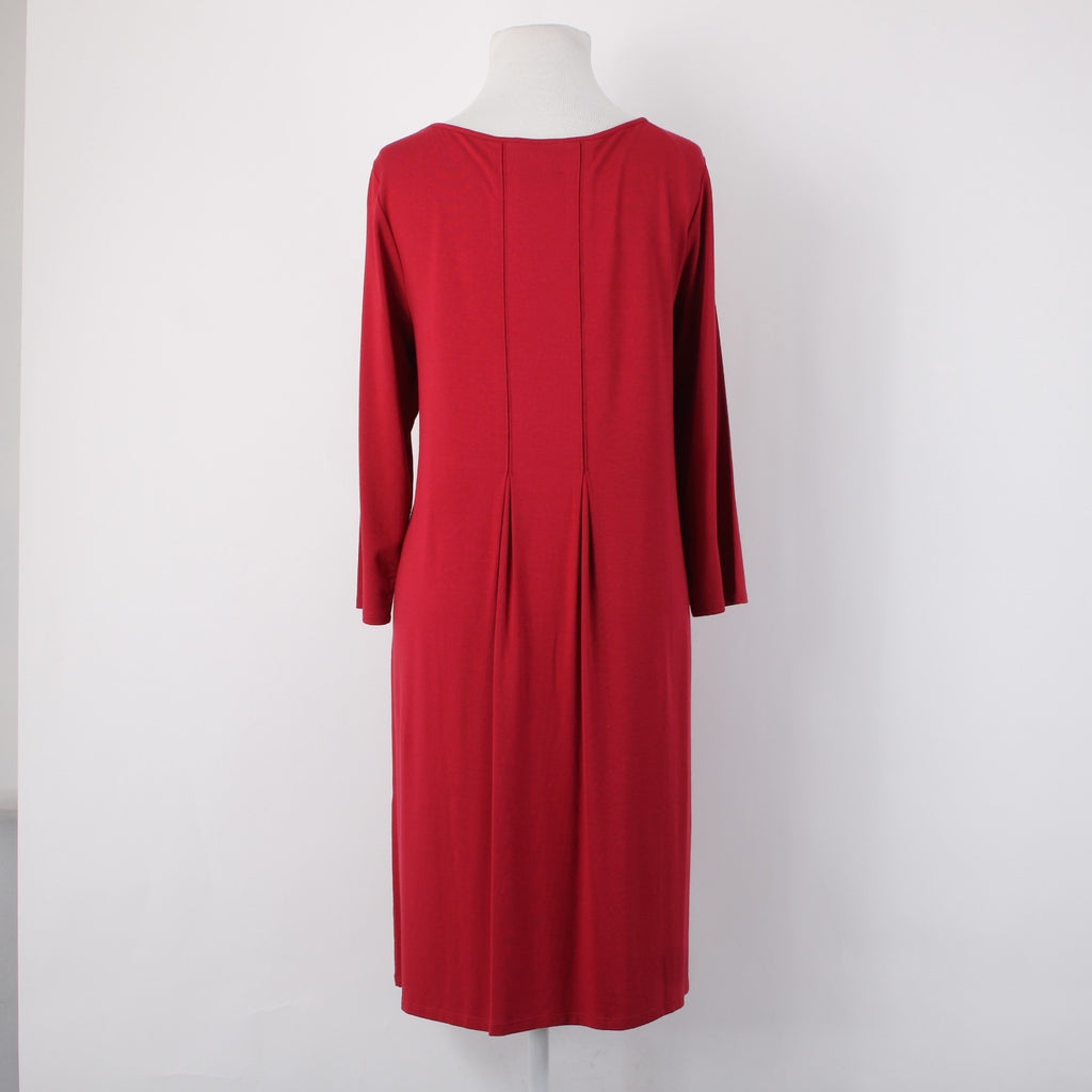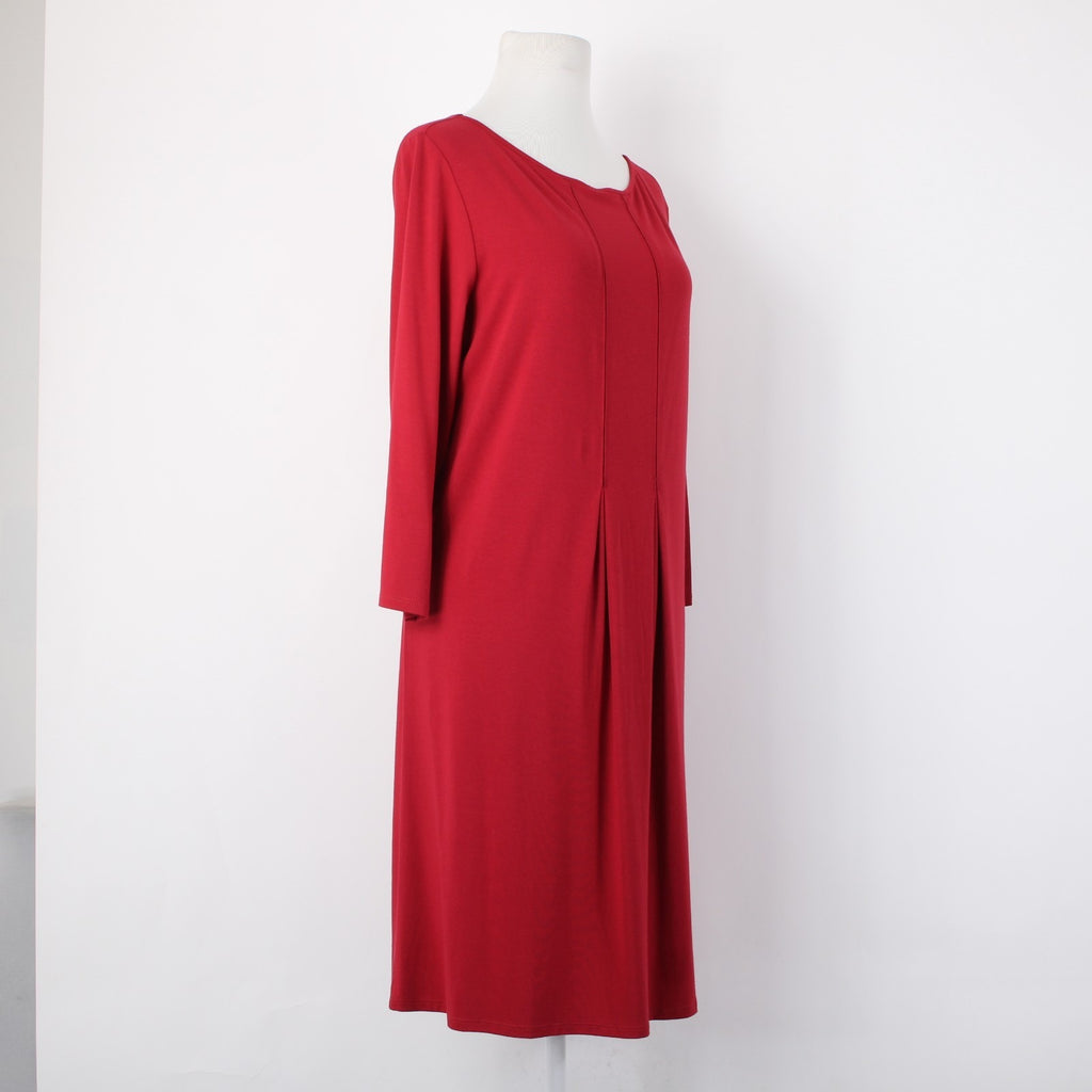 J Jill Dress NEW $99 Sz M True Red Pleated Rayon Lycra Spandex Midi Dress