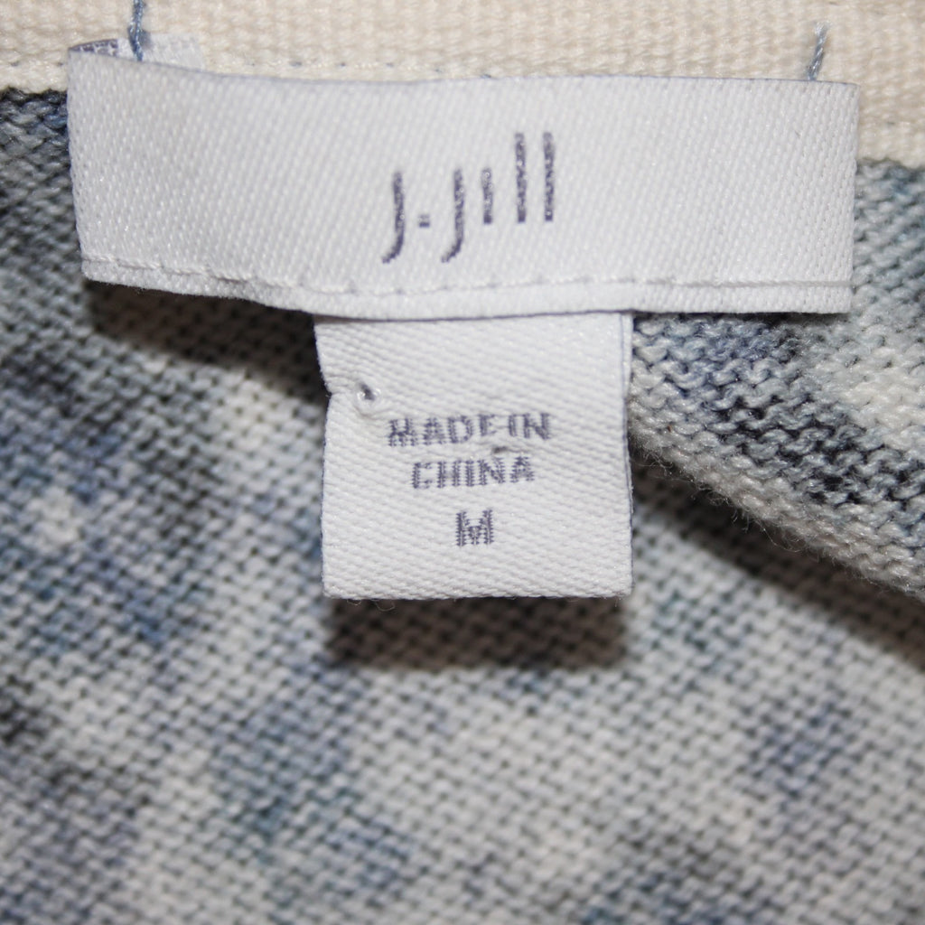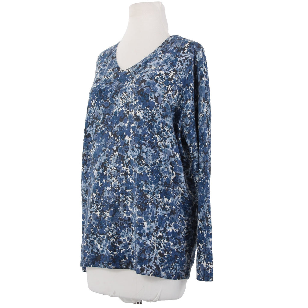 J Jill Sweater Sz M Oversize Blue Charcoal Multi Floral Cotton Blend Sweater