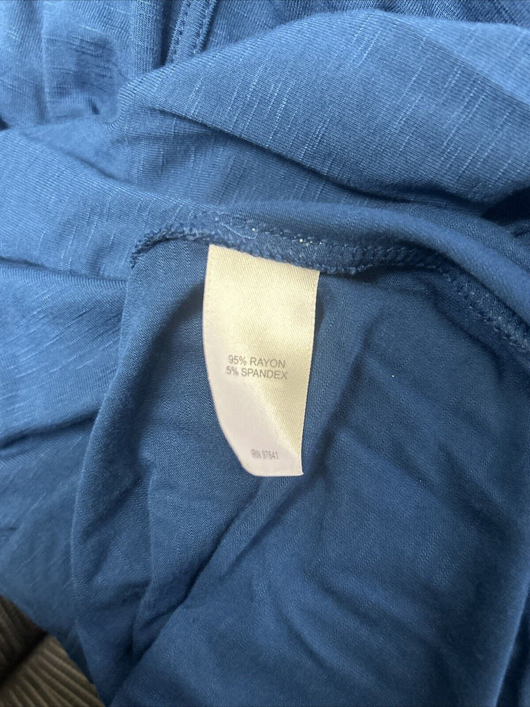 J Jill Sz M Blue Sleeveless Pockets V Neck Open Back Rayon Spandex Dress