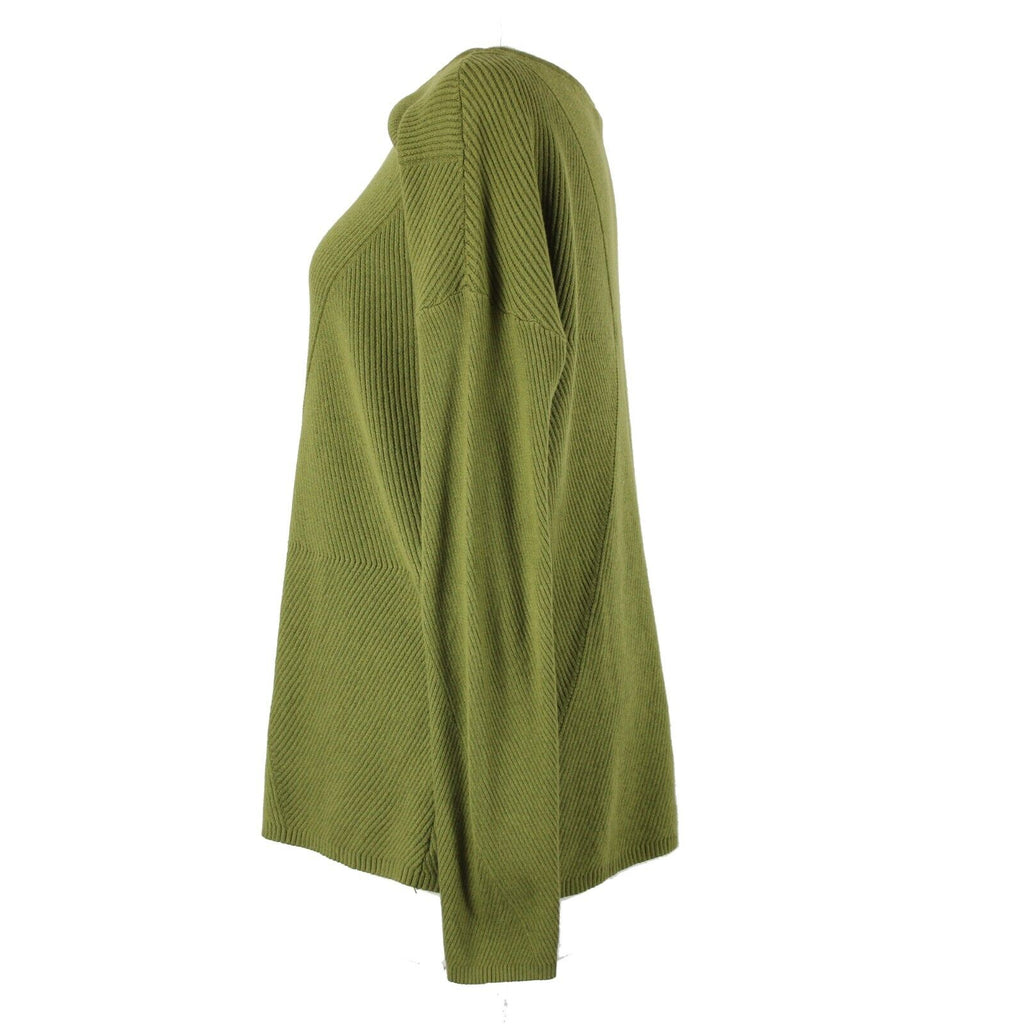 J Jill Sz M Olive Green Ribbed Asymmetric Crew Neck Long Sleeve Cotton Nylon Top