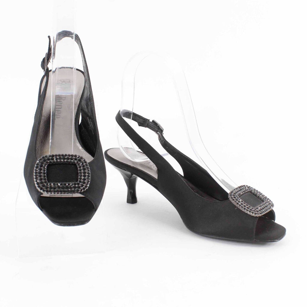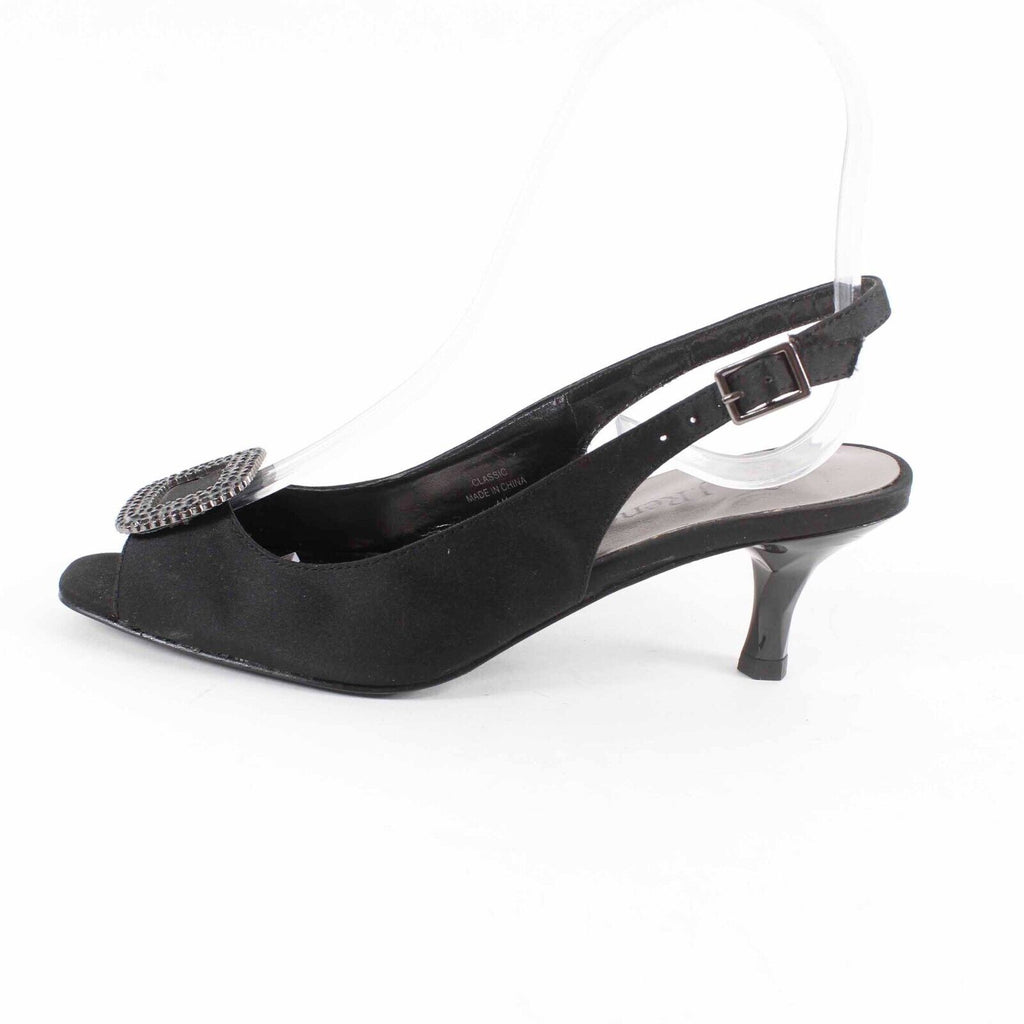 J Renee Classic Sz 4M Black Rhinestone Buckle Fabric Upper 2' Kitten Heel