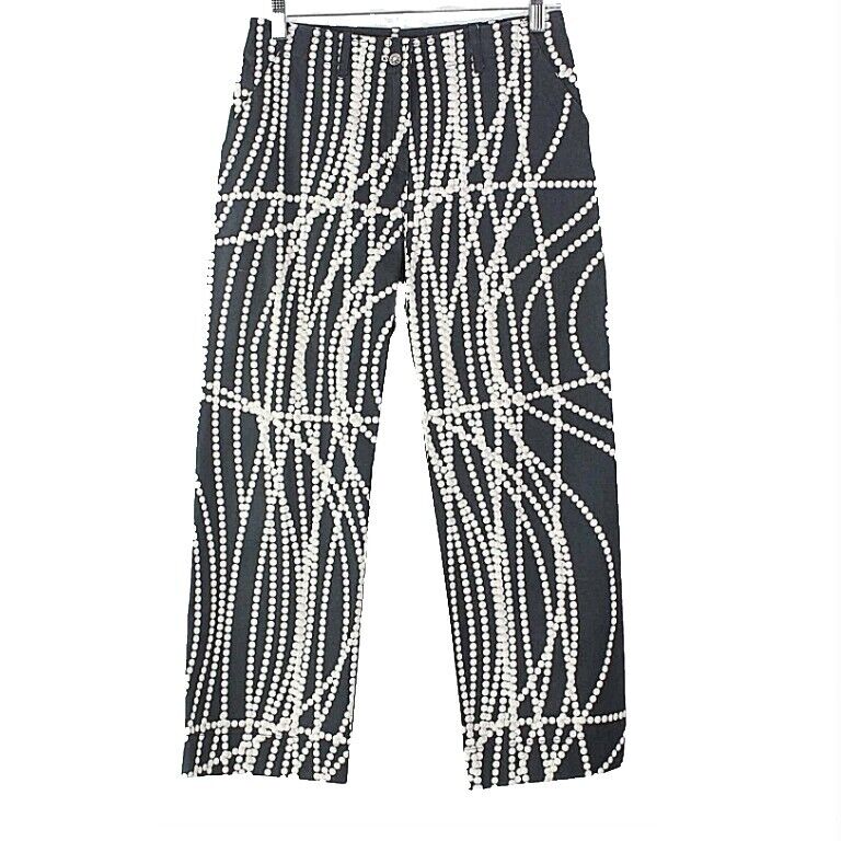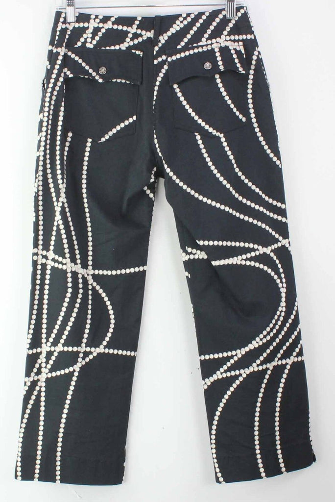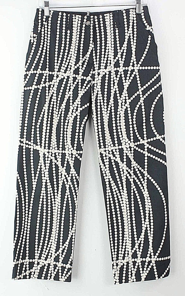 James Lakeland Sz 6 x 25 Black Cream Pearl Print Back Flap Pocket Capri Pant