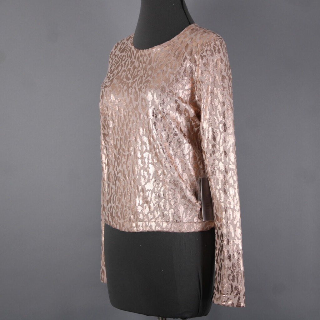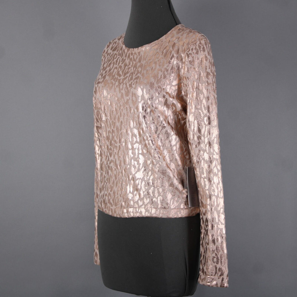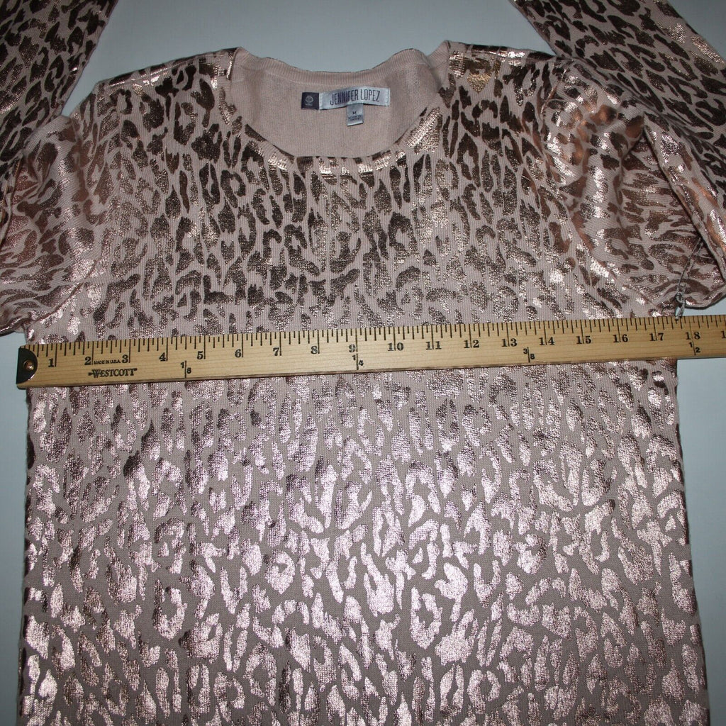Jennifer Lopez NEW $58 Gilded Glamour Sz M Pink Metallic Animal Print Cotton Top
