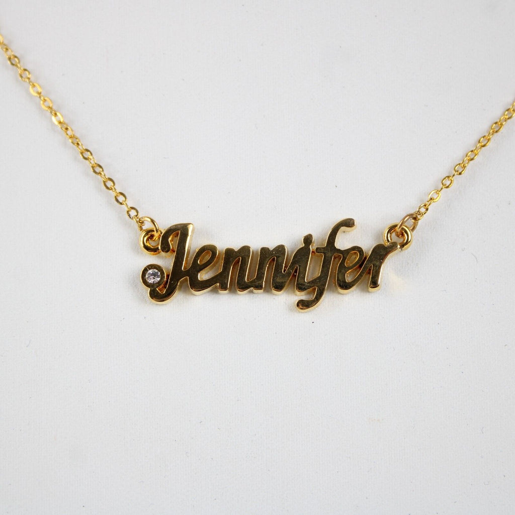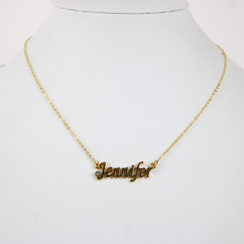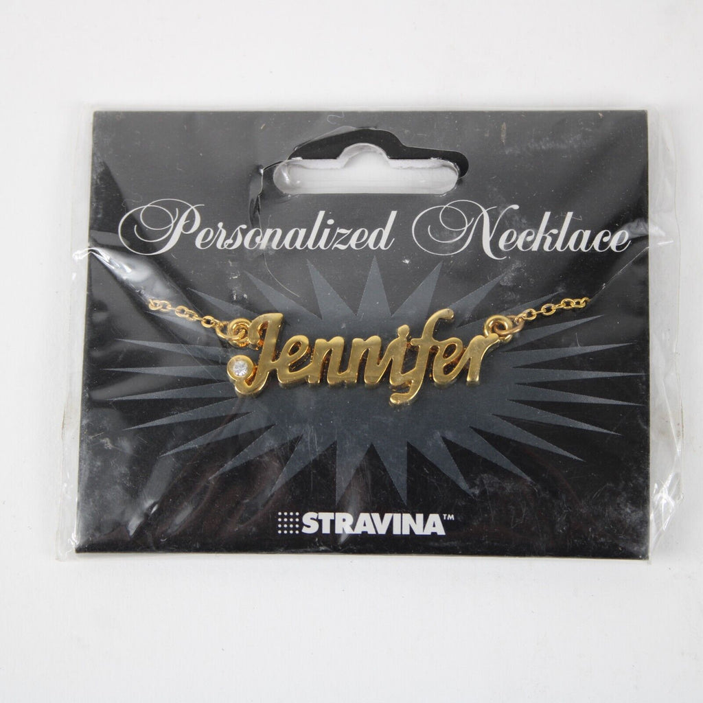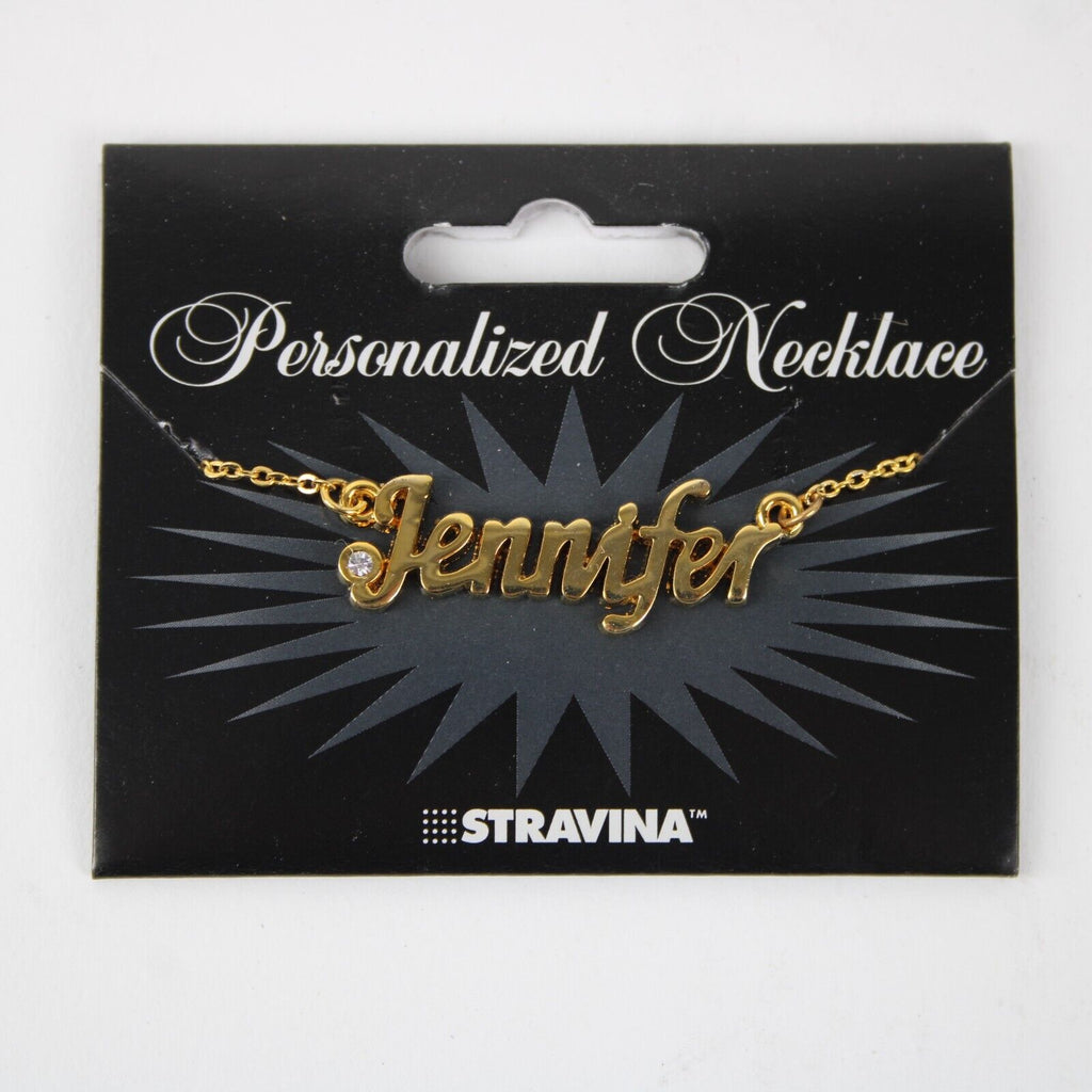 JENNIFER NEW Name Goldtone Rhinestone Accent 14.5" 4.5" Multi Ring Ext Necklace