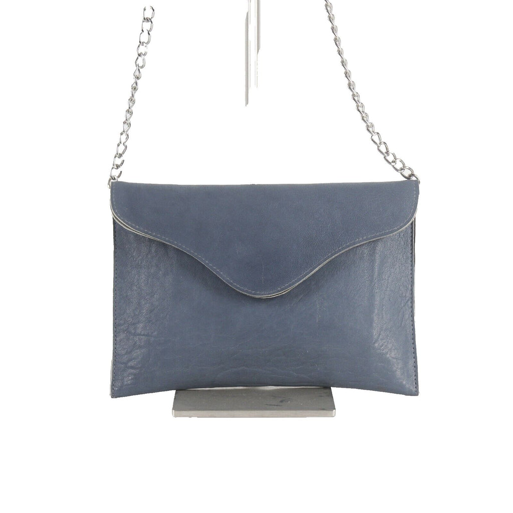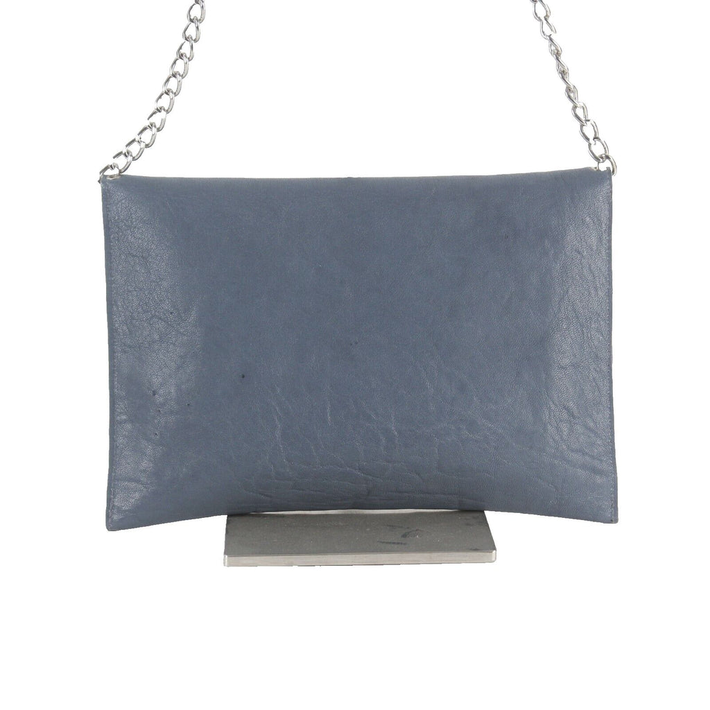 JJ Winters 7 x 10 Blue Leather Silver Crossbody Chain Convert Clutch Purse