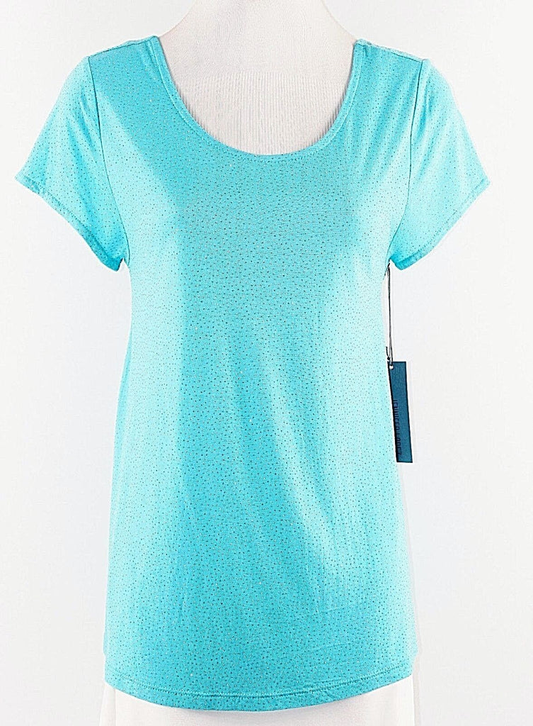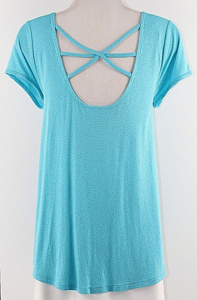 JLo NEW $34 Sz S Aqua Blue Silver Glitter Strappy Back Rayon Jersey Top