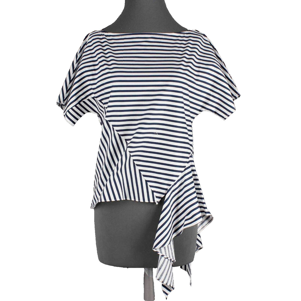 JOA NEW Sz S Navy Blue White Stripe Dolman Sleeve Side Tie Cotton Top
