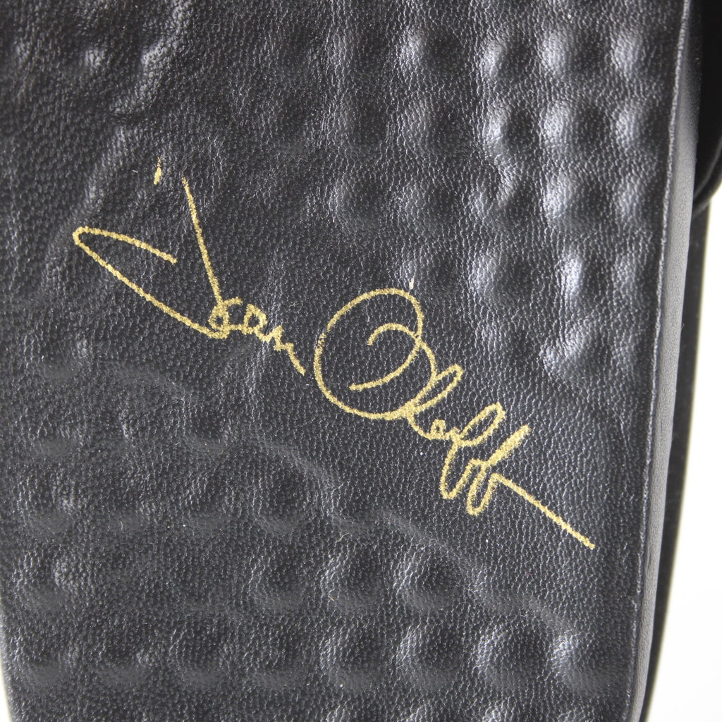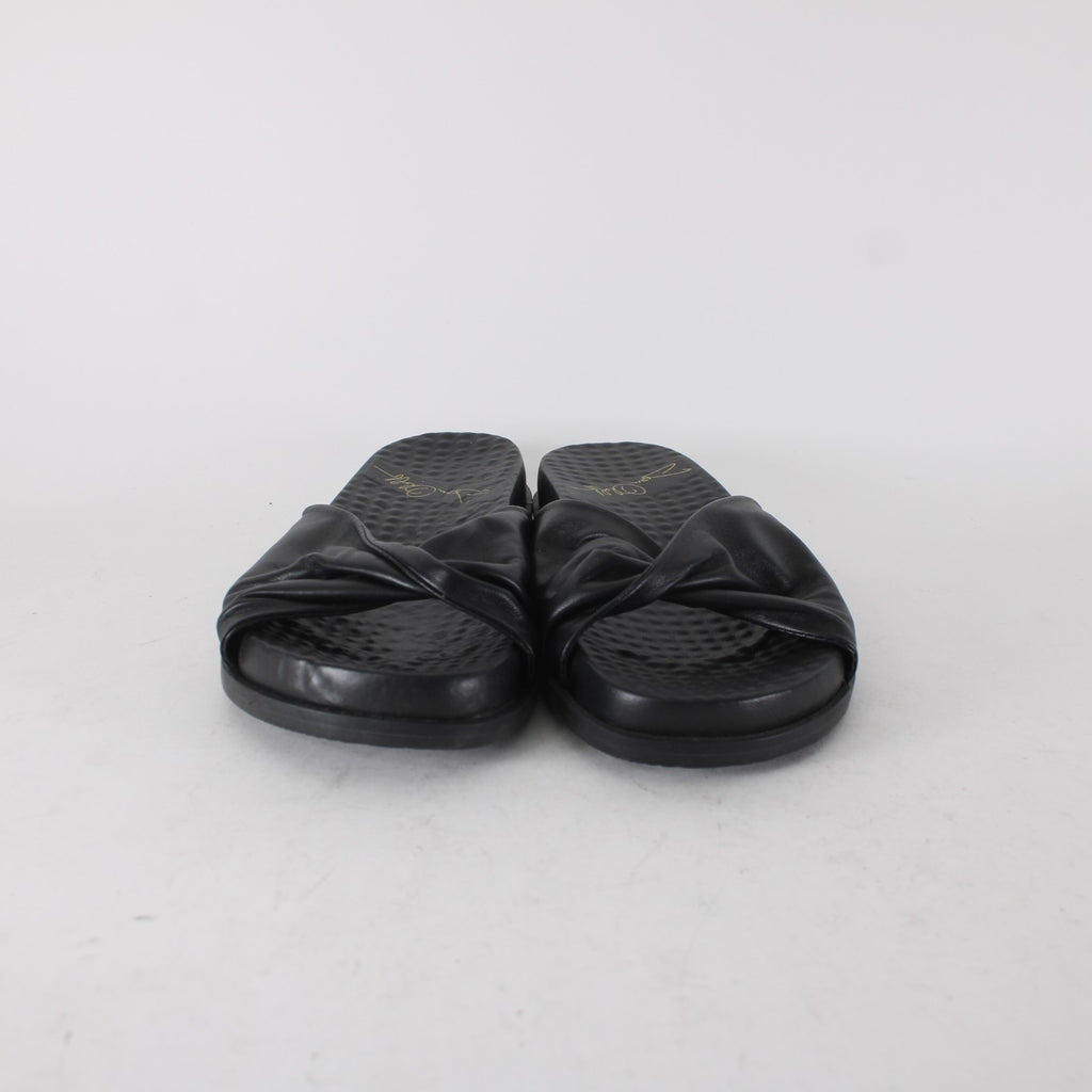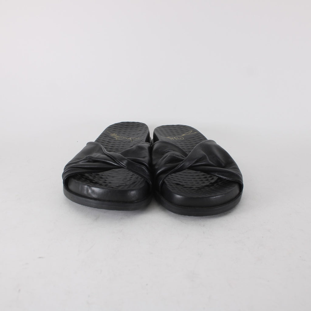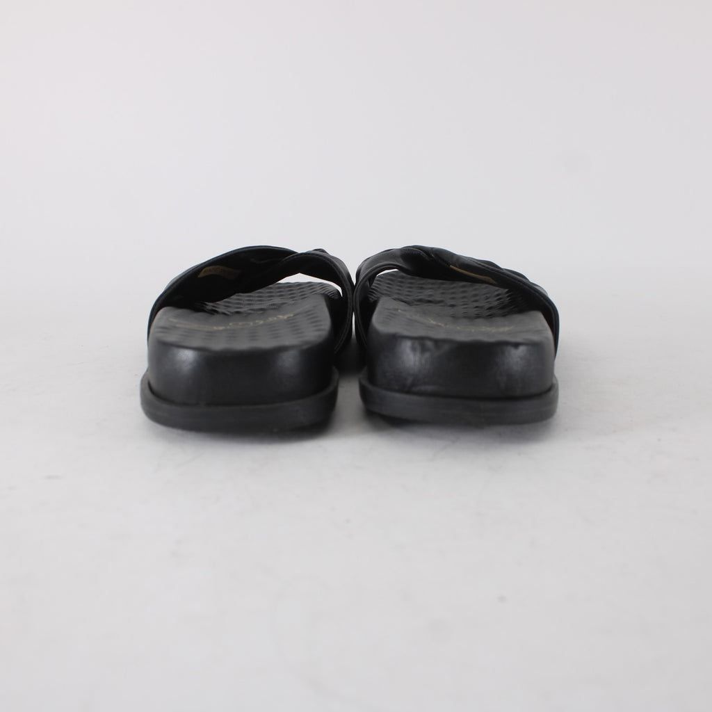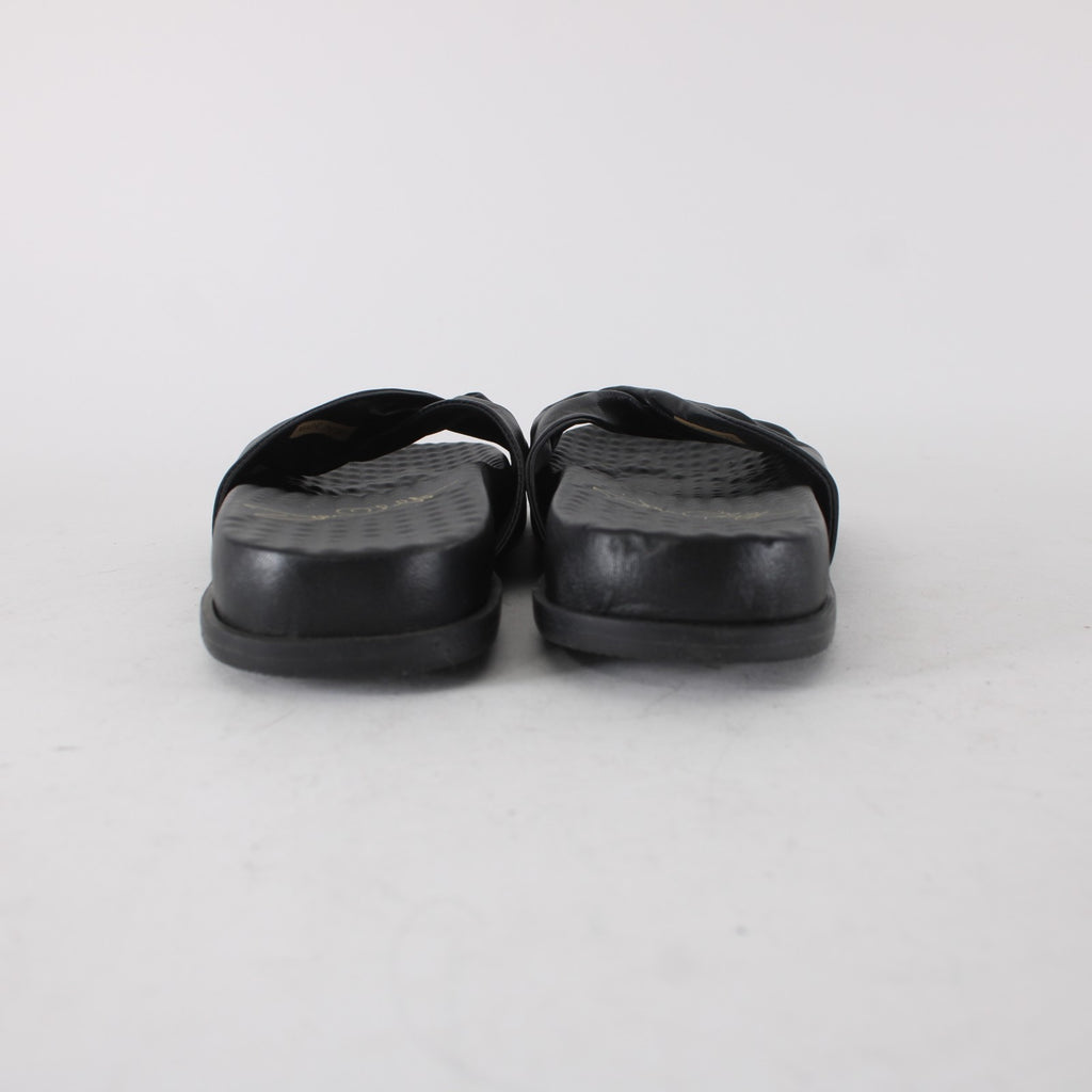Joan Oloff Sandal Sz 9 M Black Slip On Leather Rubber Sandals