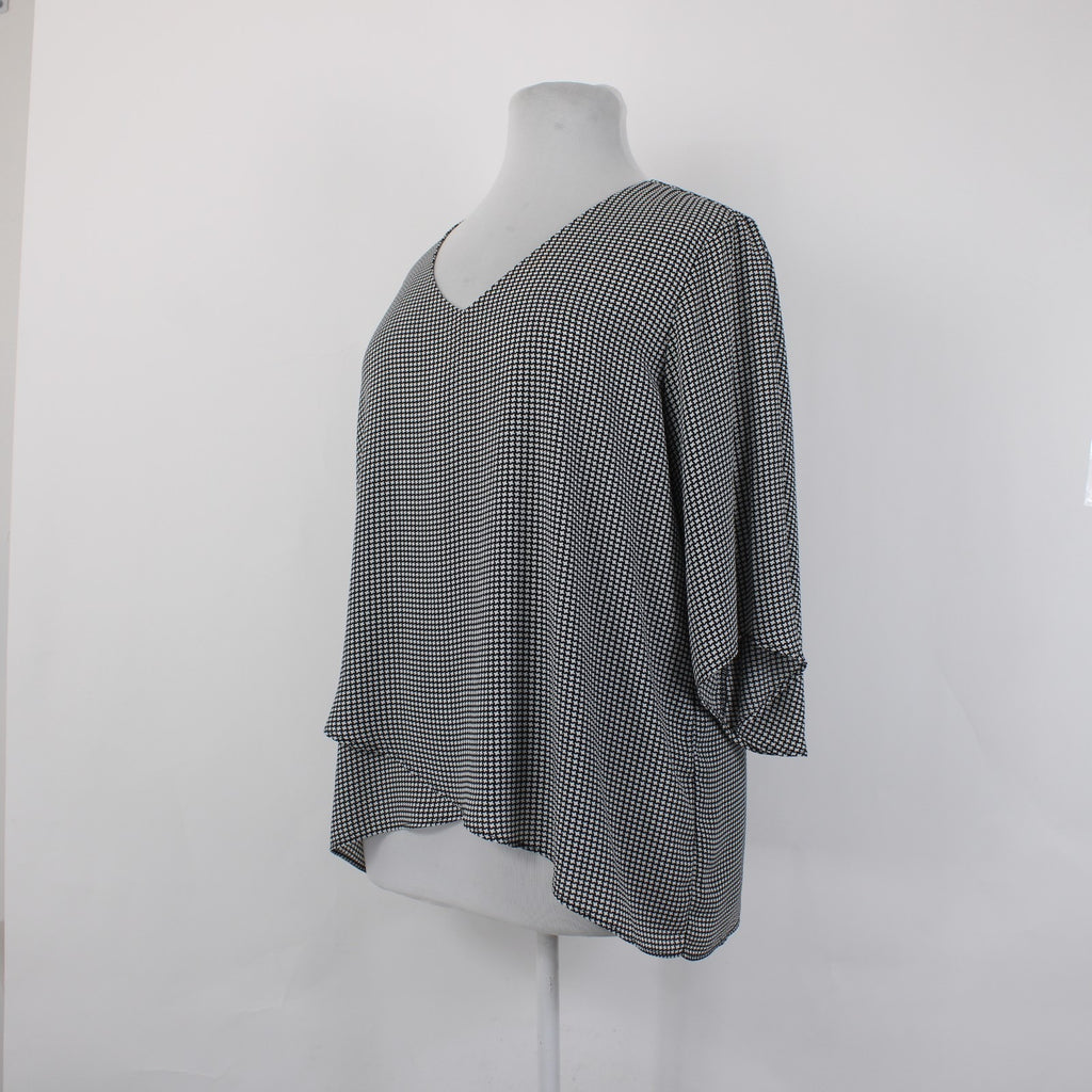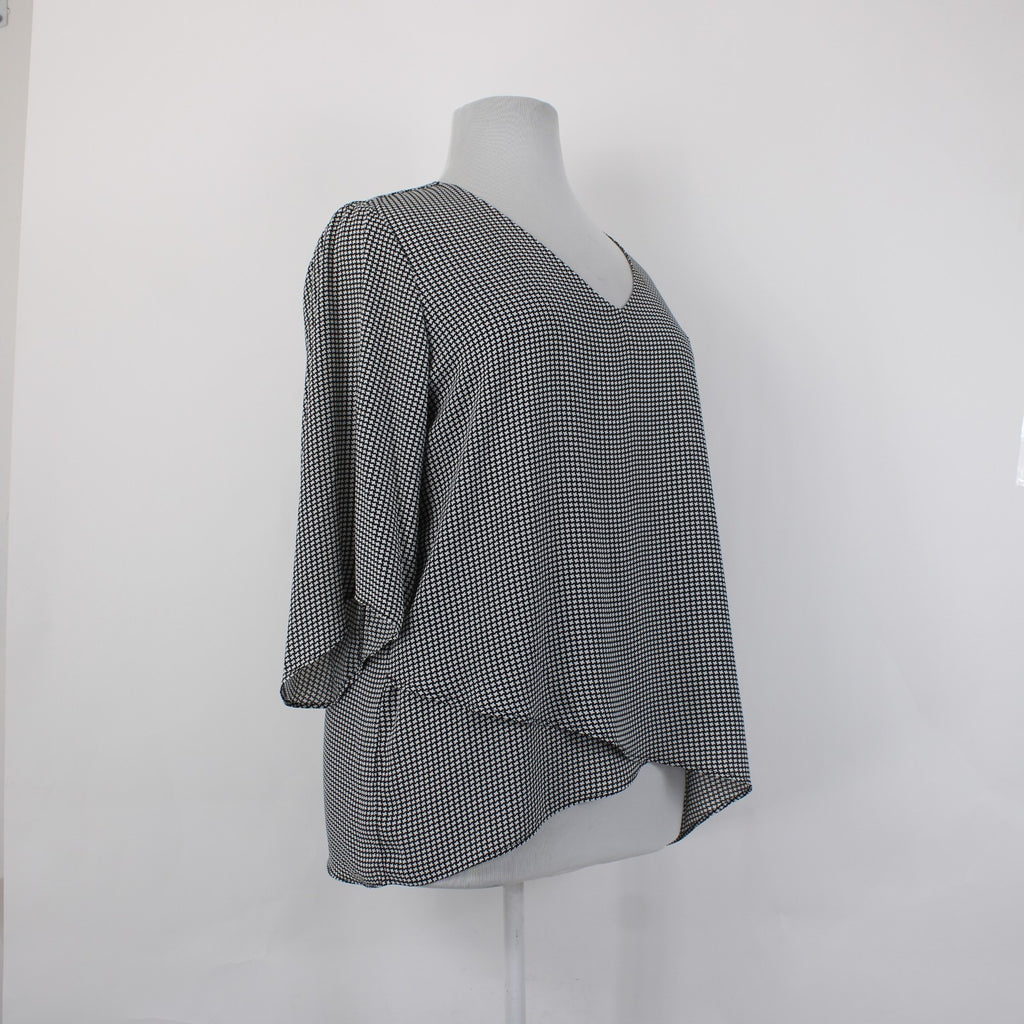 Joan Vass Top NEW $59 Sz 1x Black White Asymmetrical Layered Poly Top