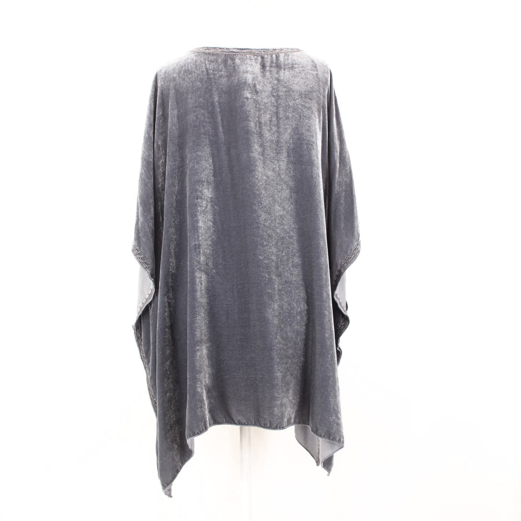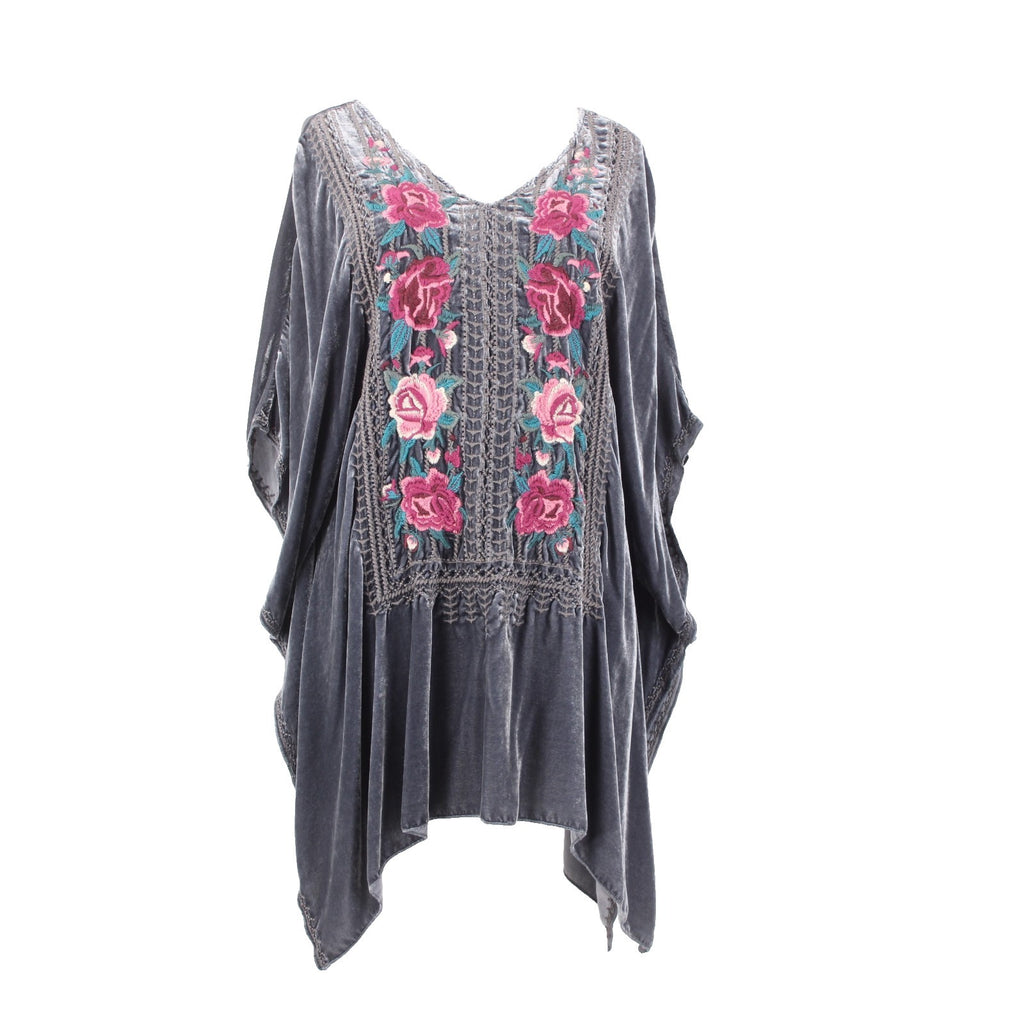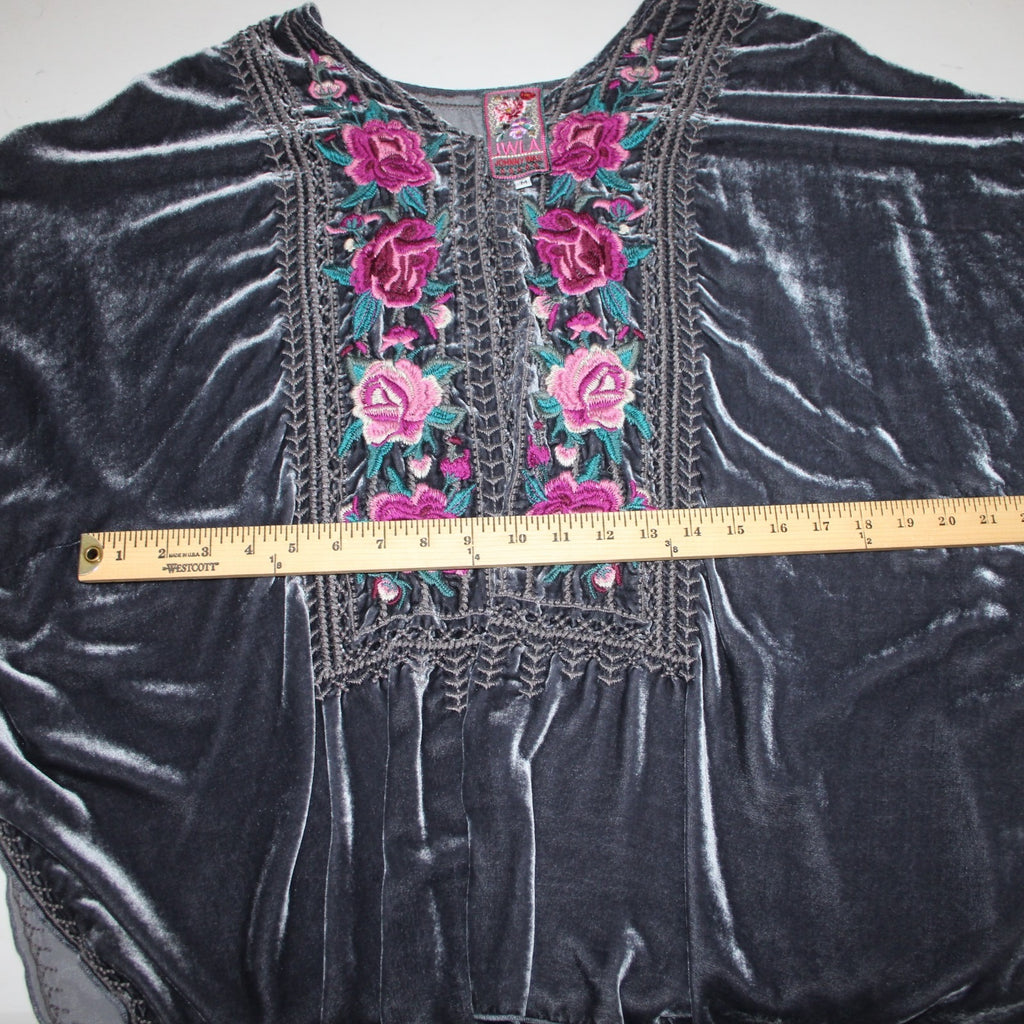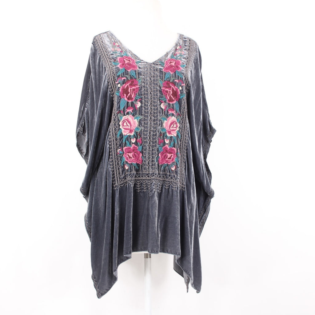 Johnny Was JWLA Top Sz M Gray Multi Color Velour Embroidered Rayon Silk Top