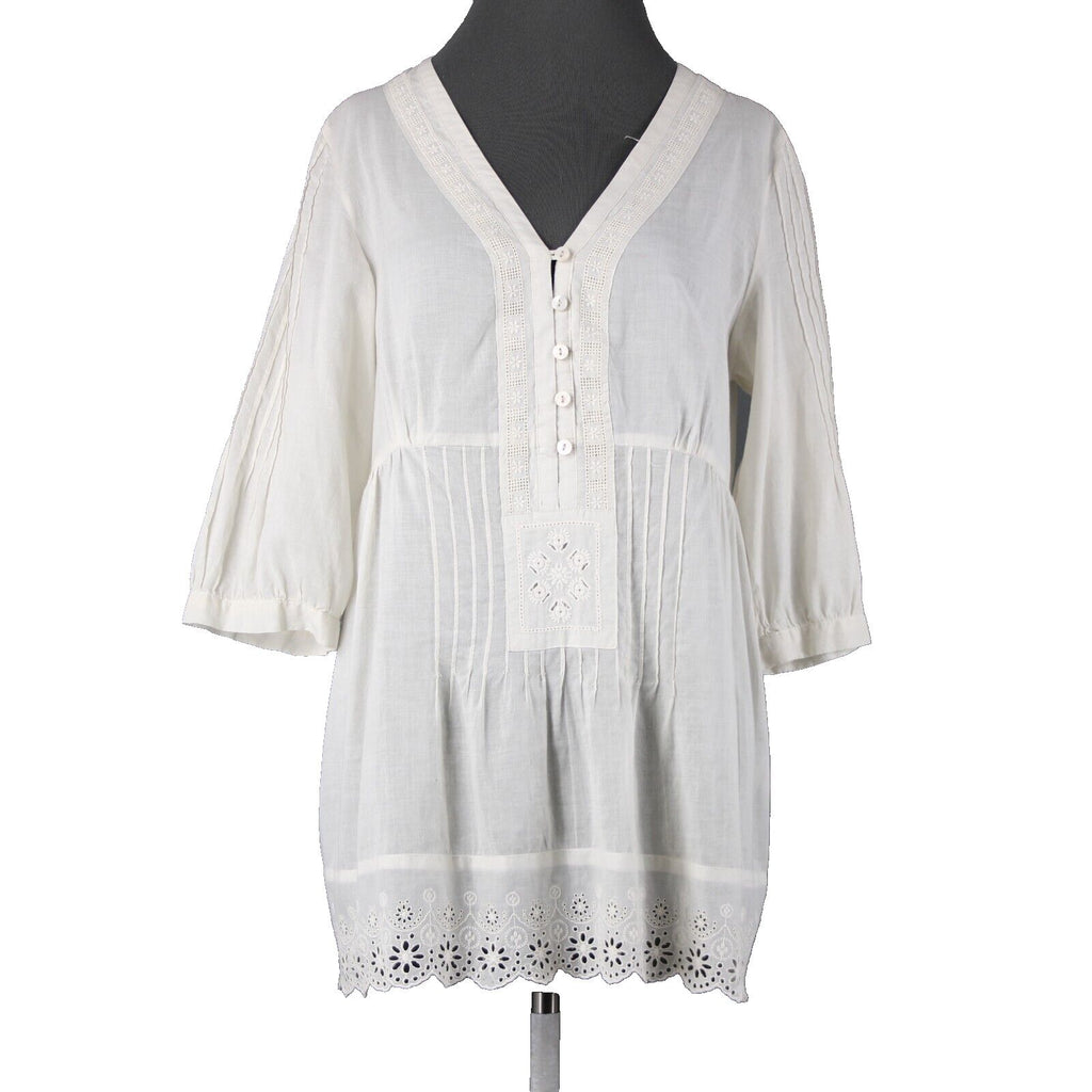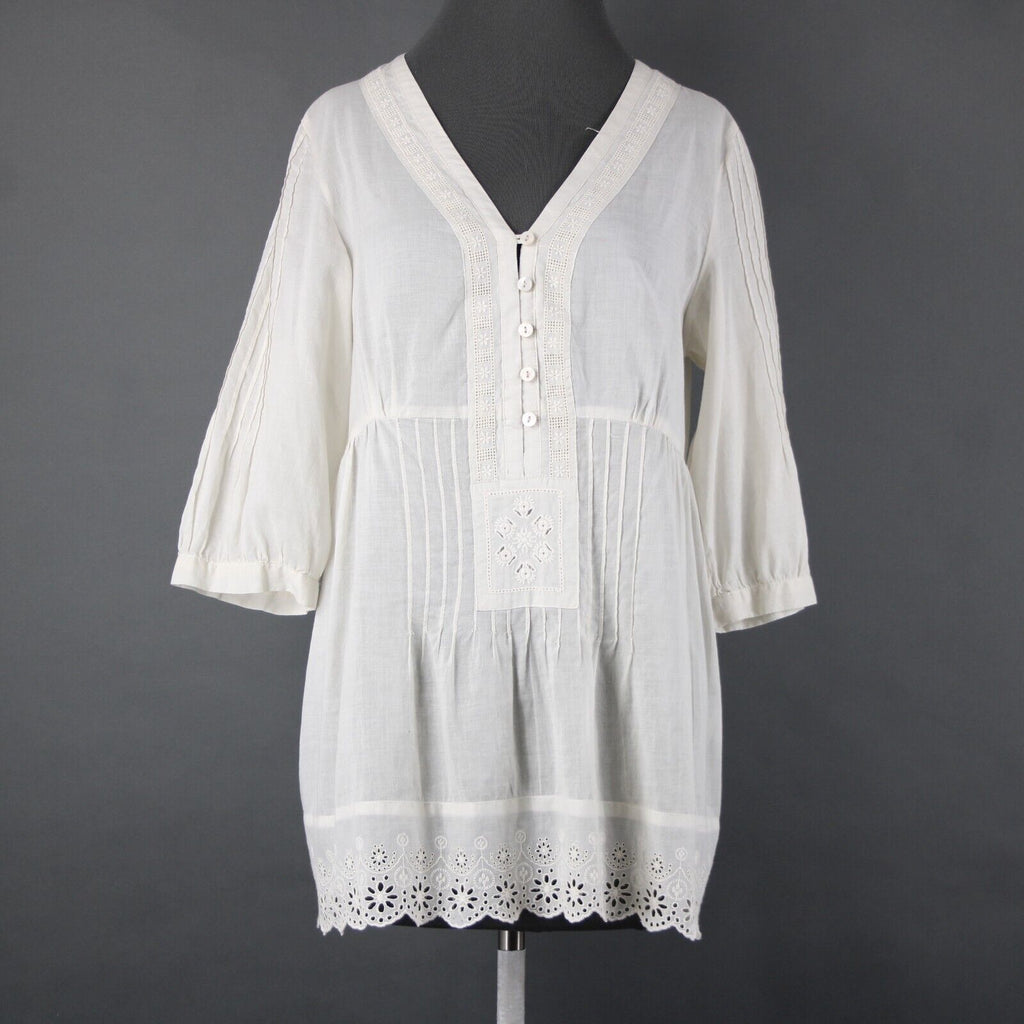 Johnny Was Sz M Cream Embroidered V Neck Flowy Cotton Polyester Top