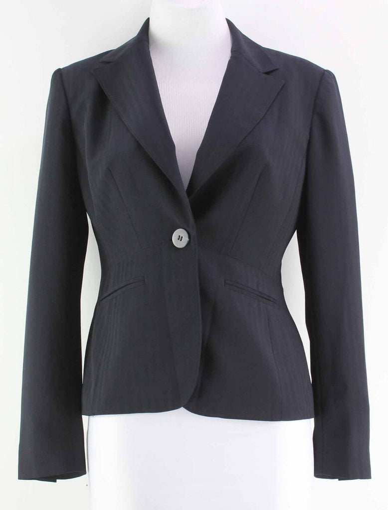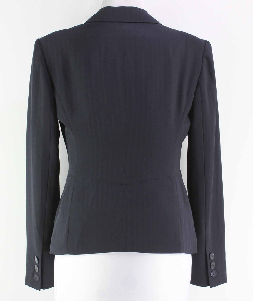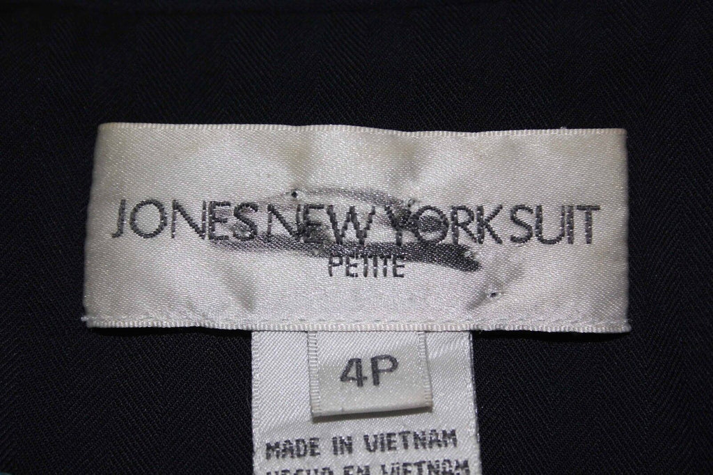 Jones New York Suit Sz 4P Black Poly Blend Herringbone Stripe Lined Blazer