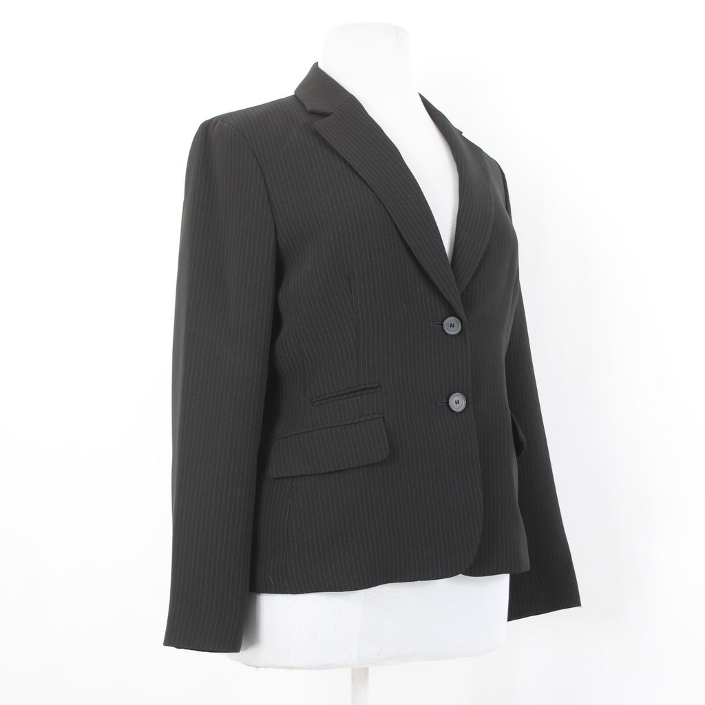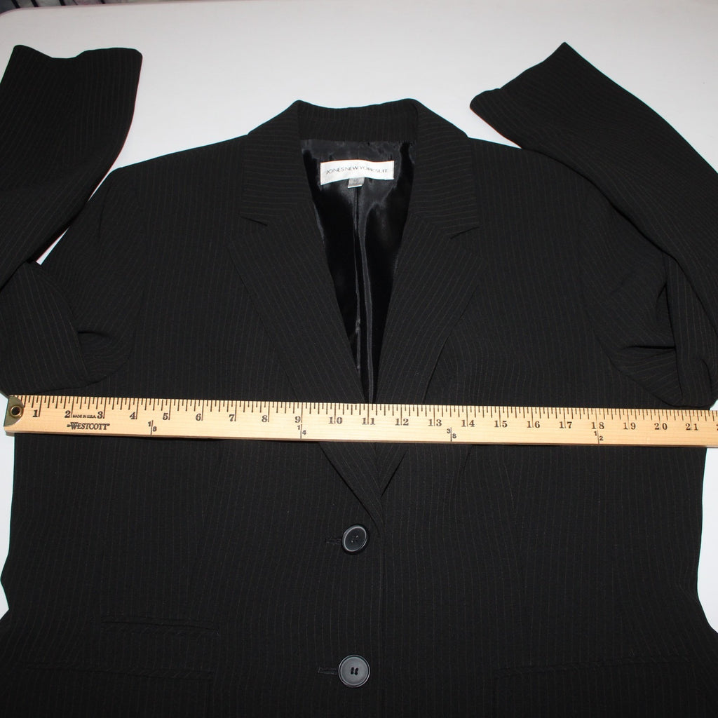 Jones NY Blazer Sz 16 Black Tan Collared Two Button Lined Polyester Suit Jacket